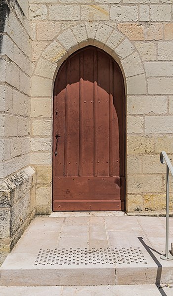 L'église présente une nef unique sans bas-côtés, composée de quatre travées ; la travée orientale, moins élevée, supporte le clocher. L'abside à sept pans est légèrement surélevée et voûtée en cul-de-four. Des contreforts plaqués séparent extérieurement chaque travée de la nef et deux autres encadrent le portail. Le clocher a un premier étage de plan carré, surmonté d'une pyramide reliée à une flèche octogonale. Une chapelle est accolée au mur sud, au niveau de la dernière travée. Les travées de la nef sont voûtées en sextuplé et les clefs sont ornées de médaillons ; les arcs de voûte sont peints à leur départ et les culs-de-lampe portés par les colonnes sont sculptés de têtes. Chaque travée de la nef est éclairée, sur chaque mur, par deux fenêtres en lancette, et l'abside est percée d'une lancette sur chacun de ses pans.