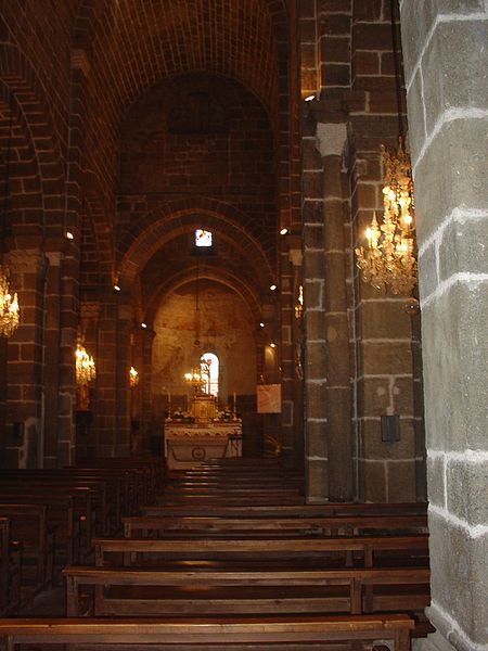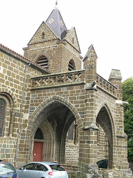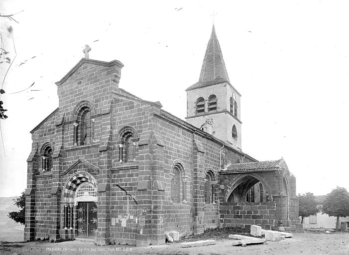 L'église Saint-Martin de Polignac, en Haute-Loire, est une église catholique dédiée à saint Martin de Tours, située sur la place de l'église au flanc nord de la butte de l'ancien château, à proximité de la mairie et face au cimetière en contrebas. Orientée ouest-est, elle est bâtie sur un plan carré et s'ouvre par un portail à l'ouest et un autre sur la façade sud, ce dernier prolongé par un porche gothique. La nef comporte cinq travées sans transept, flanquée de collatéraux étroits ; chaque travée s'éclaire par une large fenêtre et les doubleaux montent d'un seul jet du sol jusqu'à la voûte en plein cintre. La dernière travée est couverte par une coupole octogonale sur trompes en cul-de-four. Le chœur se termine par une abside centrale semi-circulaire à l'intérieur et pentagonale à l'extérieur, flanquée de deux absidioles alignées sur les collatéraux. Le chevet et le cul-de-four sont ornés de peintures murales représentant notamment Saint-Michel, le paradis, l'enfer et, au centre du décor du chœur, le Jugement dernier entouré de scènes infernales et célestes. Dans la partie sud de l'édifice se trouvent des fresques datées de la fin du XVe siècle illustrant la vie de la Vierge : Annonciation, Visitation, scènes de l'Enfance et Nativité avec bergers et rois mages. Une statue polychrome de sainte Anne, attribuée au XIIIe siècle, relève de l'art naïf médiéval. Sur la façade sud, en face de la troisième travée, s'ouvre un portail flamboyant en grès prolongé par un porche gothique long de 6,5 m, large de 6,2 m et haut de 7 m ; le porche est voûté en croisées d'ogives et sa clé porte une sculpture représentant l'apothéose de saint Martin. La balustrade sculptée qui couronne le porche, ainsi que ses forts piliers surmontés de clochetons, appartiennent au style gothique flamboyant ; le tympan est encadré de fleurons et de pinacles. Un vitrail triptyque offert par la famille de Polignac orne la partie centrale et représente trois de ses membres : le cardinal Melchior de Polignac, le prince Jules de Polignac et le jeune vicomte Héracle. Côté nord, une chapelle latérale conserve des meurtrières et des mâchicoulis du XIVe siècle, rappelant que l'église faisait partie de la première ligne de défense du château. L'édifice s'inscrit dans la tradition romane voisine de la cathédrale du Puy et a été classé au titre des monuments historiques en 1902. L'église est mentionnée dès 1062 ; en 1128 et 1142 elle devient, avec la chapelle seigneuriale de Saint-Andéol, l'un des prieurés de l'abbaye de Pébrac, donné par l'évêque du Puy aux chanoines réguliers qui suivaient la règle de saint Augustin, et jusqu'à la Révolution ces chanoines désignèrent les desservants. Aux XVe et XVIe siècles, le portail flamboyant et le porche sont installés et transformés ; les parties hautes de la nef sont partiellement reconstruites au XVIIe siècle et la nef est prolongée à l'ouest au XIXe siècle, entraînant la disparition de la façade romane. En 1931 l'église a été remise en état et le porche méridional en partie reconstruit ; autour de l'an 2000 le clocher a été reconstruit à l'identique. En 2021, le porche extérieur et les peintures murales nécessitent des travaux de réhabilitation : un linteau du portail s'est détaché, des fissures apparaissent aux bases des piles et l'étanchéité de la terrasse du toit doit être reprise, ce qui a conduit à condamner provisoirement cette entrée ; le financement devrait être assuré principalement par l'État, en partenariat avec la commune et des donateurs.
