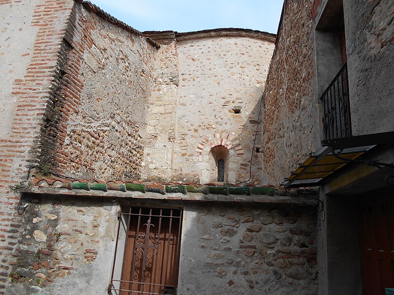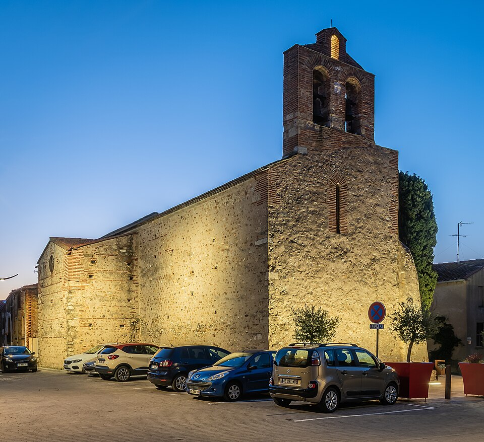 L'église Saint-Martin de Pollestres, de style roman, présente à l'origine une nef unique et un sanctuaire demi-circulaire; deux grandes chapelles opposées y ont été ajoutées ultérieurement. D'autres éléments ne subsistent que par leurs soubassements. La nef est prolongée à l'est par une travée de chœur voûtée en berceau, apparemment plus récente que la nef elle-même, et une tribune moderne ou reconstruite s'établit au-dessus de la travée de fond. Le portail d'entrée, placé au sud de la travée médiane, est un placage de marbre blanc sans décor : un arc extérieur en plein cintre encadre une porte rectangulaire surmontée d'un tympan plein. Le sanctuaire, voûté en cul-de-four, a sans doute connu une surélévation relativement récente; dans sa partie ancienne il est décoré intérieurement de cinq arcs en plein cintre reposant en ressaut sur des piliers. Les chapelles gothiques donnent à l'ensemble son aspect cruciforme. Au nord, un soubassement circulaire en galets et, au sud, un mur puissant en galets constituent probablement des vestiges romans ; il peut s'agir soit d'ouvrages défensifs reliant l'église à l'enceinte de la ville, soit des restes d'un clocher. Un petit clocher-mur à deux arcades se dresse au-dessus du mur de fond : c'est un clocheton en brique ancien dont les arcades campanaires jumelles sont surmontées d'une petite arcade et d'un fronton. L'édifice est situé à Pollestres, dans le département des Pyrénées-Orientales, et fait l'objet d'une inscription au titre des monuments historiques depuis le 4 juillet 1973. Parmi les sources publiées figurent notamment Henri Leroux-Calvet, Église Saint-Martin de Pollestres : Histoire et restauration, et Géraldine Mallet, Églises romanes oubliées du Roussillon, ainsi que la notice PA00104093 de la base Mérimée. Des ressources en ligne complémentaires sont disponibles via Mérimée, Clochers de France et l'Observatoire du patrimoine religieux.
