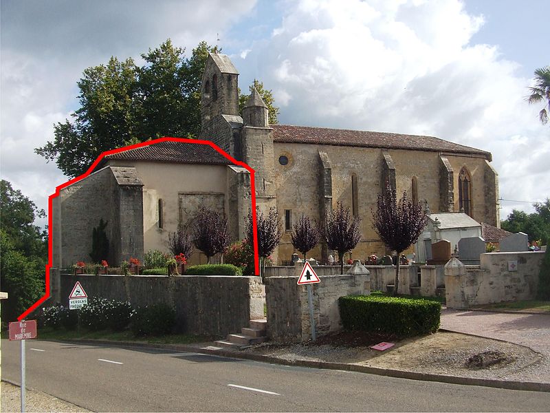 L'église Saint-Martin a été construite à la fin du XVe siècle. La nef, à trois travées, semble avoir été revoûtée à une époque tardive ; à l'origine, les voûtes comportaient des arcs d'ogives. Colonnes et colonnettes portent des chapiteaux sculptés de motifs végétaux. Le chœur polygonal, voûté d'ogives, ouvre sur la nef par un arc triomphal en tiers-point soutenu par des colonnes aux chapiteaux sculptés de motifs animaliers. Sur la face ouest, sous un porche, s'ouvre un portail à quatre archivoltes dont la corniche est portée par des colonnes engagées ; les chapiteaux des deux colonnes extérieures représentent des figures humaines figurant la Folie, les autres présentent des motifs végétaux. Le linteau et le tympan sont tardifs. De chaque côté du portail se trouve un tombeau sous un arc en tiers-point, probablement de la fin du XVe siècle. Un clocher-mur s'élève sur la face ouest, accolé au sud d'une tourelle carrée d'escalier surmontée d'un petit clocheton polygonal ; cette tourelle est percée de trois meurtrières. Sur la face sud, la porte est encadrée de pinacles qui supportent un larmier protégeant un grand panneau décoré d'arcs trilobés, au milieu desquels s'élève la pointe d'un arc en accolade. L'examen du cadastre ancien du début du XIXe siècle montre à l'ouest une partie saillante correspondant au portail actuel et deux éléments isolés pouvant être des contreforts ; cette partie ouest était alors probablement effondrée. En 1904, la commission des bâtiments civils signale que le clocher et le porche sont totalement délabrés. La restauration de cette partie a été menée en 1908 par l'entrepreneur Albert Castagnos sous la direction de l'architecte Jean-Baptiste Talon. Les dalles du chœur ont été remplacées par de la mosaïque en 1929. D'importants travaux, portant notamment sur la charpente, la couverture et la suppression des auvents en charpente devant les cloches, ont eu lieu à la fin des années 1970. En 2005, le massif ouest et les contreforts nord ont été restaurés.