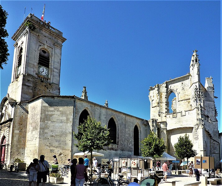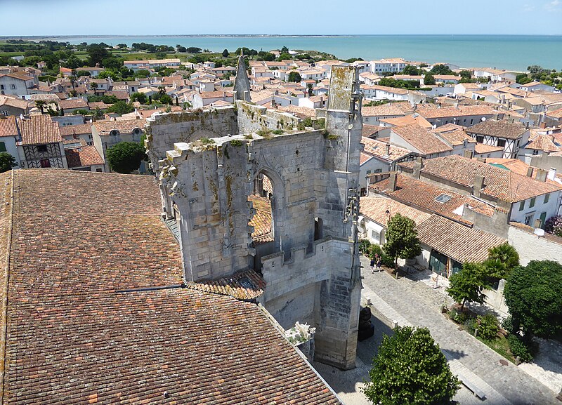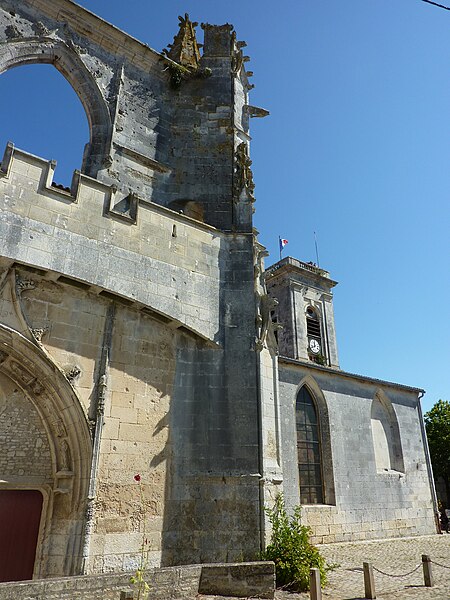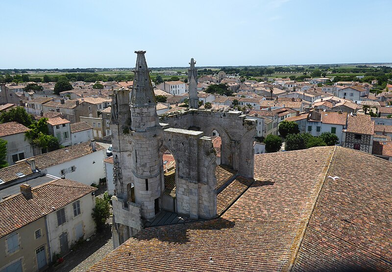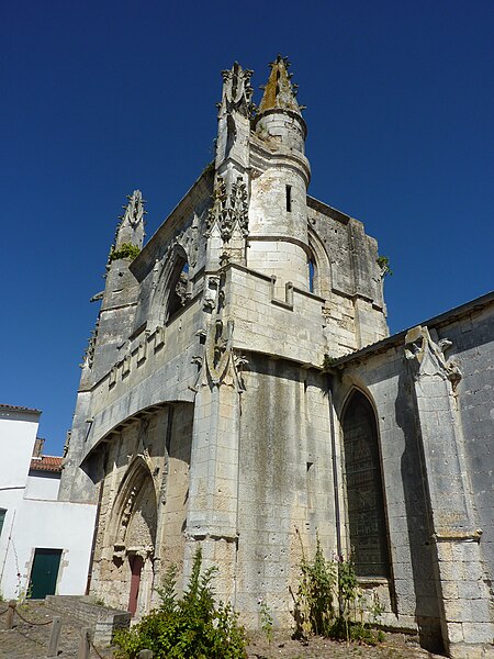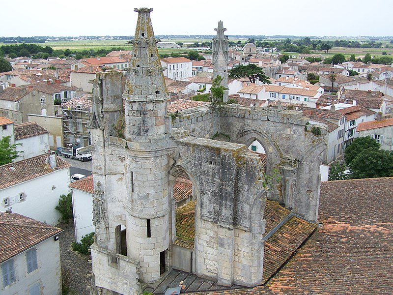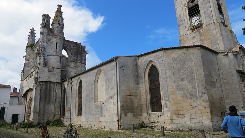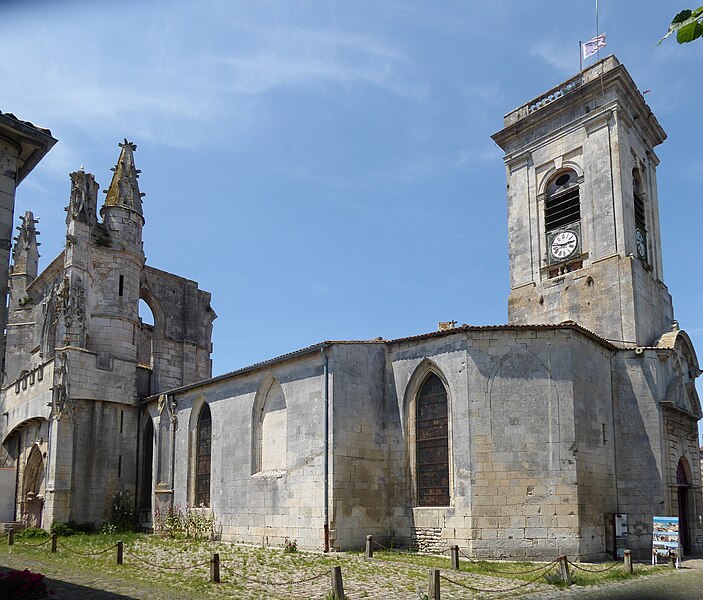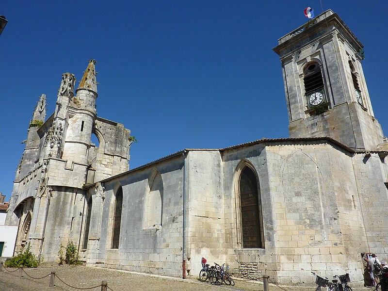 L'église Saint-Martin dite Le Grand Fort, à Saint-Martin-de-Ré (île de Ré, Charente-Maritime), est une église fortifiée de style gothique flamboyant dédiée à saint Martin de Tours. L'édifice a été largement reconstruit aux XVe siècle et conserve l'organisation générale de son plan ainsi que des parties classées au titre des monuments historiques en 1903. Les origines de la ville et de l'église restent mal connues ; il est probable qu'elles aient été détruites lors des invasions normandes du IXe siècle. Au XIe siècle, la paroisse fut donnée au chapitre du Puy-en-Velay par le comte du Poitou ; les chanoines gardèrent la paroisse jusqu'au XVIe siècle, mais aucun vestige de l'édifice roman n'est conservé. La construction de l'édifice gothique débute au XIVe siècle et se poursuit au XVe siècle ; il était alors spacieux, lumineux et doté d'aménagements défensifs tels que mâchicoulis et chemin de ronde, d'où son surnom de « Grand Fort ». L'église fut plusieurs fois ravagée par les conflits : saccagée lors des guerres de Religion en 1586, elle fut partiellement ruinée au début du XVIIe siècle puis restaurée et consacrée le 9 juin 1641. Des destructions ultérieures la frappèrent encore, notamment lors du bombardement de 1696, après lequel l'édifice fut rallongé vers l'ouest et enrichi de deux chapelles construites en 1700. Le clocher s'effondra en 1774, entraînant l'effondrement de voûtes ; l'orientation du chœur fut inversée et, autour de 1784, un clocher-porche fut élevé par Pierre-Étienne Bouffard à l'emplacement du chevet, l'église étant alors charpentée. Au cours du XIXe siècle, des travaux réguliers dégagèrent les abords et embellirent l'intérieur par des vitraux et des peintures. Le culte fut momentanément interrompu pendant la Révolution ; un autel fut ensuite dédié aux prêtres réfractaires déportés et détenus dans la citadelle. Un incendie en 1964 détruisit notamment l'orgue ; la restauration générale du chœur et du transept s'est déroulée de 1965 à 1970 et les couvertures durent être reconstruites. L'édifice fait l’objet d’un classement au titre des monuments historiques pour ses parties anciennes depuis le 29 décembre 1903 ; le reste de l’église a été inscrit par arrêté du 29 décembre 1997. Aujourd'hui, l'aspect complexe du bâtiment est dominé par les ruines gothiques du transept : les murs des croisillons datent du XVe siècle et conservent chemin de ronde et portails à statuaire mutilée. Subsistent également les chapelles médiévales de l'actuel chœur et du bas-côté sud, ainsi qu'une fenêtre flamboyante obstruée sur le mur gouttereau nord. Les parties hautes de la fortification, y compris les tourelles d'escalier, sont inaccessibles au public. Le clocher néo-classique, érigé lors du réaménagement du XVIIIe siècle, forme aujourd'hui une tour carrée visitable et sert de terrasse d'observation offrant une vue panoramique sur la ville et le port ; il renferme trois cloches importantes nommées Marie Thérèse, Charles Catherine et Marie Pierre Michel Samuel Augustine. On note dans l'église une statue du Saint-Jean-Baptiste, traditionnellement présentée comme un don du pape Léon X à François Ier mais considérée en réalité comme une œuvre du XVIIe siècle attribuée au sculpteur flamand François Dieussart. Parmi les personnalités liées à l'église, Celse-Bénigne de Rabutin (1596-1627) y repose.