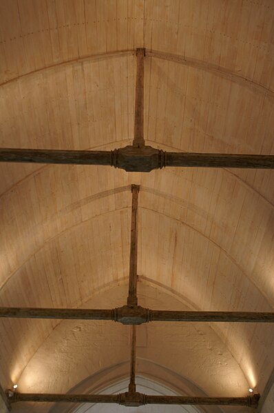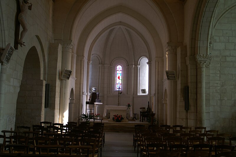 Datant de la fin du XIIe siècle et remaniée aux XVe et XVIe siècles, l'église a conservé de sa première époque le chœur. Deux petites chapelles postérieures, sans doute d'anciennes chapelles funéraires, flanquent ce chœur. La nef, à l'origine unique, était complétée à droite par une chapelle latérale de deux travées couverte de voûtes à arcs diagonaux et liernes, et précédée d'un porche à auvent. Au XVe siècle, deux travées supplémentaires ont été ouvertes. Peut-être couverte primitivement d'un berceau de maçonnerie, la nef reçut au XVIe siècle une voûte en bois; lors de restaurations récentes, celle-ci a été remplacée par un berceau en briques enduites muni de doubleaux. Le porche rustique a été supprimé. Sur la gauche de la nef se dresse un clocher coiffé d'une toiture octogonale.