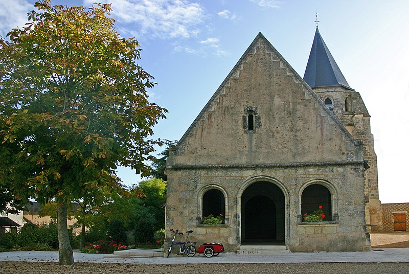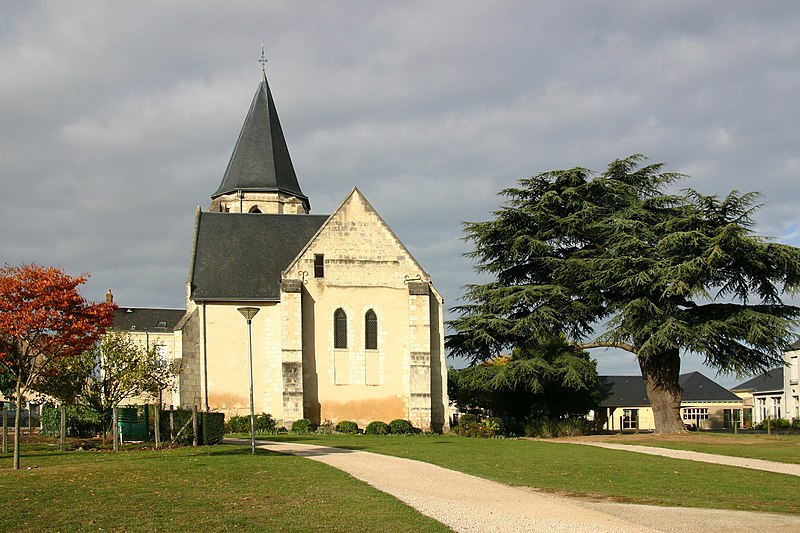Au XIIe siècle, l'église dépendait de l'abbaye de Saint-Georges. Elle se compose d'une nef précédée d'un porche du XVIe siècle et d'un chœur à chevet plat de style angevin, flanqué au sud d'un clocher et d'une chapelle datant du XIVe ou du XVe siècle. Le portail occidental et le chœur remontent à la fin du XIIe ou au début du XIIIe siècle. En 1977, des peintures murales représentant des scènes historiées ont été découvertes ; elles semblent appartenir au XIVe siècle. L'édifice montre ainsi des apports architecturaux et décoratifs provenant de plusieurs périodes.