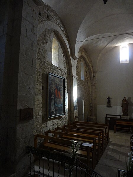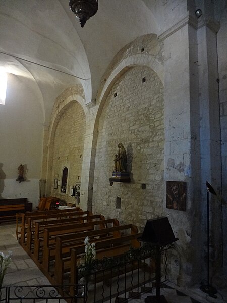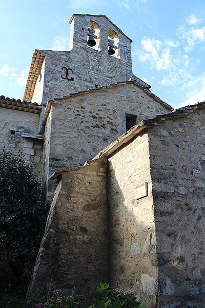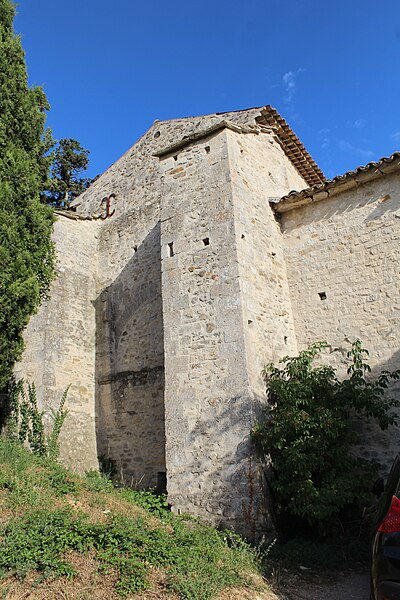 L'église Saint-Martin, placée sous l'invocation de saint Martin, est un édifice roman situé à Saint-Martin-les-Eaux, dans les Alpes-de-Haute-Provence (Provence-Alpes-Côte d'Azur). Elle dépendait autrefois du prieuré de Carluc et date du début du XIIe siècle. Menacée de ruine en 1965, elle a été restaurée à partir de 1967 par son acquéreur Jean‑Marie Léouffre, lauréat du deuxième prix du concours "Chefs-d'œuvre en péril", puis rouverte au culte. Certains reliefs ornant le second pilastre nord sont classés au titre d'objet et l'ensemble de l'édifice a été inscrit au titre des Monuments historiques par arrêté du 11 février 1972. De petites dimensions, l'église comprend une nef de deux travées voûtées d'arêtes, état secondaire ayant remplacé une voûte en berceau, sans collatéraux. L'abside, semi-circulaire à l'intérieur, est couverte en cul-de-four et décorée d'une arcature de cinq baies cintrées, aveugles sauf celle du centre, encadrées de colonnettes aux chapiteaux sculptés. Elle est précédée d'un arc triomphal orné de peintures murales et d'une travée de chœur relativement importante par rapport à la taille de l'édifice. Dans la nef, les retombées des voûtes reposent sur des culots sculptés de palmettes ; sous l'un d'eux se trouve un bas-relief remarquable représentant un lion, et un autre bas-relief figure un taureau. À l'extérieur, l'abside présente une forme pentagonale.