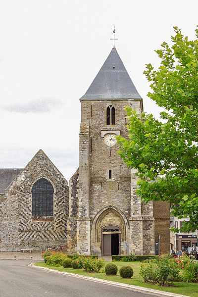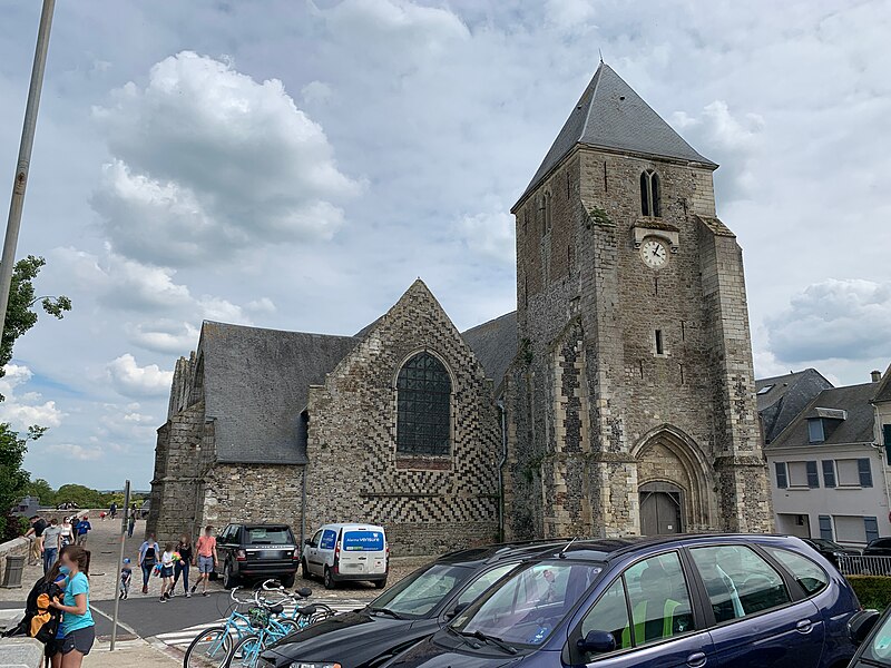 L'édifice est bâti en pierre avec un damier de galets, caractéristique des constructions de la côte picarde. Il se compose de deux nefs jumelles séparées par de grandes arcades ; la chapelle des fonts baptismaux est l'un des vestiges de l'ancienne église. Le clocher, massif et épaulé par des contreforts, est surmonté d'une toiture pyramidale ajoutée en 1786. À l'extérieur comme à l'intérieur, l'église présente des autels, des vitraux dédiés à saint Pierre et à saint André, une statue en bois de la Vierge à l'Enfant et la chapelle Saint-Pierre, dite des marins.