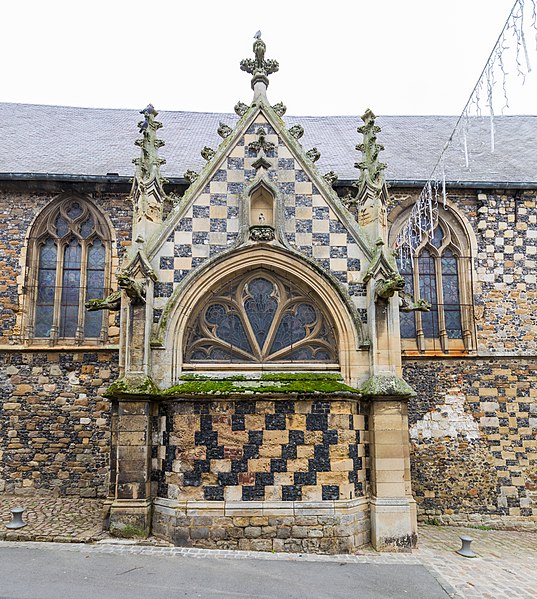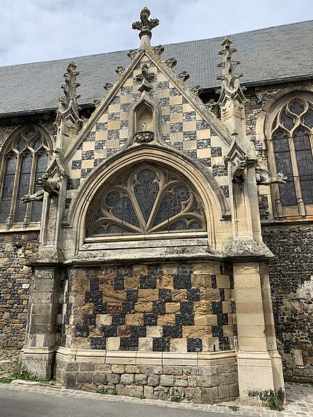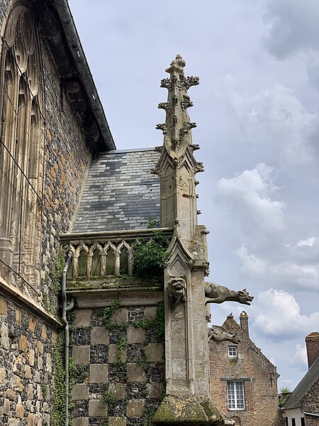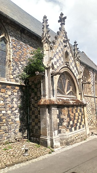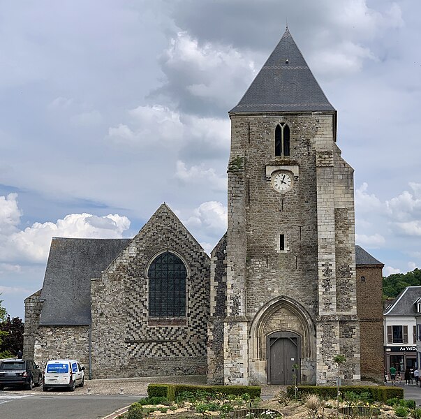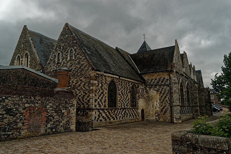 Un orgue est présent à la tribune depuis la première moitié du XVIe siècle ; il fut « ruiné » lors du sac de la ville par les troupes du capitaine protestant François de Cocqueville en 1568, seul le buffet subsistant. En 1601, l'instrument fut réparé par Isaac Huguet, facteur d'orgues de Noyon, avec l'aide du menuisier Louis Fruart d'Abbeville, qui modifia le buffet. En 1895, Narcisse Duputel, de Rouen, reconstruisit l'orgue pour y loger un récit expressif entre le mur du fond et le buffet du grand-orgue. L'instrument a été entièrement restauré en 2017 par les facteurs d'orgue Guillaume Besnier, Olivier Buis et Thomas Blandeau de Louveciennes ; il compte désormais 27 jeux et environ 1 200 tuyaux en étain, plomb et bois, dont certains datent du XVIIe siècle, le plus petit mesurant un centimètre et le plus grand près de trois mètres.