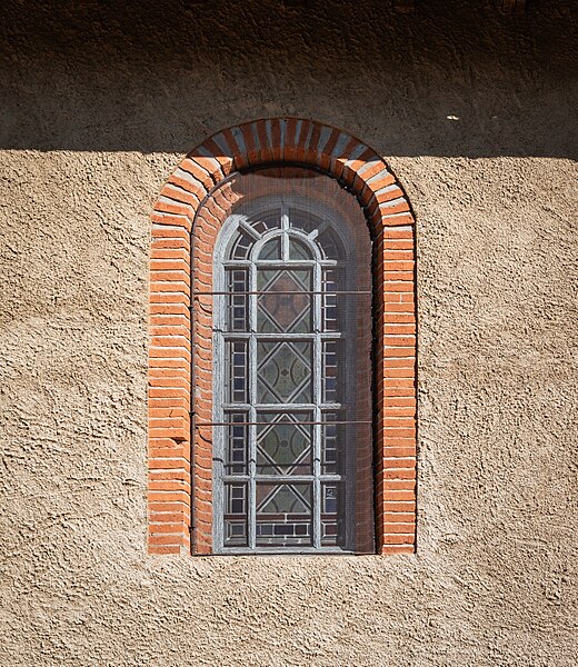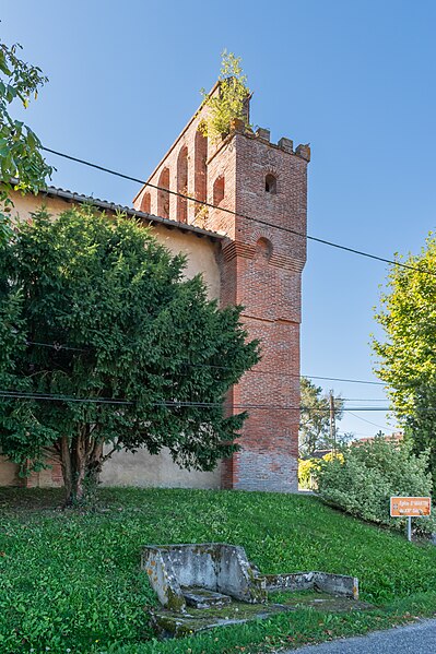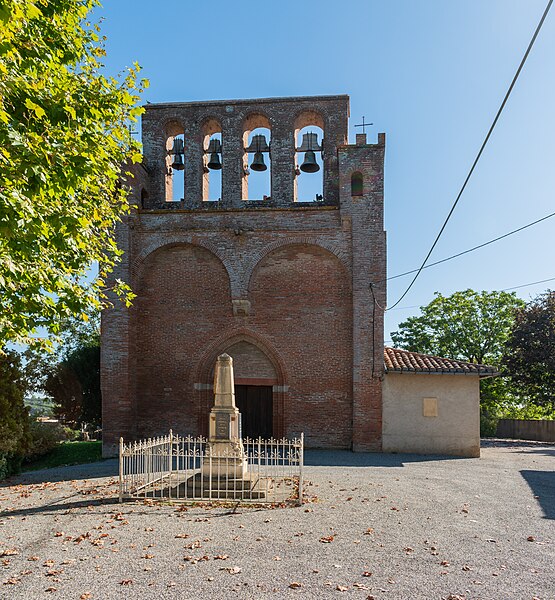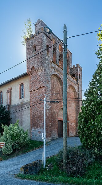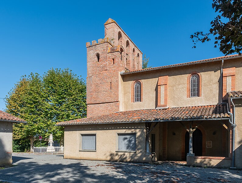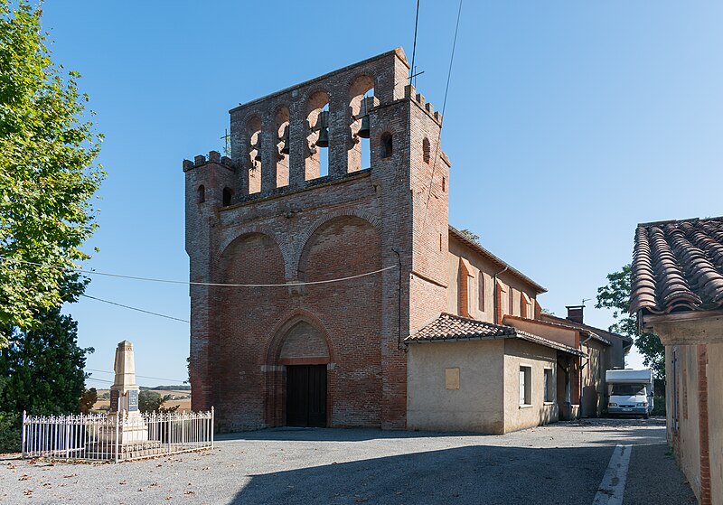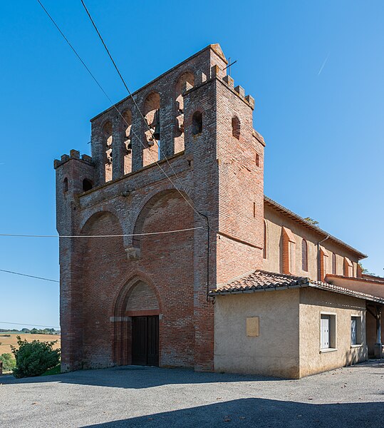 Église sans doute du XIIIe siècle, elle a fait l'objet de nombreuses réparations à la fin du XIXe siècle : travaux entre 1878 et 1882, le porche et la façade latérale en 1882, la tribune intérieure en 1887 et le clocher en 1896. Le clocher, de caractère fortifié, présente une série de quatre ouvertures de largeurs différentes alignées sur une même ligne et est flanqué de tourelles carrées crénelées. Deux arcs en plein cintre juxtaposés soutiennent la galerie qui relie ces tourelles. La porte ogivale a dû être remaniée à plusieurs reprises.