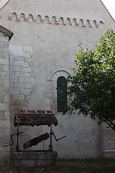 L'église Saint-Martin est, dans son ensemble, un édifice du XIIe siècle à nef unique et chevet plat, remanié à plusieurs époques. La façade occidentale, entièrement ancienne, constitue un très bel exemple d'architecture rurale de la fin du XIIe siècle. Le mur pignon est percé au centre d'une fenêtre en plein cintre ornée d'une archivolte et d'un boudin torique reposant sur deux colonnettes aux chapiteaux à feuillage. Sous cette ouverture s'ouvre un porche en saillie, couvert de dalles en glacis. La corniche se compose d'une série d'arcatures retombant sur des modillons à têtes grotesques ; elle est formée de blocs de pierre d'un seul morceau, évidés, dont les joints verticaux, alignés sur les arceaux, suivent le type poitevin. Le portail est flanqué de six colonnes monolithes à chapiteaux à feuillage ; l'archivolte extérieure est ornée de cabochons. Les claveaux du portail présentent, pour le premier et le troisième rang, des tores et des pointes de diamant, tandis que le second rang combine un tore et des cabochons. Les tailloirs sont décorés d'une corde tressée.