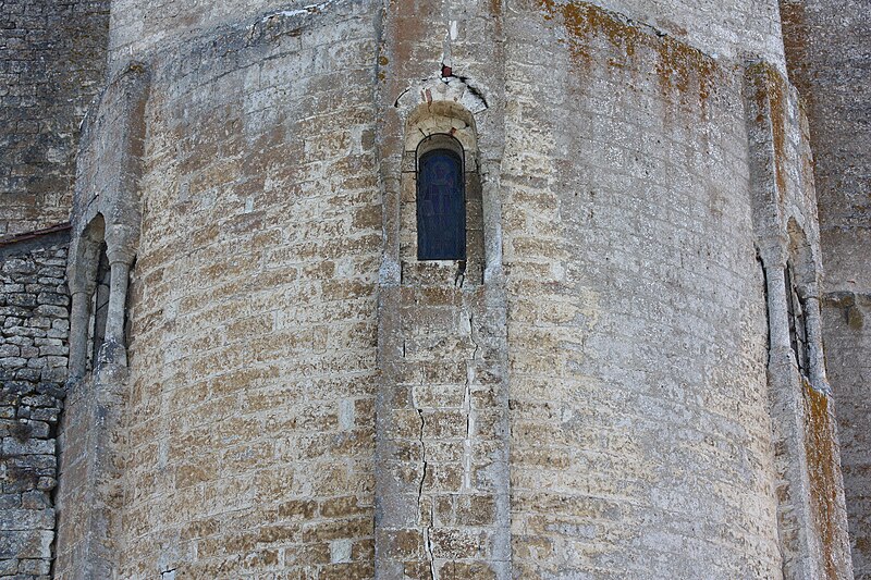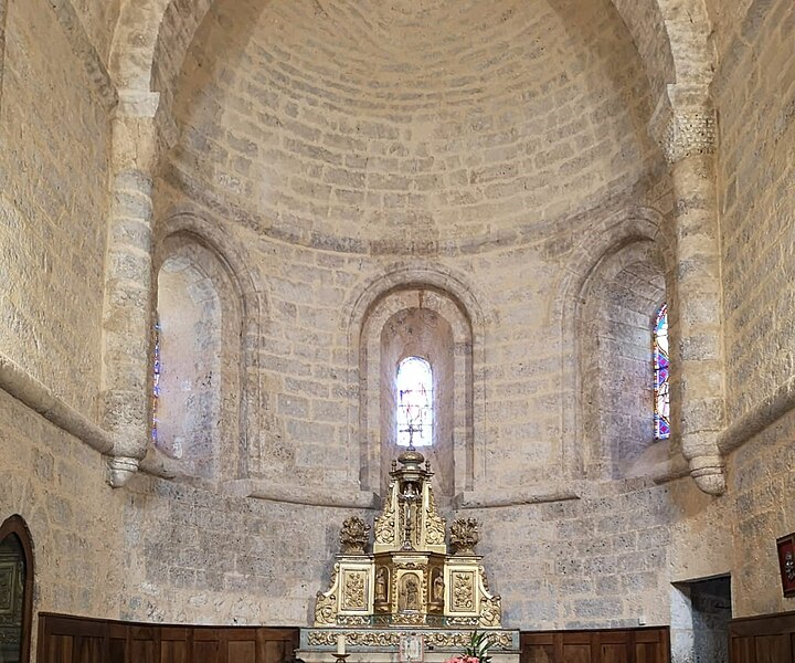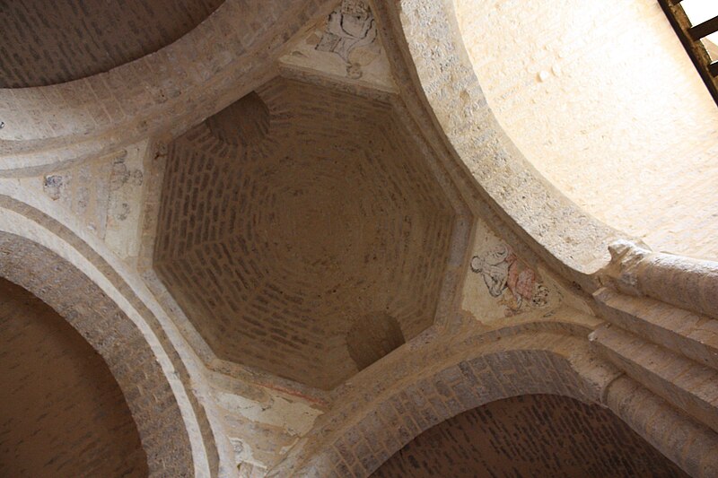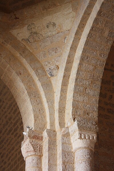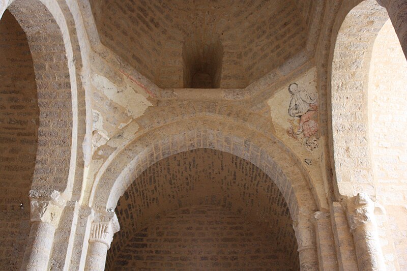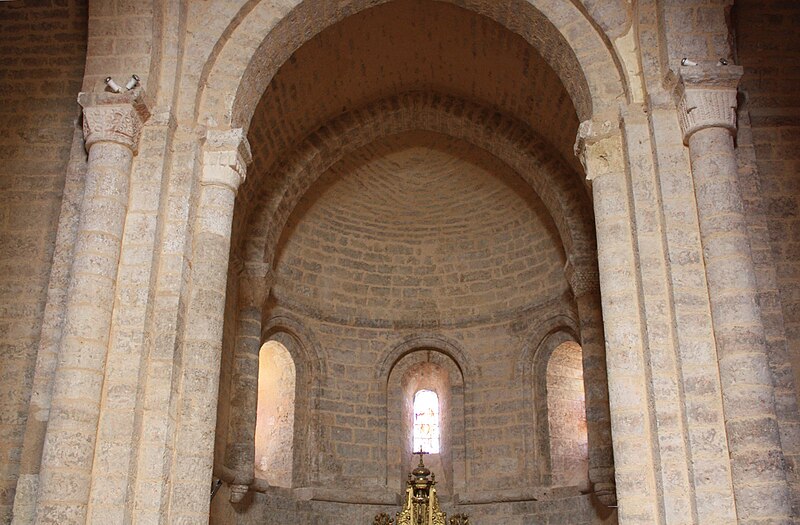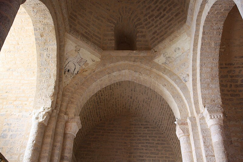 Bâti sur un plan cruciforme, le bâtiment présente une nef très courte, de dimensions identiques à celles des bras du transept, et une abside semi-circulaire dont les contreforts supportent une surélévation de plan polygonal. L'abside est voûtée en cul-de-four, le reste de l'église est couvert d'un berceau brisé, et la croisée du transept est surmontée d'une coupole octogonale reposant sur des pendentifs. Les chapiteaux sont sculptés de motifs variés, comprenant des têtes, une figure humaine, des triangles empilés et des feuillages schématiques.