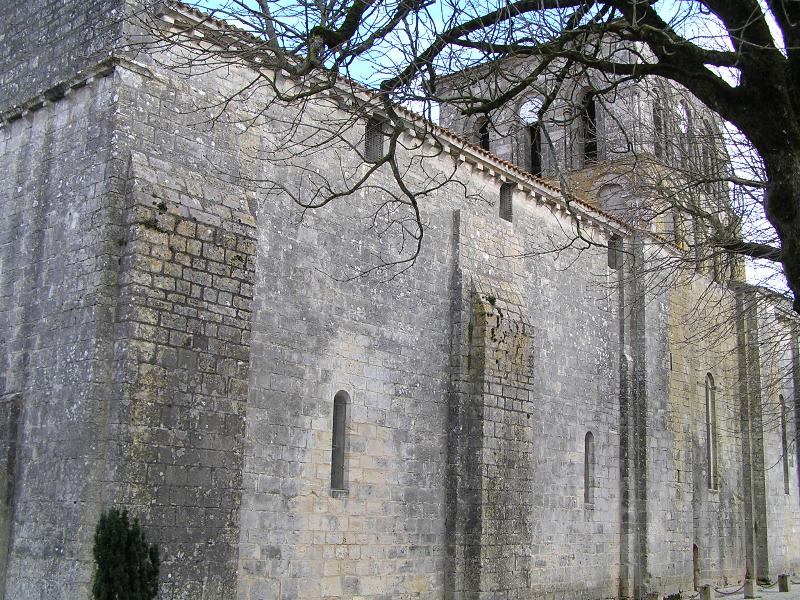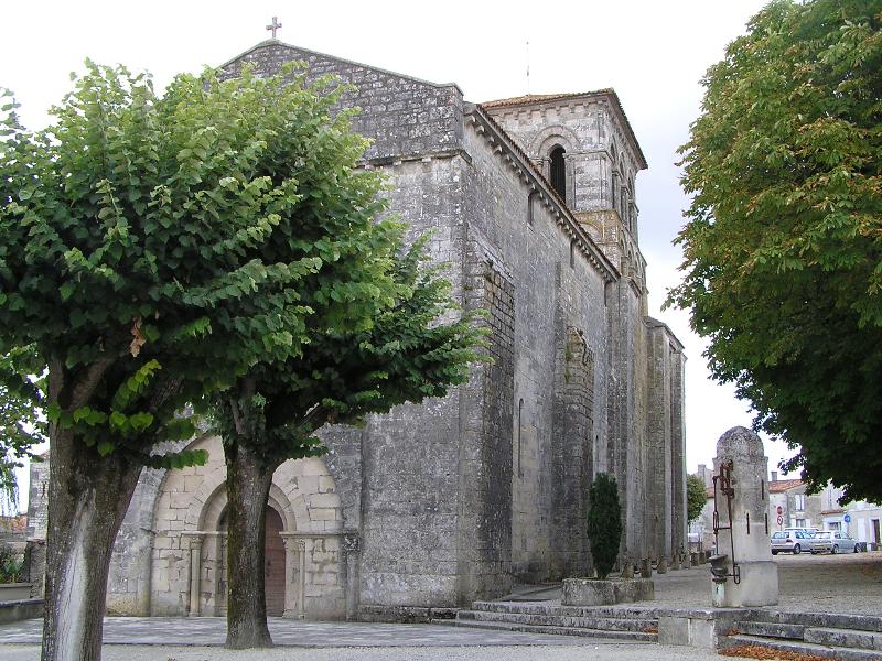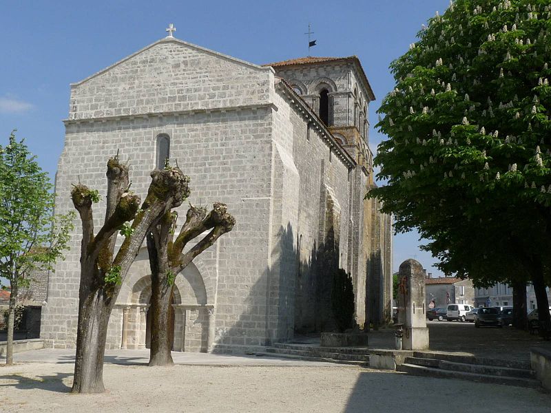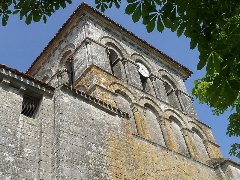 L'église, mentionnée dès le XIe siècle, dépendait de l'ancien diocèse de Saintes. De plan rectangulaire, elle comporte une nef unique et un chevet droit; la nef est couverte d'un berceau brisé en pierre prenant appui sur un cordon. Les chapiteaux intérieurs sont ornés de personnages et de griffons. Le carré du transept et le chœur sont couverts d'une voûte à nervures et à liernes retombant sur des pilastres à l'ouest et sur des consoles à l'est. La façade occidentale s'ouvre sur un portail en plein cintre à trois voussures, dont les chapiteaux sont décorés d'animaux fantastiques et de têtes humaines. L'édifice semble avoir subi une importante restauration à une date indéterminée comprise entre le XVe et le XIXe siècle, puis a été remis en état en 1877 (entrepreneur Pierre Ripoche, architecte Fouche, de Jarnac) et en 1888 (entrepreneur Jean Tournier, architecte Priollaud, de Jarnac).