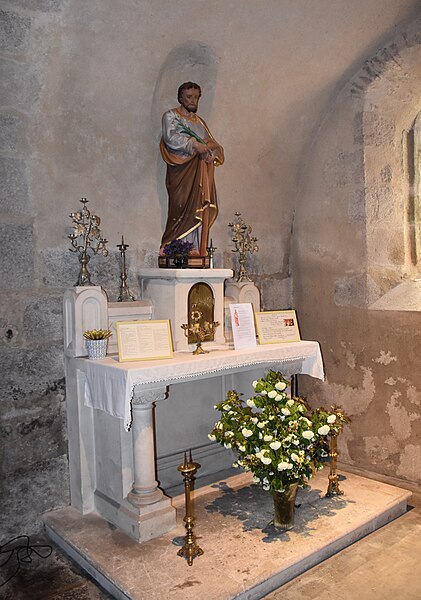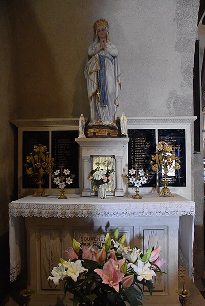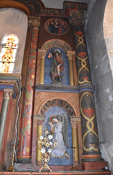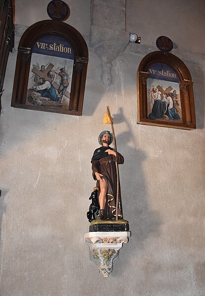L'église aurait été construite au XIIIe siècle. Trois chapelles latérales y ont été adjointe à une date inconnue. Des travaux de restauration sont mentionnés en 1527, en 1744 — date portée sur la sacristie — et en 1788. Vers 1850, une partie du mur de la nef et la charpente ont été reconstruites et une tribune a été aménagée.