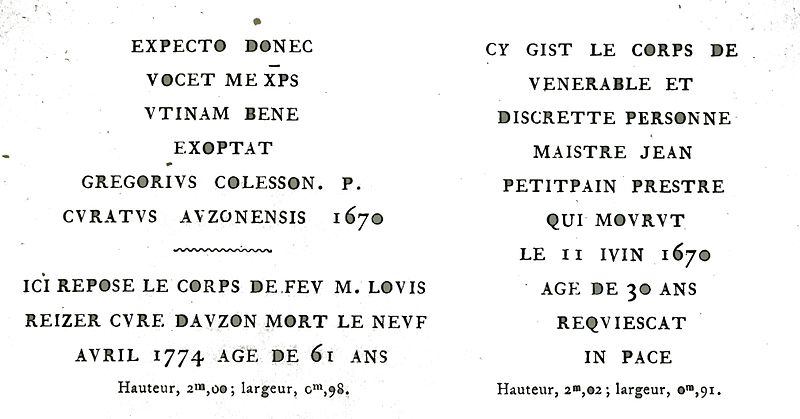 L'église Saint-Martin se situe à Val-d'Auzon, dans le département de l'Aube. La paroisse dépendait d'un prieuré-cure du doyenné de Brienne, possession de l'abbaye de Saint-Loup. L'édifice date du XIIe siècle et a été remanié au XVIe siècle ; il est dépourvu d'un bras de transept. Elle comporte une cuve baptismale, un chapiteau et une dédicace à Marie Thérèse Marchand, et la documentation iconographique inclut un dessin de Charles Fichot. L'église est inscrite au titre des monuments historiques en 1926.