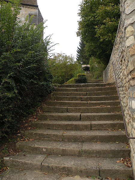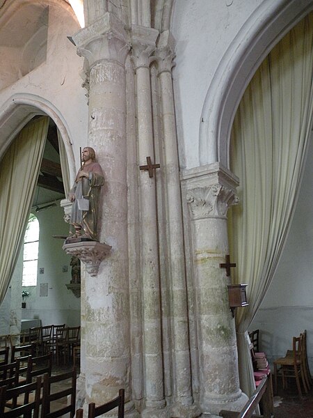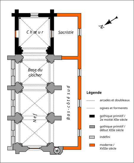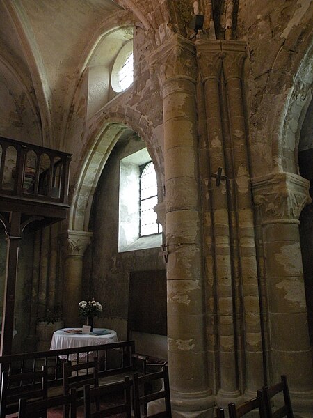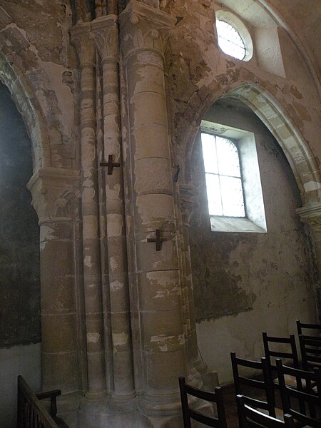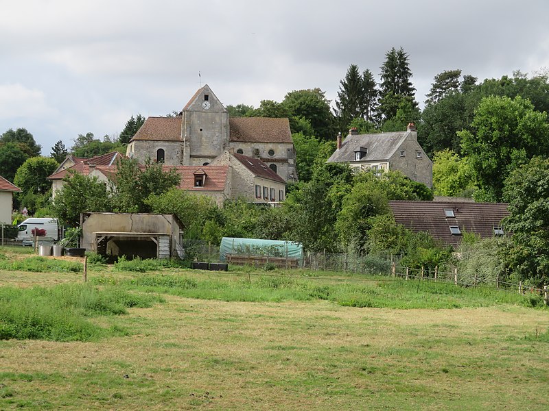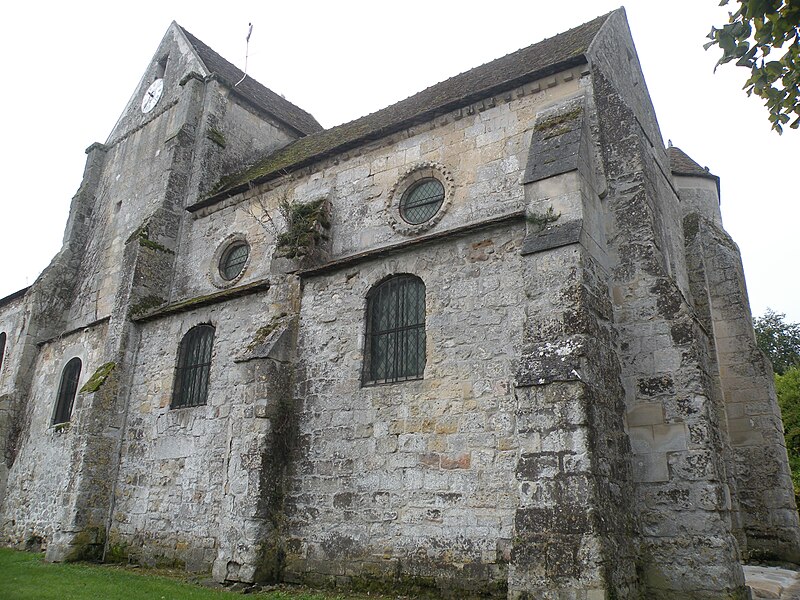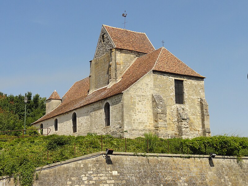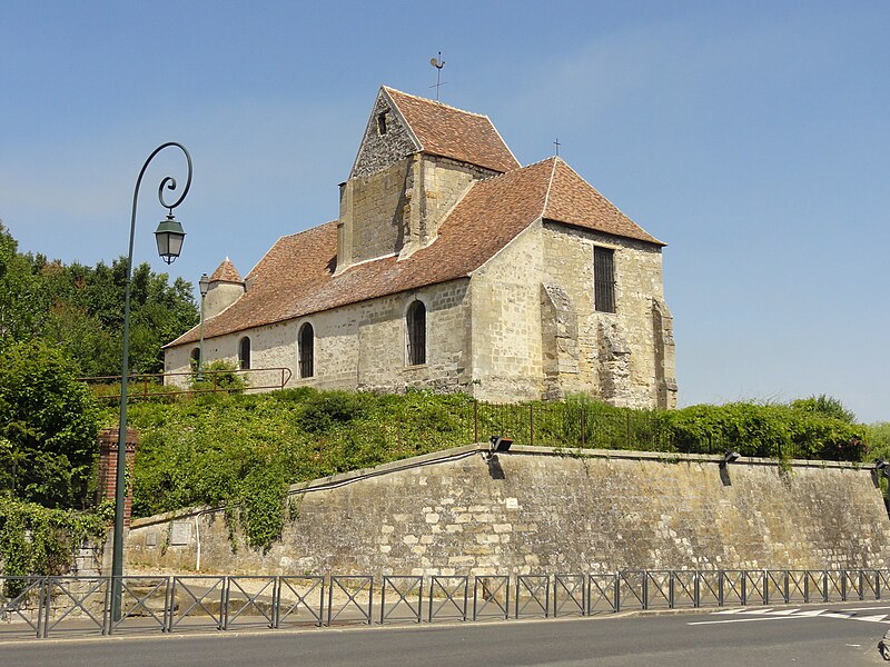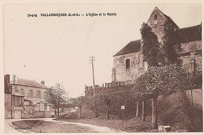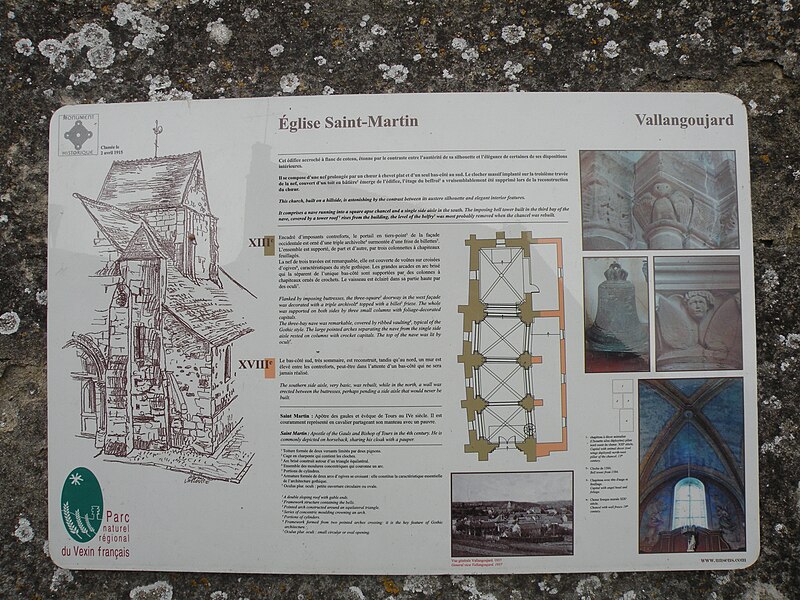 L'église Saint-Martin de Vallangoujard est implantée sur un éperon rocheux au centre du village, dominant la vallée du Sausseron au carrefour des routes départementales 927 et 64. Le chœur conserve des chapiteaux de la seconde moitié du XIIe siècle, mais l'essentiel de l'édifice, y compris le portail occidental, date du XIIIe siècle ; le bas-côté sud a été reconstruit au XVIIIe siècle. L'ensemble se compose d'une nef de deux travées, de la base du clocher assimilée à la nef, et d'un chœur carré à chevet plat ; le bas-côté sud et la sacristie sont prolongements plus récents et exclus du classement. À l'extérieur, le portail gothique du XIIIe siècle, encadré par contreforts, présente des colonnettes, des archivoltes et des chapiteaux de feuillage ; la porte en bois à double vantail porte des panneaux ornés et les initiales S et M. L'élévation nord de la nef reste proche de son état primitif avec des contreforts à ressauts et des oculi servant de fenêtres hautes, tandis que l'élévation méridionale et le chevet montrent des reprises et des baies attribuables aux campagnes du XVIIIe siècle. Le clocher, réduit à son étage intermédiaire ou inachevé, est épaulé par des contreforts et n'offre guère d'ouvertures destinées aux cloches ; il est coiffé d'un toit en bâtière perpendiculaire à l'axe de l'édifice. À l'intérieur, le vaisseau central est voûté d'ogives dès l'origine ; les grandes arcades moulurées retombent sur des colonnettes à chapiteaux dont la sculpture est d'un bon niveau. La composition des supports est volontairement dense : faisceaux de colonnettes, piliers cantonnés et nombreux fagots de petits fûts pour formerets et ogives donnent une impression légèrement trapue mais bien structurée. Les clés de voûte portent des couronnes de feuillage et des traces de décor peint subsistent sur les voûtains, évoquant un faux-appareil et des frises de rinceaux caractéristiques du Vexin français. Le chœur, plus sobre et partiellement recouvert de peintures murales modernes, présente à son entrée deux doubleaux contigus appartenant à campagnes différentes et des chapiteaux remarquables sculptés de palmettes, certains proches du style roman. L'analyse des grandes arcades, ouvertes au nord et au sud, laisse envisager que des bas-côtés furent initialement prévus mais éventuellement différés ou laissés inachevés au XIIIe siècle pour des raisons économiques ; le bas-côté aujourd'hui présent ne date que du XVIIIe siècle. Pour compenser l'absence ou le retard de ces voûtements, des contreforts ordinaires ont été mis en œuvre, expliquant leur présence tant à l'intérieur qu'à l'extérieur et l'aspect inabouti de certaines élévations. L'église a été classée monument historique par arrêté du 2 avril 1915, à l'exception du bas-côté sud et de la sacristie. Le mobilier comporte plusieurs éléments protégés, d'autres inscrits ou non classés ; certains proviennent de l'église de Mézières et ont été restaurés ou remis en réserve, voire exposés au musée du Vexin français. Sont notamment signalés des fonts baptismaux et une cuve du XIVe siècle, une Vierge à l'Enfant du XIVe siècle restaurée, une statue de saint Antoine, ainsi que des cloches nommées « Nicole » et « Martine » datées respectivement de 1584 et 1611, aux côtés d'autres sculptures, bâtons de procession, bancs et boiseries de diverses époques. L'accès à l'église se fait depuis le parking à l'angle de la rue de Pontoise et de la rue de Marines ou par un chemin rural, et un parvis se situe devant l'élévation méridionale.