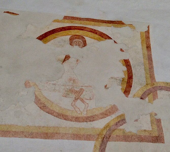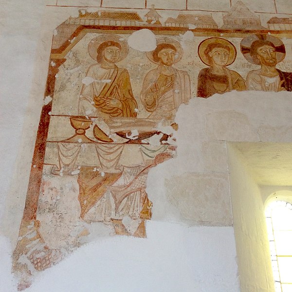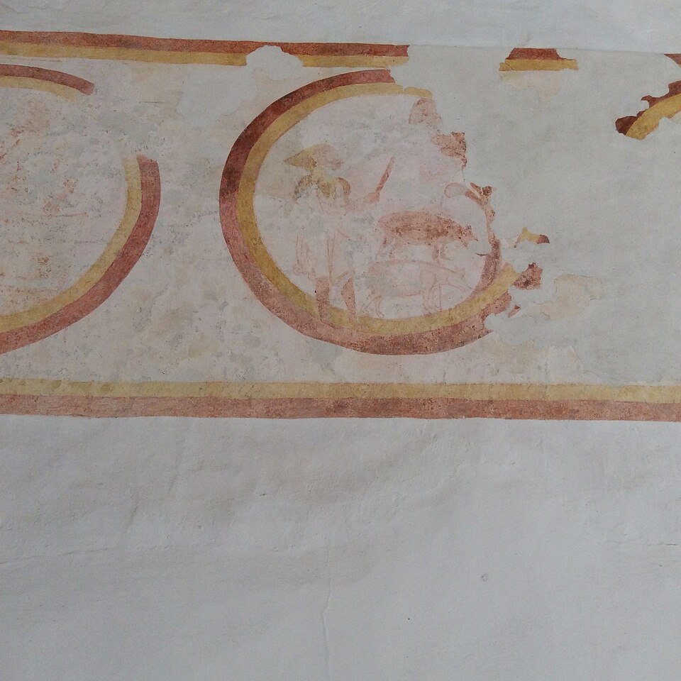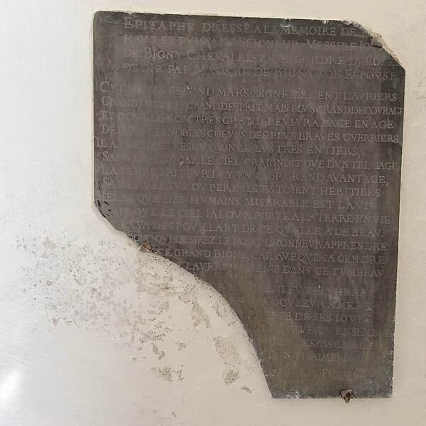 Malgré de nombreuses altérations, l'église conserve plusieurs décors peints exécutés du XIIe au XVIIe siècle, encore en grande partie recouverts de badigeon. Les murs de la nef conservent les vestiges d'un calendrier d'époque romane figurant les travaux des mois de l'année sous forme de médaillons, dans lesquels on reconnaît notamment des scènes pour janvier et mars. Sur le mur nord subsistent d'autres traces : un grand quadrilobe à bordure ocre-rouge et ocre-jaune presque effacé, une scène peinte peut‑être du XIIIe siècle dont une partie de l'inscription est encore lisible au‑dessus d'un visage de femme coiffé d'un touret ou d'un voile, et, à gauche de la baie, un fragment de scène d'époque romane représentant très probablement soit le Repas chez Simon soit la Pêche miraculeuse au lac de Tibériade; dans ce fragment les personnages sont nommés de gauche à droite : Judas, Thomas, Job, IHS (Jésus), Simon, Petrus et une femme dont le nom est illisible. Sur le mur diaphragme du chœur subsiste un autre décor dont le sujet et la datation ne peuvent être précisés en raison du badigeon. Sur le chevet apparaît un Christ en Majesté dans une mandorle accompagné du tétramorphe : ce décor, très effacé, est probablement contemporain ou de peu postérieur à la construction des travées du chœur. La travée est a reçu une décoration picturale insérée dans une architecture feinte, vraisemblablement mise en place au XVIIe siècle à l'instigation des seigneurs de Bigny. Une litre seigneuriale, posée au XVIIe ou au XVIIIe siècle, fait le tour des murs et subsiste en traces, notamment sur le mur nord et autour du chevet du chœur.