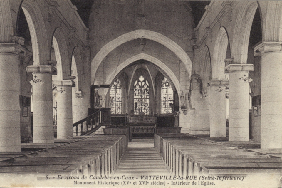 L'église Saint-Martin se trouve dans le quartier de La Rue, à Vatteville-la-Rue, dans le département de la Seine-Maritime. Son vocable est mérovingien, mais l'édifice actuel remonte au XVIe siècle. Au XVIIe ou XVIIIe siècle, la foudre a frappé le clocher, et la façade ouest a été reconstruite au XIXe siècle. Le bâtiment, construit en pierre calcaire, est classé au titre des monuments historiques depuis le 22 octobre 1913. Il abrite une tribune de style Renaissance et des vitraux du XVIe siècle qui évoquent la vie de saint Martin ou illustrent la vie maritime de la commune. L'intérieur conserve également une litre funéraire datée de 1777, commémorant le décès de Charles-Gabriel de Nagu, un autel dédié à saint Clément, patron des marins, ainsi que des graffitis marins. La documentation sur l'église figure notamment dans Le Patrimoine des communes de la Seine-Maritime et dans des bases consacrées au patrimoine religieux et architectural.
