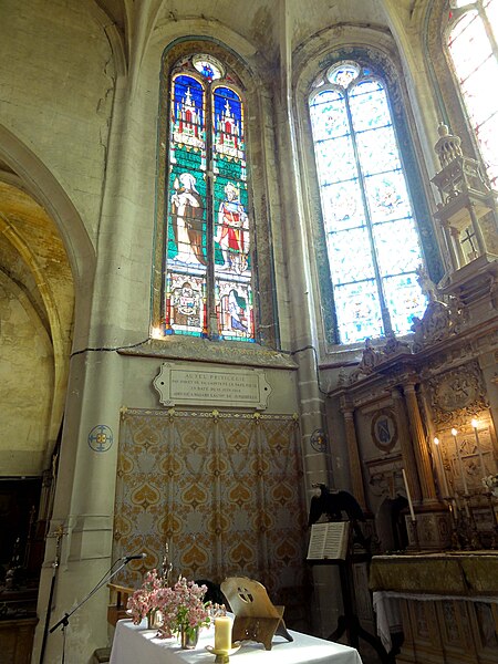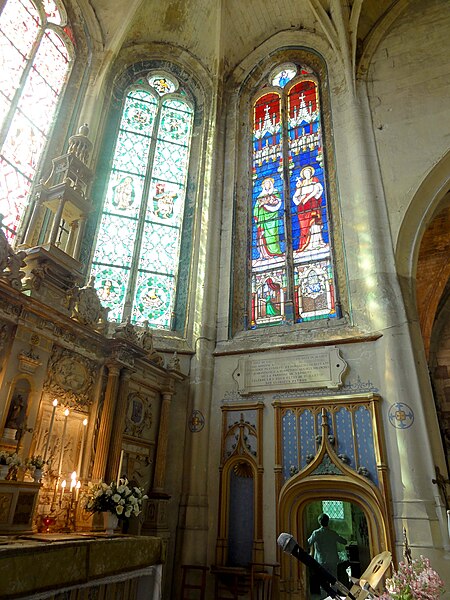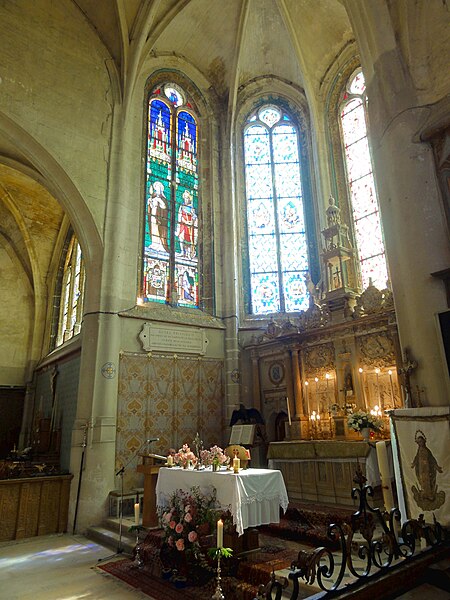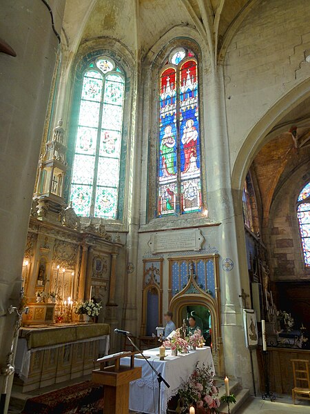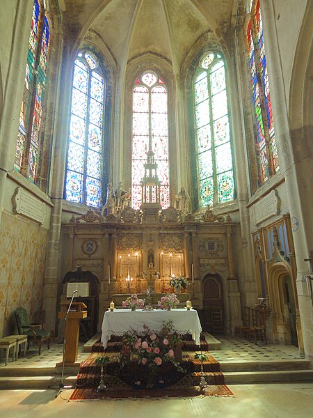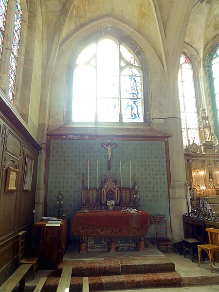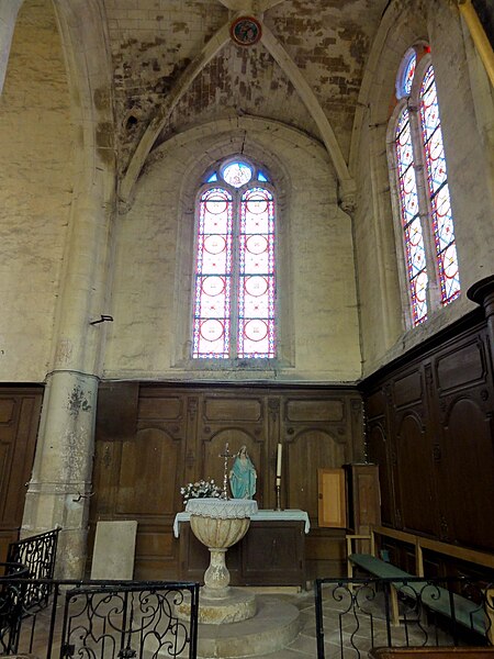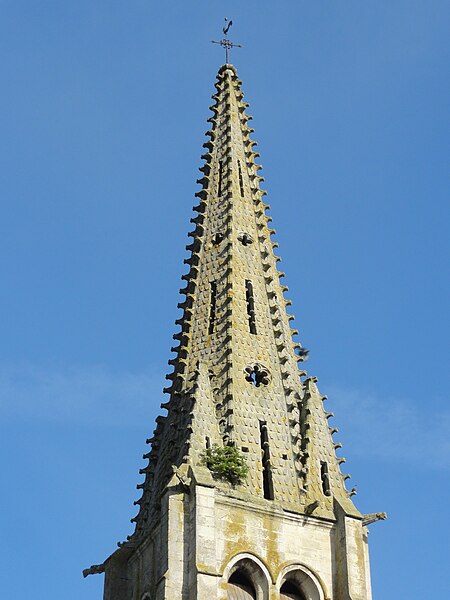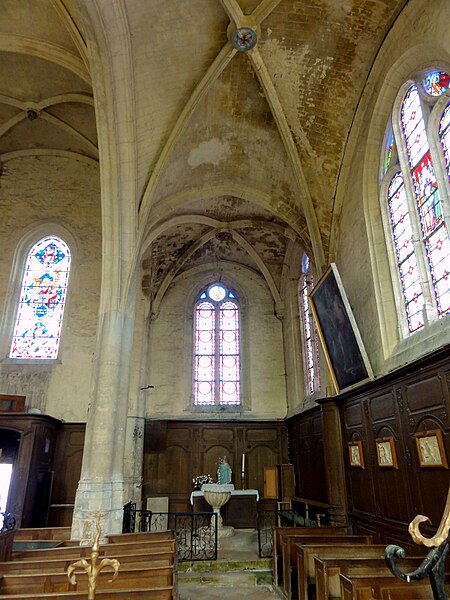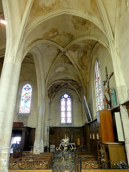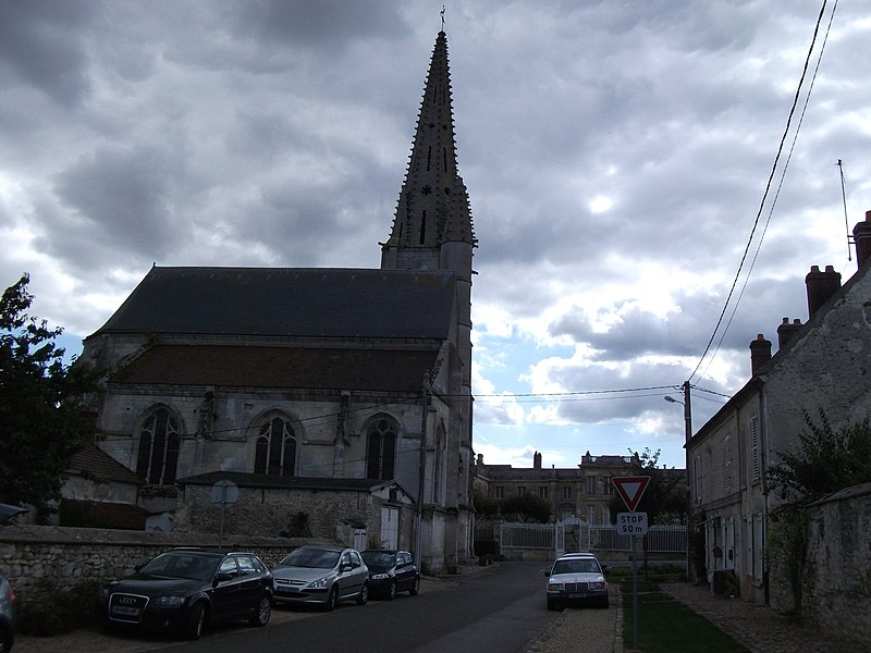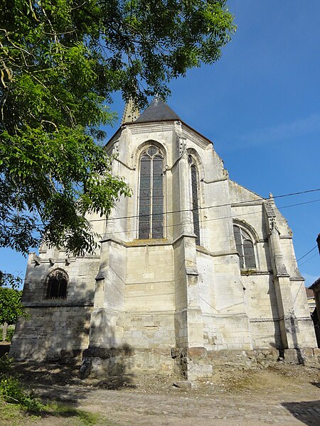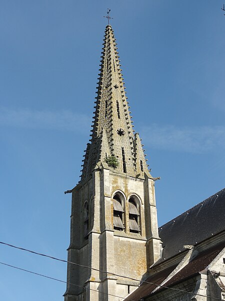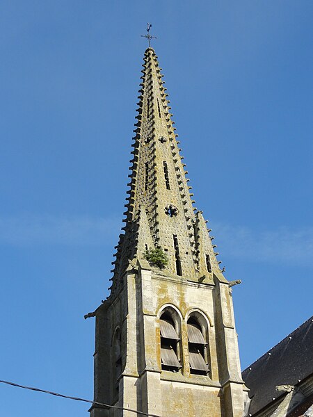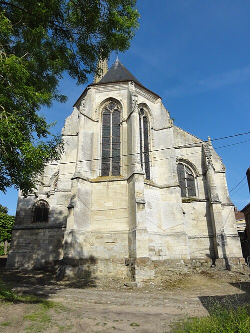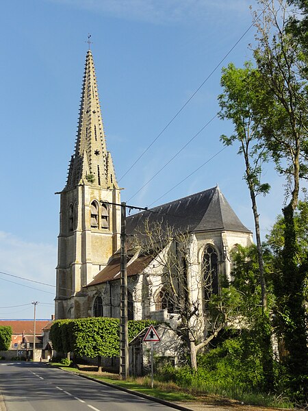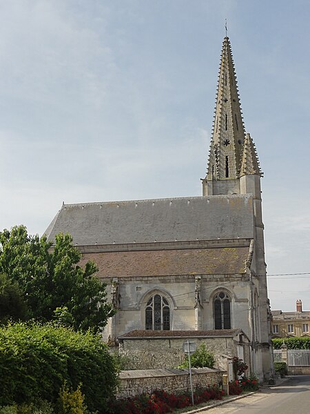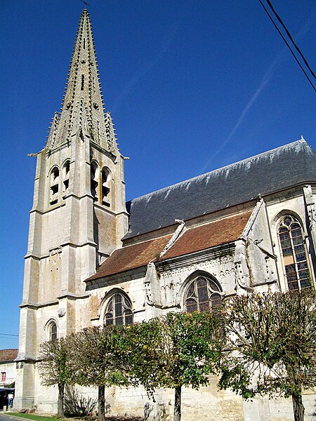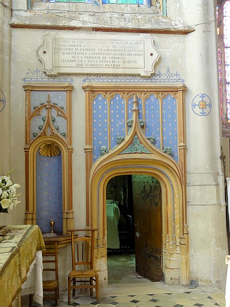 L'église Saint‑Martin est une église catholique paroissiale située à Versigny (Oise), face au château à l'entrée est du village. Elle se trouve dans la région Hauts‑de‑France, dans le Parc naturel régional Oise‑Pays de France, et son élévation méridionale est alignée sur la route RD 330a. Le clocher sobre, daté de la fin du XVe siècle, porte une haute flèche ajourée dont le style évoque le XIIIe siècle. Le reste de l'édifice appartient principalement à l'architecture gothique flamboyante du second quart du XVIe siècle : nef large et élancée malgré une faible profondeur, piliers particulièrement fins et abside à pans coupés. Trois travées droites précèdent l'abside ; des bas‑côtés longent la nef et se terminent par un chevet plat. La dernière travée du bas‑côté sud se distingue extérieurement par des arcatures trilobées et intérieurement par une voûte ornée de quatre clés secondaires délimitant un rectangle. Un portail latéral sud aujourd'hui bouché et le remarquable retable en pierre daté de 1561 sont de style Renaissance ; le portail occidental, de style Renaissance tardive, a été ajouté postérieurement. L'église est classée au titre des monuments historiques par arrêté du 6 mai 1907. Placée sous le vocable de saint Martin, elle dépendait autrefois du doyenné et du diocèse de Senlis ; depuis la Révolution elle relève du diocèse de Beauvais et a été intégrée à la paroisse Notre‑Dame de la Visitation du Haudouin en 1996. Le village n'a plus de prêtre résident et le service paroissial est en grande partie assuré par le curé à la retraite d'Ermenonville ; les messes dominicales y sont célébrées environ un samedi par mois à 18 h 30. La datation des parties de l'église se lit dans les maçonneries : le clocher est l'élément le plus ancien tandis que la majeure partie des élévations et des remplages de fenêtres appartient à la seconde moitié du XVIe siècle. La porte de la sacristie au sud de l'abside présente un décor flamboyant, bien que son authenticité soit discutée. Une plaque commémorative indique une restauration générale conduite entre 1863 et 1867 grâce au concours de la comtesse Aglaée de Junquières, à qui la fabrique a consacré une messe annuelle le 14 mai. Orientée avec une légère déviation vers le sud‑est, l'église se compose d'une nef aveugle de trois travées, de deux bas‑côtés et d'une abside polygonale ; la sacristie occupe l'angle entre l'abside et le bas‑côté sud. Le clocher s'élève au droit de la première travée du bas‑côté sud ; une cage d'escalier octogonale s'intercale entre ce clocher et la façade occidentale. L'ensemble est voûté d'ogives ; seules l'abside et la dernière travée du bas‑côté sud comportent des voûtes à quatre tiercerons dessinant un rectangle autour de la clé. Extérieurement, la flèche octogonale reposant sur pyramidons et cantonnée de contreforts renvoie à des modèles régionaux et à l'influence de la cathédrale de Senlis ; des gargouilles et dix éléments saillants subsistent encore. Le clocher, sobre dans son élévation, est rythmé par des larmiers et percé au niveau du beffroi de deux baies abat‑son par face, tandis que la tourelle d'escalier est éclairée de petites meurtrières. La façade occidentale associe le clocher, le mur en pierre de taille du bas‑côté nord et le mur en moellons de la nef ; le portail occidental en plein cintre est cantonné de pilastres doriques et surmonté d'un fronton brisé encadrant une niche. Les élévations latérales et le chevet sont soignés : murs en moyen appareil, larmiers, corniche moulurée et contreforts enrichis d'arcatures trilobées plaquées et d'ornements sculptés, tandis que certaines baies montrent la transition du remplage flamboyant vers des formes renaissantes. À l'intérieur, la porosité du vaisseau central s'explique par de larges arcades retombant sur de minces piles ondulées à quatre ronflements ; les doubleaux et ogives présentent un profil parfois atténué annonçant l'évolution du style. Les clés de voûte de la nef sont des rosaces de feuillage entourées d'étoiles à six branches ; celle de l'abside associe octogones superposés et feuillages et présente une polychromie néogothique visible dans l'ensemble de l'abside et des chevets des bas‑côtés. La base du clocher s'ouvre sur la nef et le bas‑côté sud par des arcades en tiers‑point à double rouleau ; la travée comporte un trou de cloches au centre de la voûte, des cul‑de‑lampes sculptés et des vestiges liés aux usages anciens de la sonnerie et de l'horloge. Les bas‑côtés, hauts et lumineux malgré leur largeur réduite, sont couverts de boiseries de qualité au soubassement ; la seconde travée du sud, anciennement chapelle seigneuriale devenue chapelle de la Vierge, conserve une voûte décorée de quatre tiercerons et des arcatures extérieures. Le mobilier comprend plusieurs éléments protégés : le retable de pierre de 1561, richement sculpté et rehaussé de dorures, porte des armoiries et des bas‑reliefs représentant la Nativité, l'Adoration des Mages et les évangélistes ; il a été repeint et doré au XIXe siècle et classé en 1907. Des stalles datées du troisième quart du XVIe siècle, des grilles en fer forgé et d'autres panneaux sculptés sont également classés ; on remarque aussi un groupe sculpté polychrome de la Charité de saint Martin, daté de la seconde moitié du XVIe siècle et classé en 1925, ainsi que plusieurs statues, un aigle‑lutrin et des bannières de procession. Parmi le mobilier funéraire, sept dalles sont protégées en tant qu'objets, quatre datant de la période comprise entre environ 1560 et 1631, dont plusieurs portent des effigies gravées et des armoiries, notamment des membres des familles de Marle et Dubief. L'église, bien dégagée de constructions mitoyennes, se contemple partiellemen