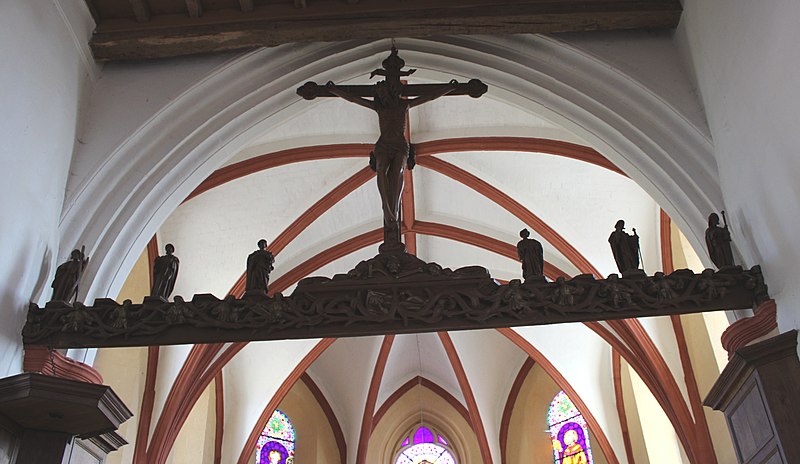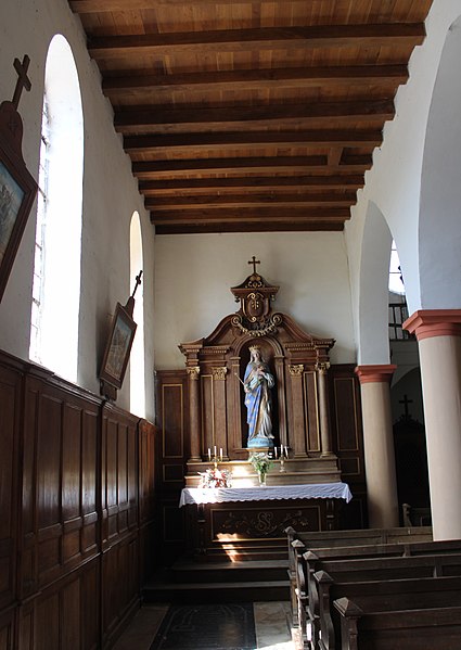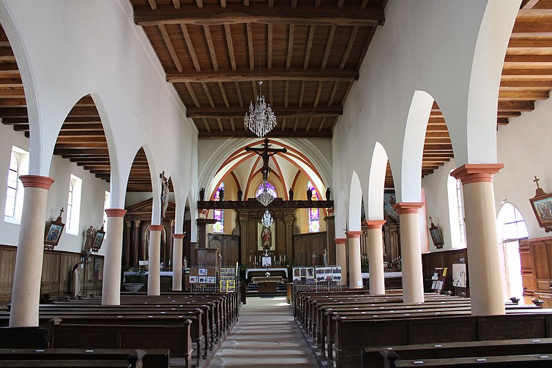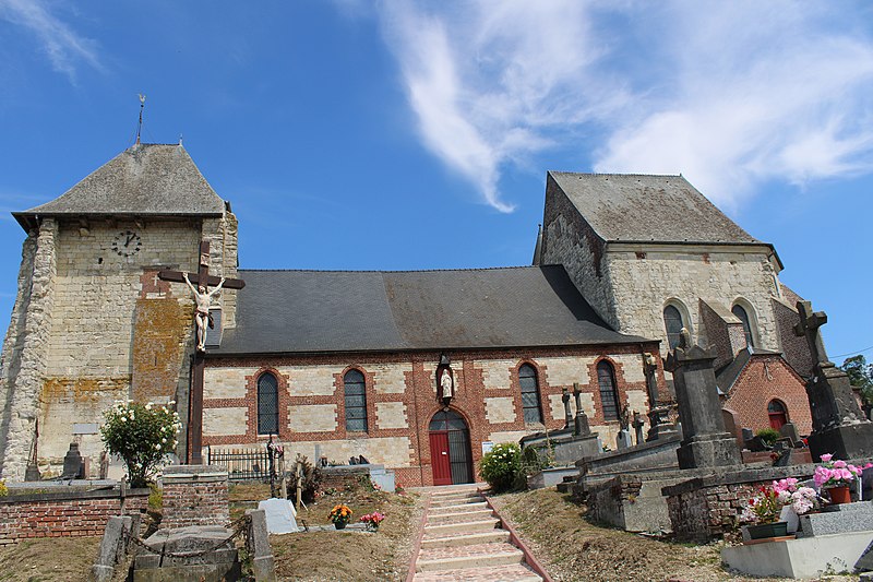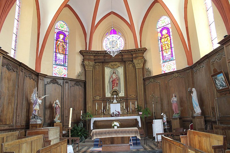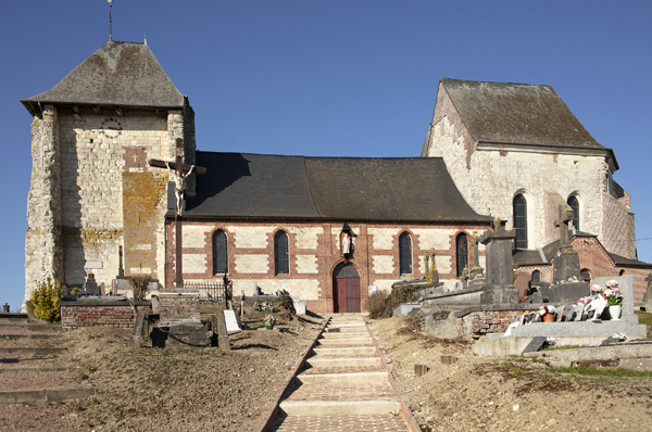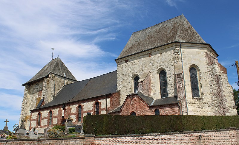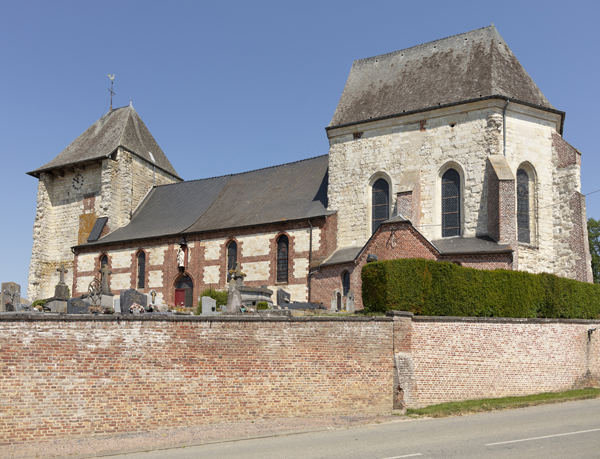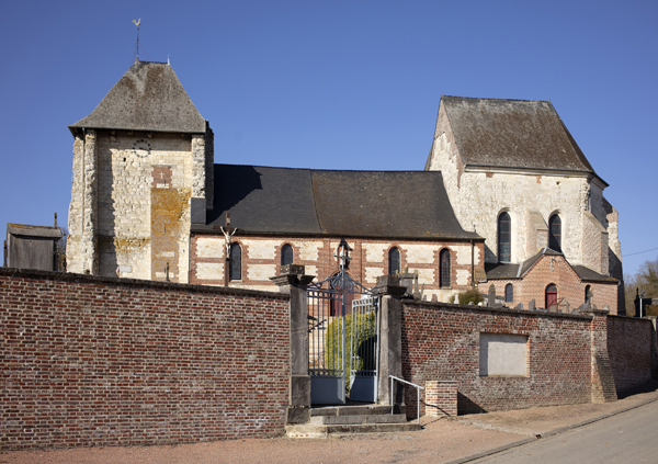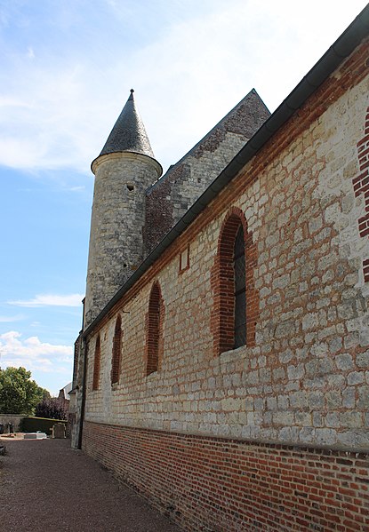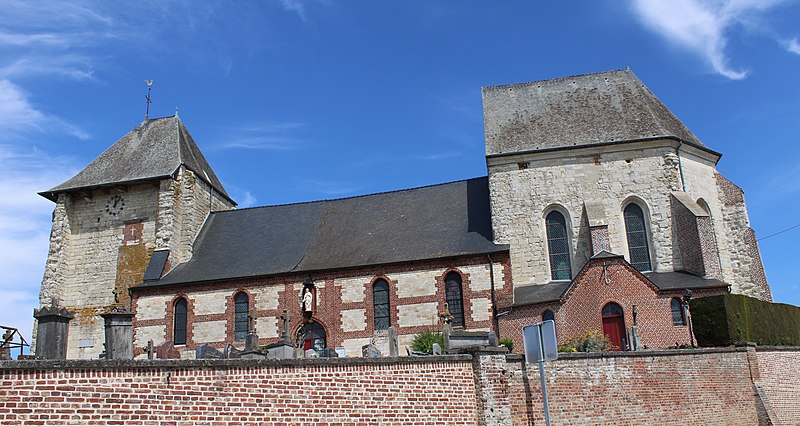 L'église Saint‑Martin de Vigneux‑Hocquet (Aisne) est composée de trois parties distinctes : un donjon en pierre de plan carré à deux niveaux, une nef et un chœur. Le donjon conserve les restes d'une échauguette et des meurtrières à l'étage supérieur, qui est le seul niveau véritablement fortifié. Le chœur, daté de 1537 et organisé sur deux niveaux, est doté d'une tourelle percée de meurtrières donnant accès à la salle de refuge de l'étage supérieur ; cette tourelle est pourvue de deux échauguettes et de quatre meurtrières. La nef est plus récente mais sa datation varie selon les sources : elle est parfois attribuée à une reconstruction probable au XVIIe siècle et parfois placée au XIXe siècle. L'ensemble apparaît peu homogène, mais le chœur a probablement servi de modèle à ceux de Renneval et de Morgny. L'église s'inscrit dans le réseau des forts‑églises de la vallée de la Serre, développé et généralisé dans la région aux XVIe et XVIIe siècles. La tradition locale évoque un tunnel creusé sous le village qui aurait permis aux habitants assiégés de gagner les prés de l'autre côté du bois du Val‑Saint‑Pierre, à proximité de bâtiments ecclésiastiques. Une association, Les Amis de l'Église fortifiée, participe activement à la restauration du monument. Le donjon, en calcaire, est soutenu par huit contreforts ; au sommet se trouve la salle de refuge, accessible par un passage situé au‑dessus de la nef et pourvue de deux meurtrières. Le chevet fortifié présente une meurtrière à hauteur d'homme et une bretèche sommitale destinée à la défense, qui servait aussi de latrines. À l'intérieur, la nef, flanquée de deux bas‑côtés, est datée du XIXe siècle, et l'édifice abrite notamment un chœur, une statue de saint Martin et un orgue. Avant la Révolution, le patronage de la cure de Saint‑Martin appartenait au chapitre de Rozoy (2/9), le curé percevant 3/9 et le prieur de Sainte‑Léocade 4/9 ; dix arpents de terre à la solle et vingt verges de pré étaient attachés à la cure, dont les revenus annuels s'élevaient, selon une déclaration du 25 septembre 1728, à 371 livres. Le monument a été inscrit au titre des monuments historiques en 1987.