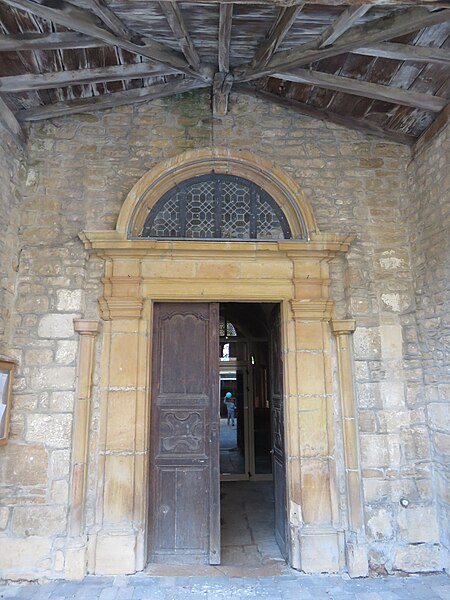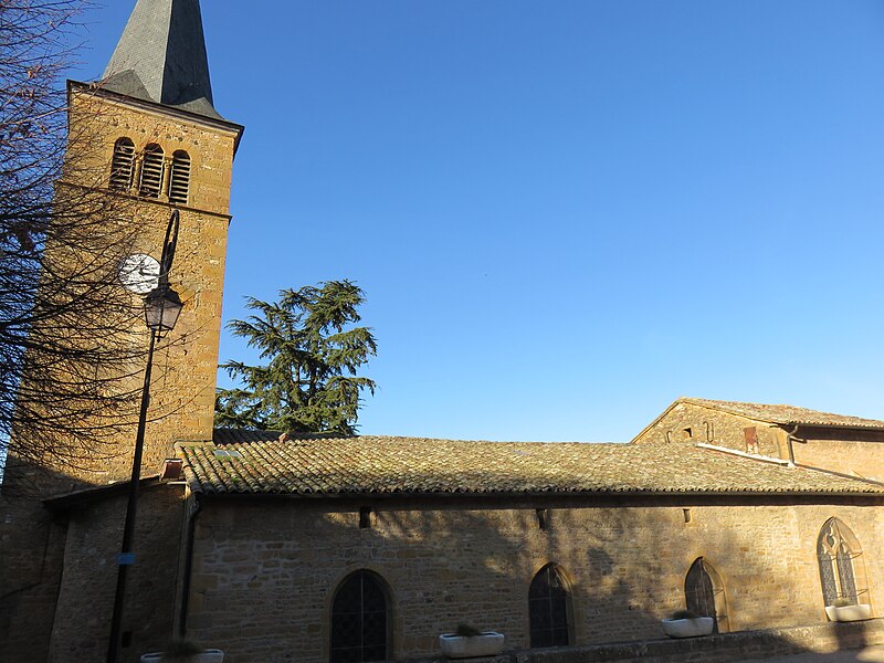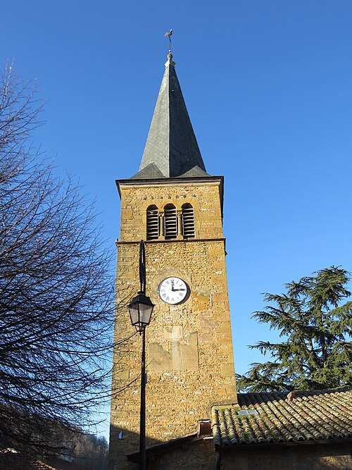 L'église Saint‑Martin de Ville‑sur‑Jarnioux, dans le département du Rhône, est une église catholique classée monument historique en 1979. Elle remonte probablement à la seconde moitié du XIIe siècle, mais l'essentiel de l'édifice actuel date des XVIe et XVIIe siècles. L'édifice a été construit sur les fondations d'un oratoire bénédictin cité dans le cartulaire de l'abbaye de Savigny à la fin du Xe siècle. D'importants travaux de consolidation ont été réalisés en 1987–1988, puis les vitraux ont été restaurés en 1993, les statues en 1999 et les boiseries en 2001. Le mobilier répertorié dans la base Palissy depuis 1987 comprend de nombreuses pièces : statues, vitraux, tableaux et éléments du mobilier liturgique, ainsi qu'une bannière de fanfare et quinze médailles de la fanfare de Ville‑sur‑Jarnioux réalisées entre 1867 et 1904. Les statues en bois, datées des XVIIe et XVIIIe siècles, représentent notamment la Vierge à l'Enfant, une sainte couronnée, saint Jean‑Baptiste, saint Joseph, saint Blaise, sainte Lucie, saint Martin, saint Vincent et une Piéta. Les vitraux du chœur, signés Alexandre Mauvernay et datés de 1845, ornent l'abside : la baie centrale montre le Christ portant sa croix accompagné de la Vierge, la baie nord saint Paul et la baie sud saint Pierre. À côté de la baie de saint Pierre se trouve un grand vitrail figurant la Trinité et les vertus théologales, la foi étant représentée par le calice et le livre, l'espérance par l'ancre et la charité par le pélican nourrissant ses petits. Un tableau du XVIIe siècle représentant la Trinité entourée d'anges avec saint Augustin et saint Claude au premier plan a été offert à l'église en 2005 et restauré en 2012. De part et d'autre du chœur se trouvent deux tableaux du XIXe siècle : l'un présente les attributs de l'évêque (mitre, croix, crosse) et l'autre les symboles du prêtre (calice, ciboire, ostensoir et bénitiers), chacun surmonté d'une croix ornée d'un ruban et disposé sur un bouquet de feuillage. Trois autels, tous classés, occupent l'édifice : le maître‑autel, pourvu de six chandeliers et d'une croix d'autel, l'autel de la Vierge dans la chapelle dédiée et l'autel de saint Martin dans la chapelle sud. À droite de chacun des autels se trouve une piscine baptismale en pierre destinée à récupérer l'eau utilisée à la fin de la messe, où les enfants de chœur déposaient les burettes. Le mobilier liturgique comprend la chaire, un meuble de sacristie, une clôture de chœur en marbre, les fonts baptismaux, un bénitier du XVIIe siècle et une chape, tous référencés dans la base Palissy. La poutre de gloire, en fer forgé et datée du XVIIIe siècle, est formée de branches en volutes avec deux porte‑cierges et accompagne une statue en bois du Christ en croix. Une litre funéraire court sur les murs de l'église et des fresques autrichiennes ont été réalisées pendant la guerre de 1814.