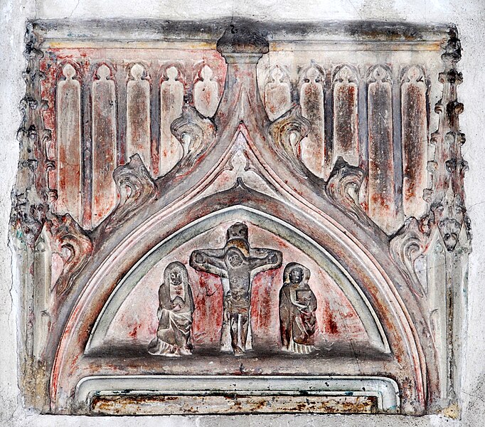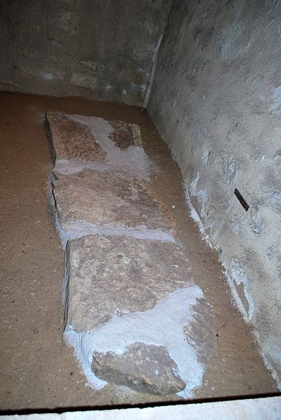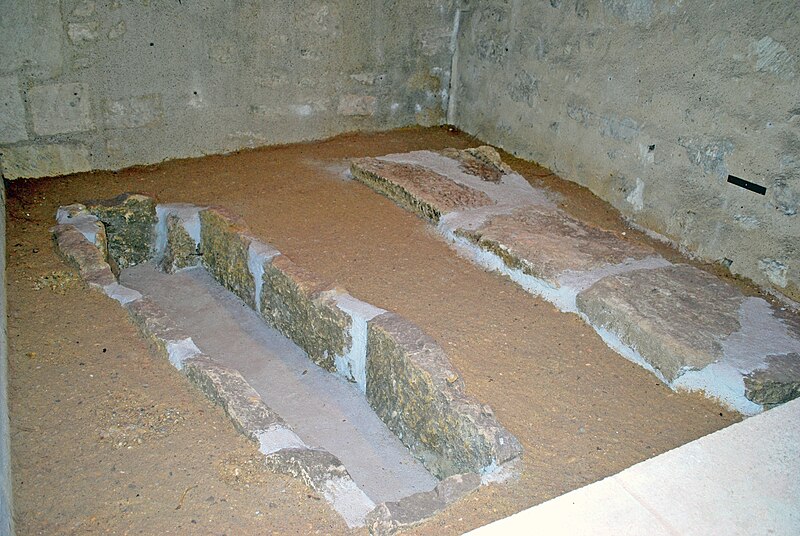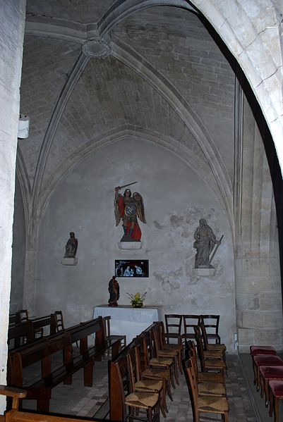 Sur le mur sud de la nef subsiste l'inscription au-dessus d'une ancienne porte percée en 1649, vestige d'un porche disparu, et l'emplacement d'une ancienne sacristie du XVIIe siècle détruite à la fin du XIXe siècle ; des vestiges de cadrans canoniaux y sont gravés et indiquaient les heures liturgiques. Le cimetière entourait l'église jusqu'en 1856 et l'enclos actuel correspond à cet ancien périmètre ; des fouilles préventives menées en 2013 ont révélé plusieurs phases d'occupation funéraire, la découverte de deux sarcophages mérovingiens et près de 250 sépultures médiévales à modernes. Enfin, lors des mêmes fouilles ont été mis au jour deux coffrages médiévaux reconstitués et présentés dans le porche, contenant les restes de deux adultes, l'un masculin et l'autre féminin.