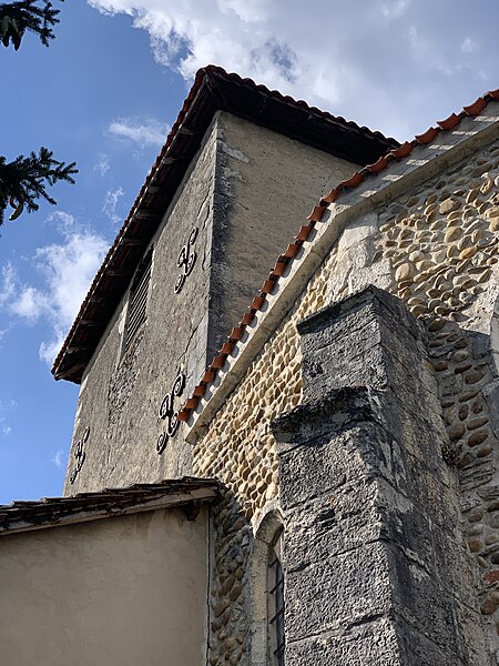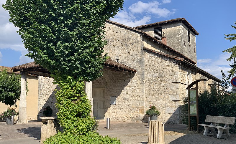 L'église Saint‑Martin de Villette‑sur‑Ain (Ain) est protégée au titre des monuments historiques. Des fouilles dans le chœur ont livré des monnaies gauloises et romaines ainsi que de la céramique antique, laissant supposer une implantation sur un ancien sanctuaire ; l'édifice est mentionné dès le IXe siècle comme dépendant de l'abbaye de Nantua. Elle se compose d'une nef de trois travées voûtée d'ogives, d'une travée de chœur et d'une abside pentagonale, avec trois chapelles latérales côté nord — dont une à voûte en berceau brisé décorée au XIXe siècle — tandis que les chapelles sud ont été édifiées à partir de 1845. Une première partie romane, complétée par des adjonctions gothiques, constitue aujourd'hui l'ossature de l'édifice. Le chœur présente des arcatures latérales portées par des colonnes antiques encastrées dans les murs : deux fûts proviennent à l'origine d'une même colonne (1,26 m encastré au nord et 1,36 m au sud) et sont surmontés de chapiteaux distincts, le chapiteau nord étant contemporain du roman tandis que le sud pourrait être réemployé. Un décor d'entrelacs du XIVe ou du XVe siècle orne les impostes des piles du premier arc, deux fonts baptismaux seraient d'origine, et les boiseries du chœur sont attribuées au XVIIe siècle. Les arcs triomphaux, les murs du chœur et l'abside ont été décorés par le peintre Jean Scohy ; on lui doit notamment l'Adoration du Saint‑Sacrement (1878) sur l'arc triomphal, des scènes telles que l'Ascension, l'Assomption, les Tables de la Loi et l'Évangile de Jean sur les voûtes à la base du clocher, ainsi que quatre cadres en bois dans le chœur figurant l'Annonciation, la Nativité, la Samaritaine et l'apparition du Christ à Marie‑Madeleine. Dans la chapelle Saint‑Antoine se trouve une toile de 1860 représentant saint Antoine au désert, et la chapelle Notre‑Dame de Pitié conserve une Déposition datée de 1866. Le clocher quadrangulaire, détruit à la Révolution, a été reconstruit et reçoit une cloche dont la marraine est Madame de la Teyssonnière. Au XIXe siècle l'édifice a fait l'objet de travaux de restauration et d'adaptation : construction et voûtement des chapelles sud, consolidation du clocher, déplacement du cimetière, la construction d'un porche sur la façade ouest ayant précédé 1887 et l'adjonction d'une sacristie en 1921.