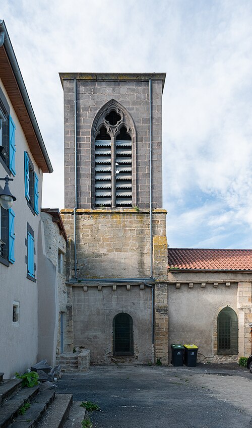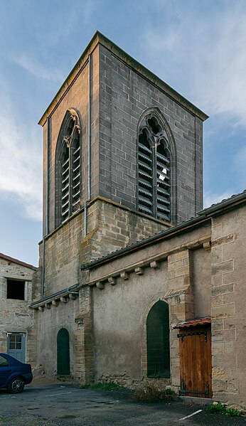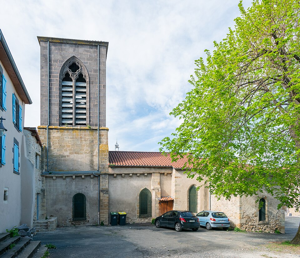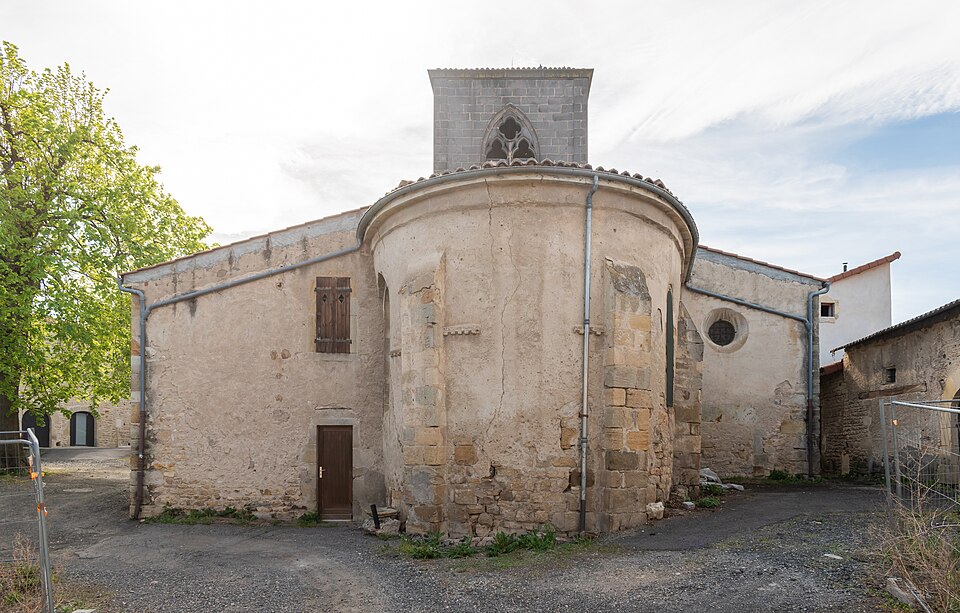 L'église Saint-Martin fut donnée en 990 au prieuré de Sauxillanges ; un prieuré, qui en 1789 dépendait de Saint-Caffre, y était associé. Elle comprend une nef de trois travées voûtée en berceau brisé et un chœur à chevet semi‑circulaire voûté en cul‑de‑four. Une petite chapelle s'ouvre au sud, dans la première travée à partir du chœur. Au fond de la nef se dressent deux piliers cylindriques engagés, surmontés de chapiteaux romans à feuillages. Une tourelle ronde renfermant un escalier à vis forme une forte saillie dans le mur ouest de la dernière travée de bas‑côté. Le portail occidental présente un arc brisé à trois voussures moulurées de profil circulaire ; ses montants sont constitués de trois colonnes qui reçoivent l'arc sur des chapiteaux. Il est précédé d'un porche de deux travées voûtées d'ogives, dont les clés sont sculptées et dont l'une porte la date 1588. Le clocher carré, situé au‑dessus de la dernière travée, comporte sur chacune de ses faces des baies géminées à arcs en plein cintre retombant sur une colonnette médiane ronde surmontée d'un chapiteau. La voûte intérieure du clocher est une coupole sur trompes. Le cimetière du village occupe le côté sud de l'église ; à son entrée, un trou circulaire paraît se prolonger assez profondément, servant probablement d'ossuaire.