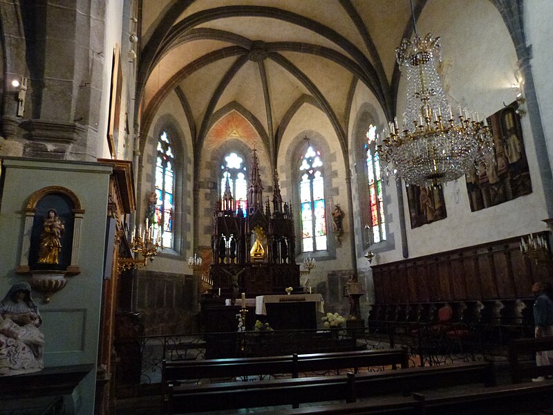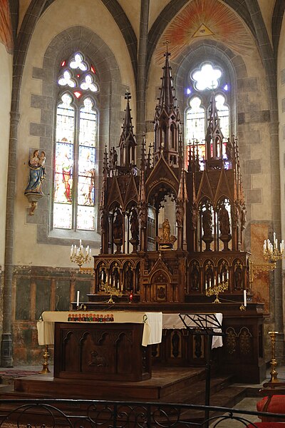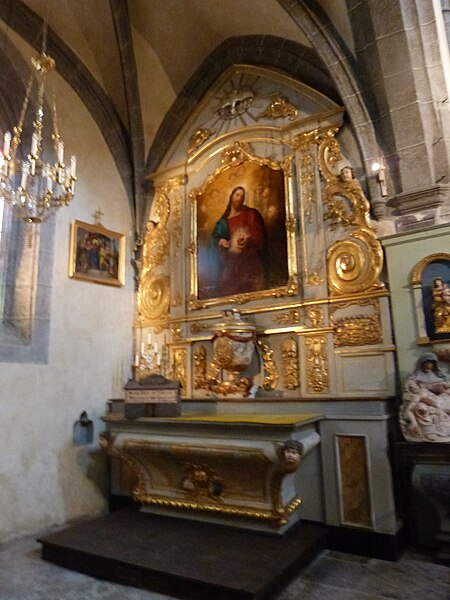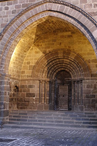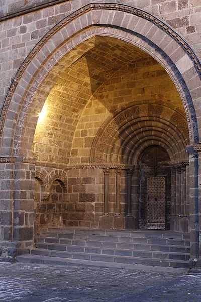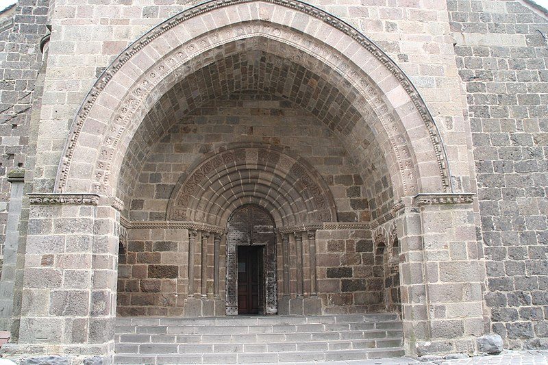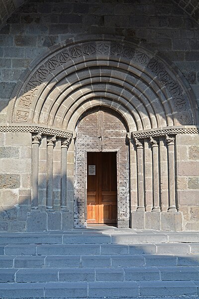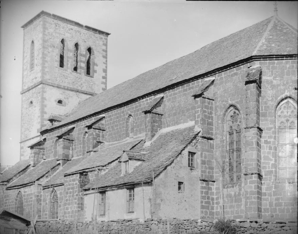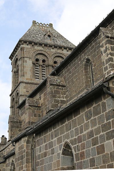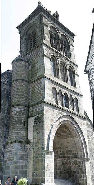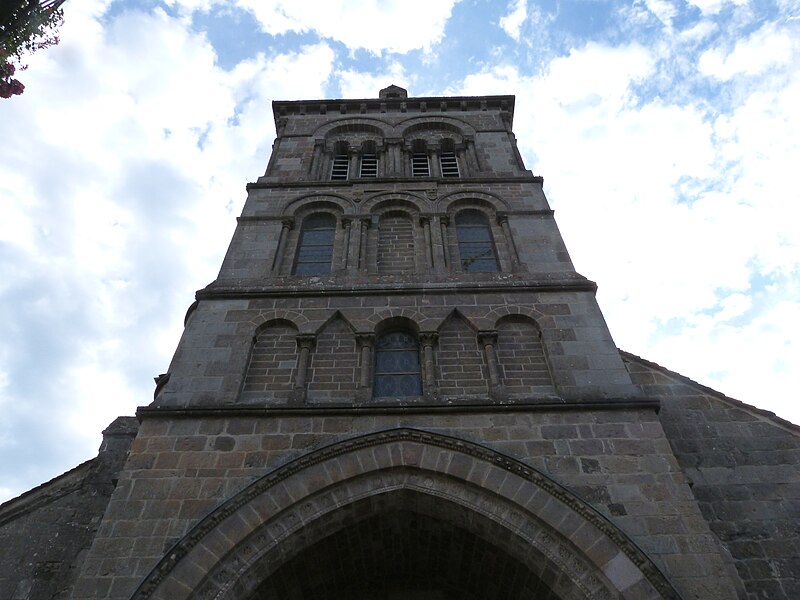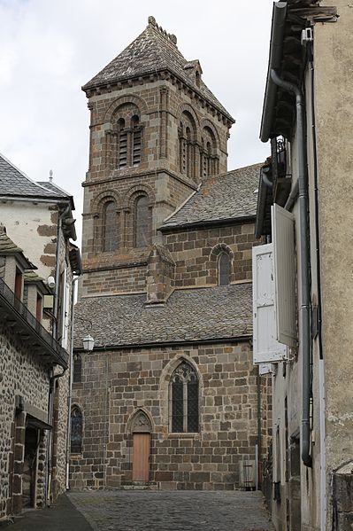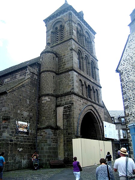 L'église Saint-Mathieu, paroissiale et catholique, se situe à Salers dans le département du Cantal, en région Auvergne‑Rhône‑Alpes. L'édifice existe dès le XIIIe siècle, et son porche pourrait dater de la fin du XIIe siècle. À partir de la fin du XVe siècle, l'église fait l'objet d'une reconstruction qui se poursuit jusqu'au milieu du XVIe siècle ; elle est consacrée en 1552. En 1620, le clocher est démoli, puis des travaux de restauration au XIXe siècle entraînent la reconstruction du clocher. L'édifice est classé au titre des monuments historiques en 1994. Des vues anciennes montrent Salers en 1883 et l'ancien clocher en ruine. Le porche présente des similitudes avec ceux de l'église Saint‑Martin de Sauvat, de la priorale Saint‑Victor et Sainte‑Madeleine de Chastel‑Marlhac et de l'église Saint‑Georges d'Ydes‑Bourg : ces porches romans de Haute‑Auvergne se caractérisent par des volumes massifs mettant en valeur la façade, avec ou sans avant‑corps. Des notices et ressources sont par ailleurs répertoriées dans des bases telles que Mérimée, Structurae et Clochers de France.