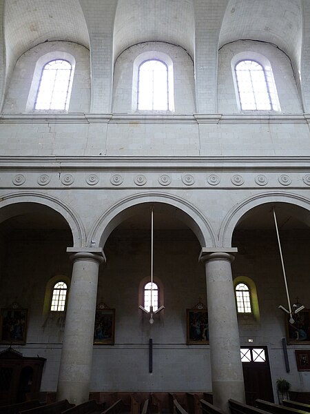L'église paroissiale Saint-Mathurin se situe à Saint-Mathurin-sur-Loire, dans le département de Maine-et-Loire. Comme beaucoup d'édifices proches d'un fleuve, elle est tournée vers celui-ci plutôt que vers l'est. Construite en tuffeau blanc dans un néoclassicisme dépouillé, elle a été réalisée entre 1840 et 1846 par l'architecte Jacques Louis François Villers. Un concours architectural du 12 mai 1838 est également mentionné, remporté par François Villiers; les travaux commencèrent le 13 août 1840, s'achevèrent en 1846 et l'église fut consacrée en 1847. La façade est sobrement décorée : une frise sculptée sur l'architrave et des colonnes cannelées en constituent les principaux ornements, tandis que le clocher est surmonté d'un dôme et d'une lanterne. La porte, précédée d'un péristyle, ouvre sur un narthex qui reçoit l'œuvre monumentale de Grau Garriga, La Porte de la Paix, inaugurée le 12 juin 2012. L'intérieur comprend trois nefs qui donnent directement sur un chœur de plan circulaire et n'a pas de transept. Des tableaux présentés au Salon de Paris de 1841 décorent les murs. L'édifice a été inscrit au titre des monuments historiques en 1991 et a fait l'objet de travaux de restauration en 1992. Des ressources et références sont disponibles, notamment les notices Mérimée, Structurae et Clochers de France, ainsi que des portails consacrés aux monuments historiques, à l'Anjou et à l'architecture chrétienne, et les listes des monuments et des églises de Maine-et-Loire.