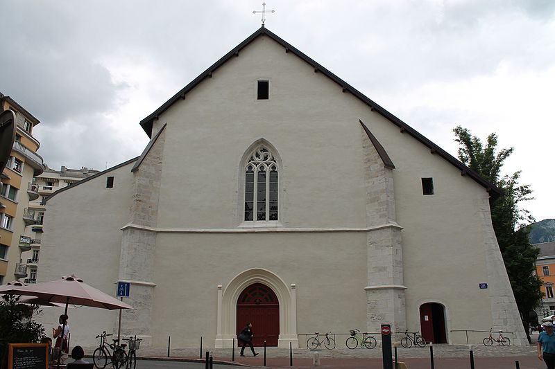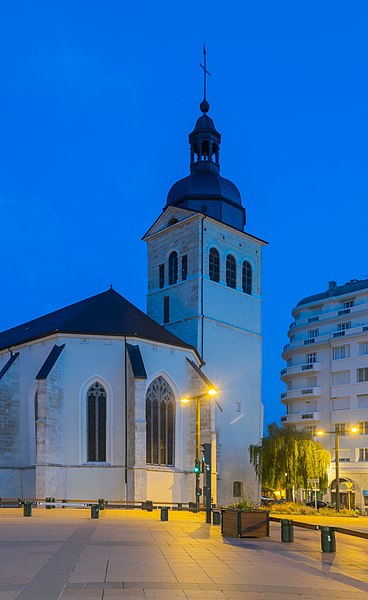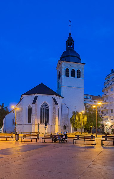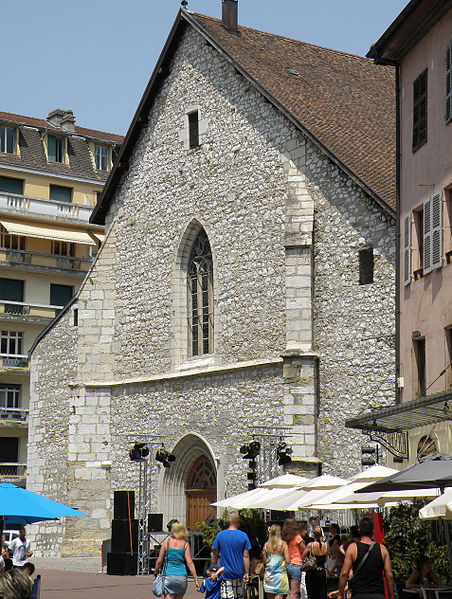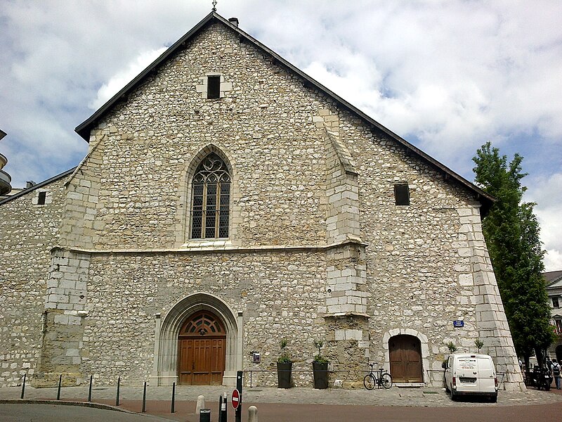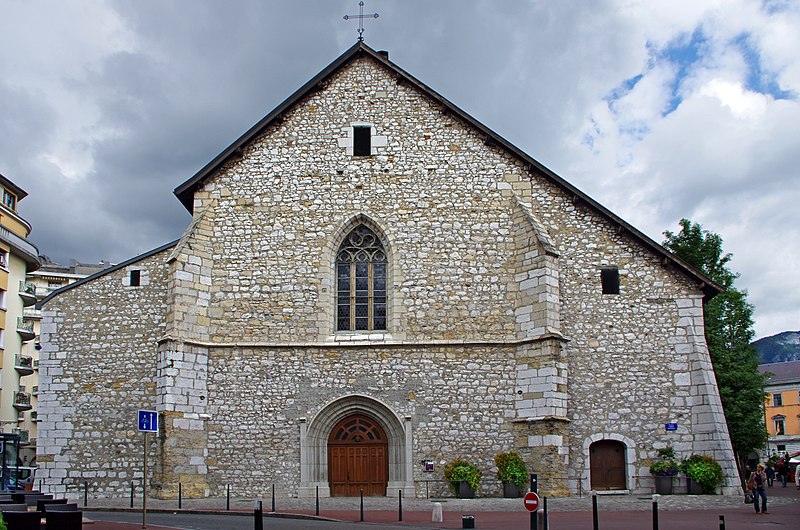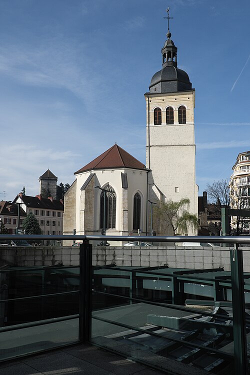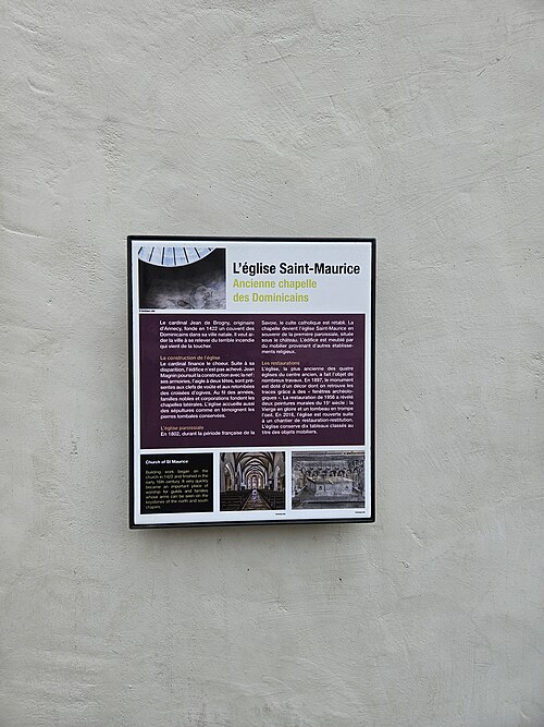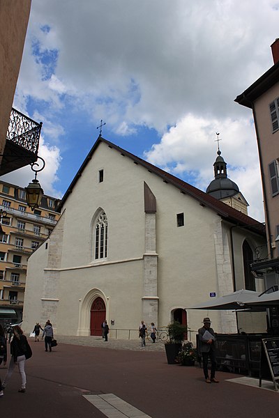 L'église Saint-Maurice, autrefois appelée Saint-Dominique, se situe dans la vieille ville d'Annecy, en Haute-Savoie, face à l'hôtel de ville. Elle est l'ancienne chapelle d'un couvent dominicain dont la construction a été engagée le 22 mars 1422 à l'initiative du cardinal de Brogny ; l'édifice se trouvait alors en bordure des murailles, le long d'un canal reliant le Thiou au Vassé. Consacrée le 14 septembre 1445 alors qu'elle n'était pas totalement achevée, elle portait à l'origine le vocable de saint Dominique ; le nom a changé après la destruction d'une ancienne église dédiée à saint Maurice située près du château, saint Maurice étant le patron protecteur de la Savoie. Les voûtes ont été élevées en 1491 et la chapelle Notre-Dame-de-Pitié-et-Saint-Michel, demandée par le comte apanagiste Janus de Savoie, a été édifiée le 23 mai 1478 ; elle abrite les sépultures de Janus et de sa femme Hélène de Luxembourg. Durant la Révolution française, l'édifice a été pillé puis transformé en marché aux grains puis en écurie, avant d'être rendu au culte le 24 août 1803 lors du Concordat, prenant alors le vocable de saint Maurice. Le clocher a été reconstruit en 1822 et l'église a fait l'objet de travaux de restauration en 2014-2015. L'édifice présente un style flamboyant savoyard, une variante du gothique tardif propre aux Alpes ; on ignore l'identité de l'architecte et, selon Raymond Oursel, il manque d'élégance faute de ressources. Les peintures murales comprennent notamment la peinture funéraire du tombeau de Philibert de Monthoux et une représentation de l'Assomption de la Vierge sur fond rouge vermillon. Dans cette Assomption la Vierge, aux mains jointes, est portée par quatre anges tandis que, au niveau du sol, figurent le bienheureux Pierre de Luxembourg et l'apôtre Thomas, ce dernier tenant la "Sainte Ceinture" en référence à une tradition médiévale ; le cardinal Pierre de Luxembourg est mis en scène comme donateur, en lien avec la famille de Luxembourg. L'orgue de l'église a été construit par la manufacture Merklin-Schütze en 1869 et profondément modifié en 1966 par le facteur Athanase Dunand, qui a changé des jeux, installé une nouvelle console et ajouté un positif de dos. Le clocher contient quatre cloches : la plus grande, fondue en 1561 par François Sermond, la deuxième, réalisée par Claude Paccard en 1826, une troisième en acier fondue à Unieux par Holtzer, et une petite cloche non utilisée, trop modeste à côté du bourdon devisé à un peu moins de deux tonnes. Parmi les éléments remarquables de l'intérieur figurent la façade, la peinture funéraire du milieu du XVe siècle du tombeau de Philibert de Monthoux, une Vierge en gloire entourée d'anges avec deux saints en prière (début du XVIe siècle), les vitraux du chœur, la statue de saint Maurice, l'autel, les stalles, l'orgue, le bénitier, les fonts baptismaux, un relief en bois, une statue du Christ, plusieurs chapelles dont celle du Rosaire, ainsi que la décoration et le clocher au-dessus du canal Saint-Dominique qui passe sous l'église. L'édifice a été inscrit au titre des monuments historiques en 1943 et partiellement classé en 1957.