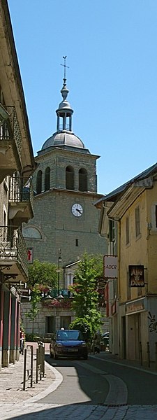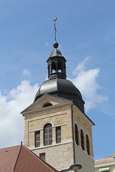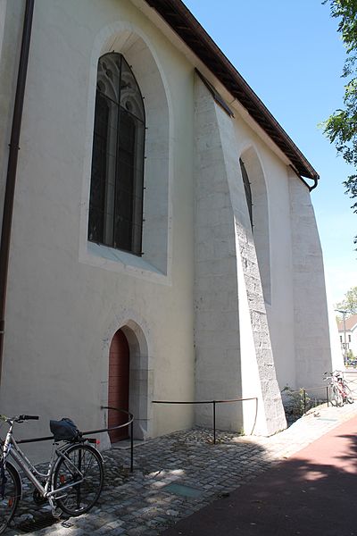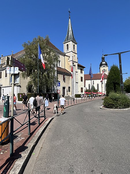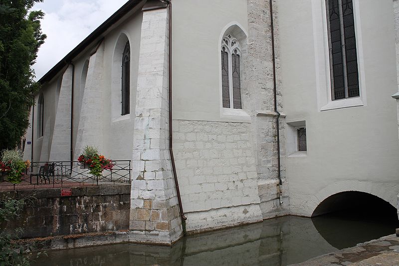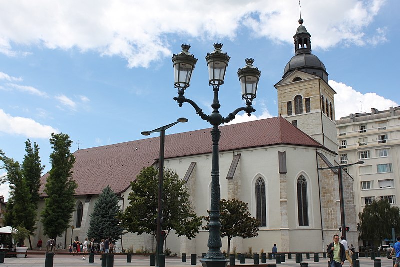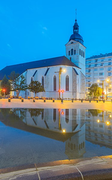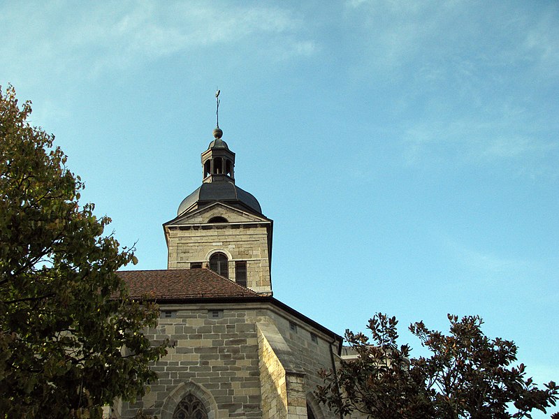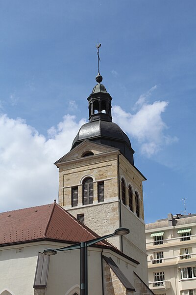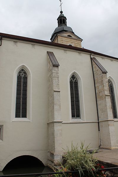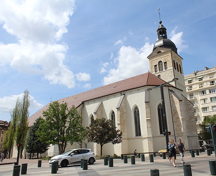 L'église Saint-Maurice, autrefois appelée Saint-Dominique, se situe dans la vieille ville d'Annecy, en Haute-Savoie, face à l'hôtel de ville. Elle est l'ancienne chapelle d'un couvent dominicain dont la construction a été engagée le 22 mars 1422 à l'initiative du cardinal de Brogny ; l'édifice se trouvait alors en bordure des murailles, le long d'un canal reliant le Thiou au Vassé. Consacrée le 14 septembre 1445 alors qu'elle n'était pas totalement achevée, elle portait à l'origine le vocable de saint Dominique ; le nom a changé après la destruction d'une ancienne église dédiée à saint Maurice située près du château, saint Maurice étant le patron protecteur de la Savoie. Les voûtes ont été élevées en 1491 et la chapelle Notre-Dame-de-Pitié-et-Saint-Michel, demandée par le comte apanagiste Janus de Savoie, a été édifiée le 23 mai 1478 ; elle abrite les sépultures de Janus et de sa femme Hélène de Luxembourg. Durant la Révolution française, l'édifice a été pillé puis transformé en marché aux grains puis en écurie, avant d'être rendu au culte le 24 août 1803 lors du Concordat, prenant alors le vocable de saint Maurice. Le clocher a été reconstruit en 1822 et l'église a fait l'objet de travaux de restauration en 2014-2015. L'édifice présente un style flamboyant savoyard, une variante du gothique tardif propre aux Alpes ; on ignore l'identité de l'architecte et, selon Raymond Oursel, il manque d'élégance faute de ressources. Les peintures murales comprennent notamment la peinture funéraire du tombeau de Philibert de Monthoux et une représentation de l'Assomption de la Vierge sur fond rouge vermillon. Dans cette Assomption la Vierge, aux mains jointes, est portée par quatre anges tandis que, au niveau du sol, figurent le bienheureux Pierre de Luxembourg et l'apôtre Thomas, ce dernier tenant la "Sainte Ceinture" en référence à une tradition médiévale ; le cardinal Pierre de Luxembourg est mis en scène comme donateur, en lien avec la famille de Luxembourg. L'orgue de l'église a été construit par la manufacture Merklin-Schütze en 1869 et profondément modifié en 1966 par le facteur Athanase Dunand, qui a changé des jeux, installé une nouvelle console et ajouté un positif de dos. Le clocher contient quatre cloches : la plus grande, fondue en 1561 par François Sermond, la deuxième, réalisée par Claude Paccard en 1826, une troisième en acier fondue à Unieux par Holtzer, et une petite cloche non utilisée, trop modeste à côté du bourdon devisé à un peu moins de deux tonnes. Parmi les éléments remarquables de l'intérieur figurent la façade, la peinture funéraire du milieu du XVe siècle du tombeau de Philibert de Monthoux, une Vierge en gloire entourée d'anges avec deux saints en prière (début du XVIe siècle), les vitraux du chœur, la statue de saint Maurice, l'autel, les stalles, l'orgue, le bénitier, les fonts baptismaux, un relief en bois, une statue du Christ, plusieurs chapelles dont celle du Rosaire, ainsi que la décoration et le clocher au-dessus du canal Saint-Dominique qui passe sous l'église. L'édifice a été inscrit au titre des monuments historiques en 1943 et partiellement classé en 1957.