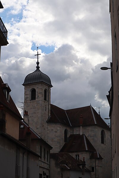 L'église Saint-Maurice, située dans le centre-ville de Besançon (Doubs, Franche‑Comté), est dédiée à saint Maurice et sa fondation est attestée dès le VIe siècle. Plusieurs édifices se sont succédé à cet emplacement : l'édifice fut reconstruit par saint Nicet entre la fin du VIe et le début du VIIe siècle, puis à nouveau aux VIIIe et Xe siècles. Entre 1552 et 1555, une importante restauration du chœur et des chapelles latérales fut menée sous l'impulsion de Nicole Bonvalot et de Nicolas Lulier ; cette église médiévale fut détruite au siècle suivant pour laisser place à l'édifice actuel, de style jésuite, datant du début du XVIIIe siècle. L'ancien bâtiment était moins long et moins large que l'actuel et son clocher se trouvait au‑dessus de la sacristie, contrairement au clocher moderne placé à l'arrière du chœur. Des réparations du chœur eurent lieu en 1684, puis des travaux sont attestés entre 1693 et 1704 ; l'archevêque interdit ensuite l'usage cultuel, le chœur fut détruit et la première pierre de la nouvelle construction fut posée le 17 octobre. En 1707, le nouveau clocher fut achevé et les trois nefs avancées jusqu'au niveau de la troisième arcade ; les derniers travaux importants et la démolition des vestiges de l'ancienne église s'achevèrent au printemps 1712. L'édifice fut terminé et béni le 2 décembre 1714, la façade étant achevée en 1723. Lors de la Révolution, l'église fut désaffectée et son mobilier vendu aux enchères : en 1794 le contenu retiré fut exposé dans la cour des Carmes puis vendu, l'édifice fut cédé en 1798 à C. P. Mourey qui le revendit en 1802 à sept acquéreurs, dont deux prêtres. Paroisse depuis la fin du XIIIe siècle, Saint‑Maurice faisait partie des huit paroisses intra muros de Besançon et, au XVIe siècle, avait le statut de « grande paroisse » ; malgré le faible étendue de son territoire elle était alors considérée comme la plus prestigieuse de la ville, comptant cinq prêtres en 1518 et étant parfois fréquentée par la famille Granvelle, notamment Nicolas Perrenot de Granvelle. La paroisse fut supprimée en 1791. Parmi les événements notables, une croix présentée comme provenant de Porrentruy était exposée à l'entrée le jour du Dimanche des Rameaux au XVIIe siècle dans le cadre de la Contre‑Réforme. L'église Saint‑Maurice fait l'objet d'une inscription au titre des monuments historiques depuis le 13 janvier 1938.