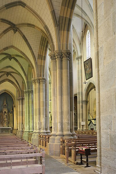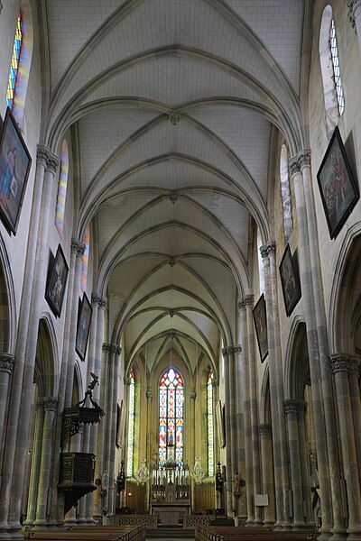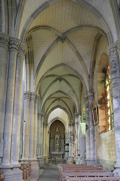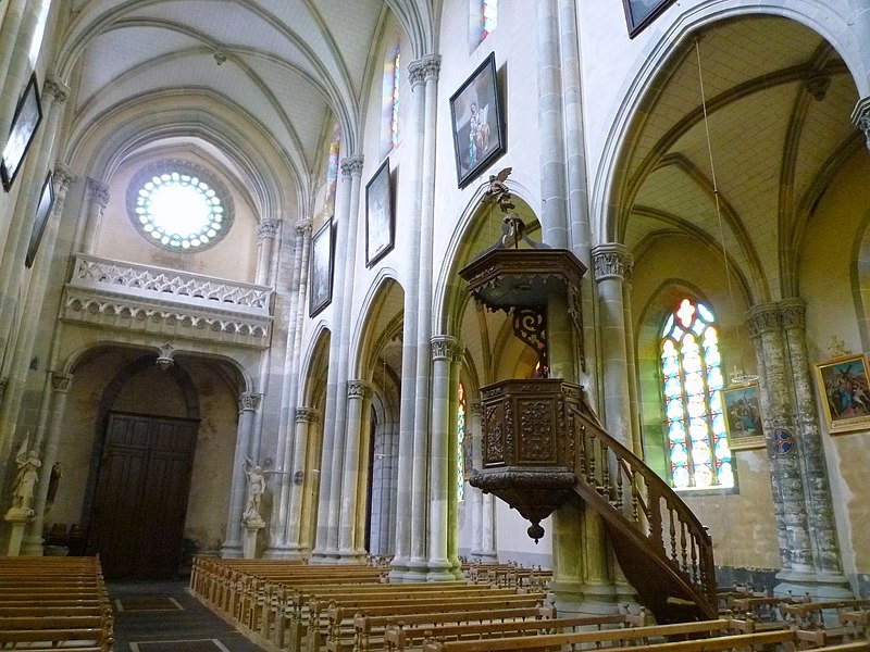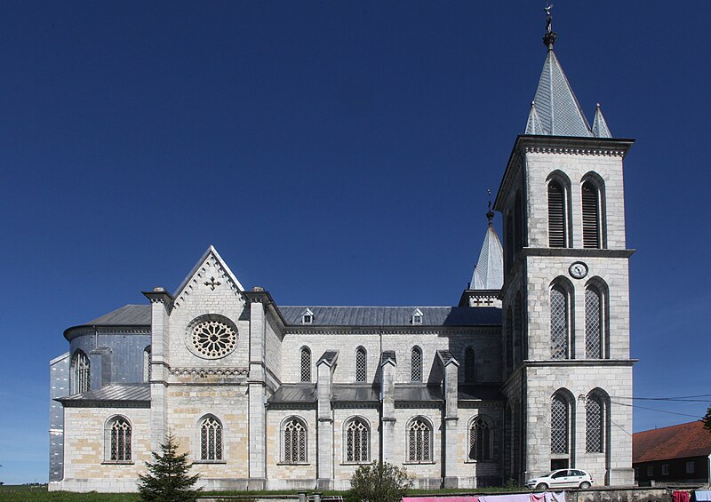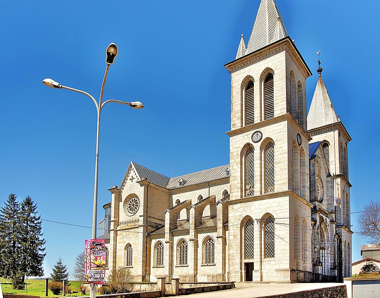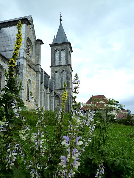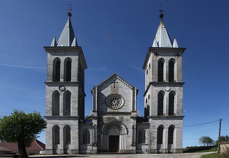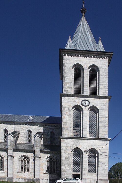 L'église Saint-Maurice de Boujailles, dédiée à Maurice d'Agaune, se situe à Boujailles dans le département du Doubs. L'ancienne église, jugée trop petite en 1836, a donné lieu à un nouveau projet prêt en 1843. La construction, conduite selon les plans de l'architecte Pompée, de Pontarlier, s'est déroulée de 1844 à 1849. L'édifice a été consacré le 7 juillet 1872 par le cardinal Matthieu. L'église est classée au titre des monuments historiques depuis le 10 mai 1995. Elle dépend de la paroisse de Levier et du diocèse de Besançon. Orientée sud‑ouest, elle est bâtie en pierre de taille et présente un style néo‑gothique avec un plan en croix latine. La façade est dominée par deux tours imposantes, semi‑détachées, réparties sur cinq niveaux et abritant les cloches ; chacune est surmontée d'une flèche polygonale et de quatre clochetons. La nef comprend cinq travées voûtées en ogive dont les nervures retombent sur des colonnettes à chapiteaux. Plusieurs éléments du mobilier sont inscrits aux Monuments historiques en tant qu'objets : deux retables en stuc et pierre de style néo‑gothique (XIXe), deux bénitiers en pierre (XVIIIe), l'ensemble des bancs des fidèles en sapin (XVIIIe), les sièges des célébrants en chêne (XIXe), la statue de l'Immaculée Conception en bois taillé (XIXe) et trois tableaux du XIXe représentant l'Annonciation, la Vierge au pied de la Croix et saint François‑Xavier prêchant, inscrits le 31 août 1979. Sont inscrits le 6 mars 1980 une statuette de la Vierge à l'Enfant en bois sculpté (XVIIIe) et deux tableaux du XVIIIe représentant l'institution du scapulaire et l'institution du rosaire. Parmi les autres pièces remarquables figurent trois cloches en bronze datées de 1843, 1807 et 1862, ainsi que le maître‑autel de 1872, réalisé dans un style néo‑flamboyant et portant la dédicace de la consécration par le cardinal Matthieu.