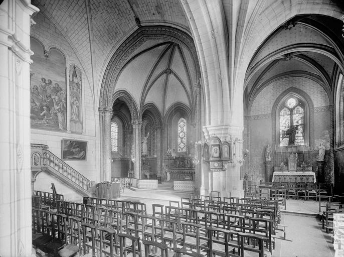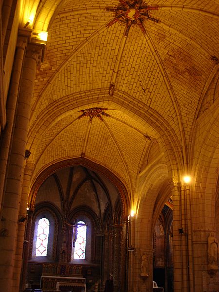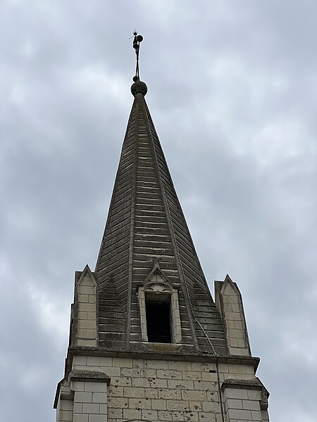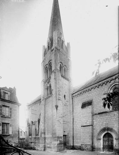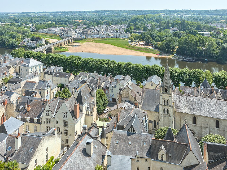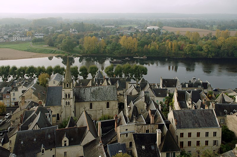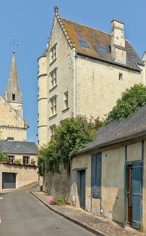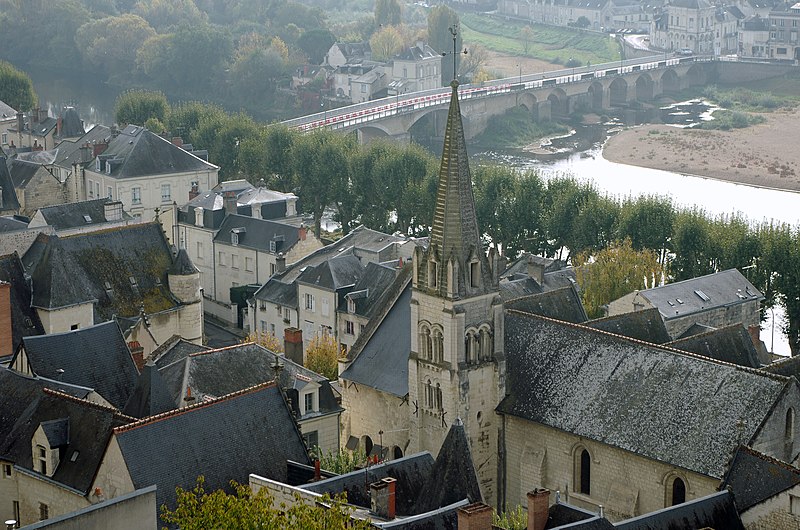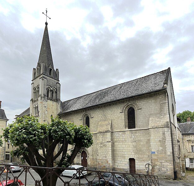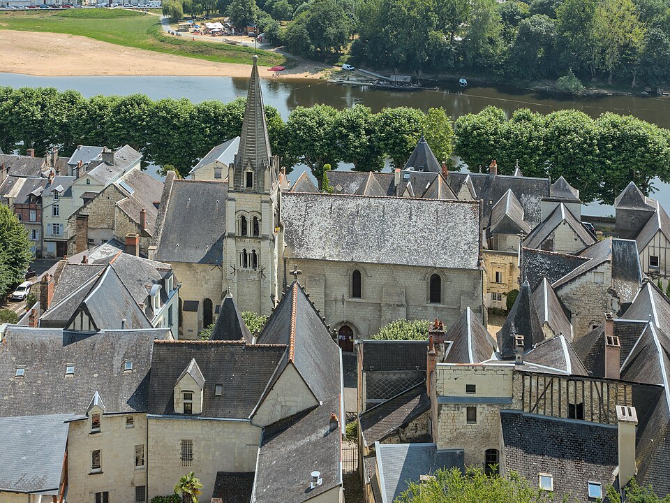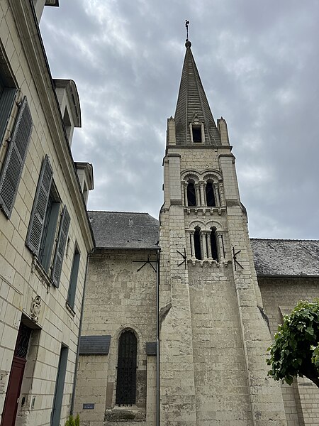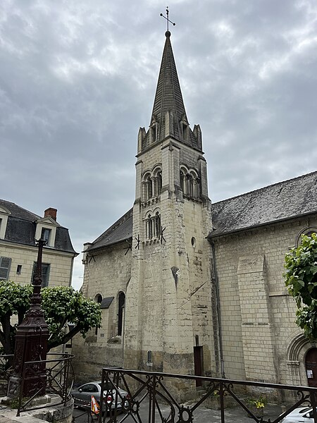 L'église paroissiale Saint-Maurice de Chinon, affectée au culte catholique, se situe rue Haute-Saint-Maurice, en contrebas de cette voie et du château de Chinon, dans la partie occidentale de la vieille ville. Cette rue constituait au Moyen Âge l'axe est-ouest principal de la cité, parallèle à la Vienne. L'édifice est inscrit au titre des monuments historiques le 22 octobre 1913. Une église existait déjà au Xe siècle, mentionnée dans la charte de l'abbaye de Saumur ; elle a été reconstruite au XIIe siècle sous Henri II Plantagenêt. L'édifice a été prolongé à l'est au XIIIe siècle ; une chapelle latérale nord a été ajoutée à la fin du XIIe siècle et une chapelle méridionale a été construite au XVe siècle. Un bas-côté méridional, parfois appelé basse nef, a été ajouté en 1543 ; une inscription au‑dessus de la tribune du bas‑côté porte la mention "PAPE PAUL ET ROI FRANÇOIS REGNANS, FUMES PARFAICTE DES DENIERS DE CEANS 1543". Des chapiteaux des portes nord et ouest ont été restaurés au XIXe siècle. La nef conserve, dans son mur septentrional, quelques vestiges de l'édifice du Xe siècle ; elle se compose de trois travées de plan carré et présente des voûtes très bombées, caractéristiques du gothique de l'ouest, en contraste avec le parti plus complexe du bas‑côté méridional. Le clocher, placé au nord‑est de la nef et remontant au XIIe siècle, est épaulé par de puissants contreforts ; chacune de ses faces est éclairée par deux étages de baies géminées, sauf à l'ouest où ces ouvertures sont murées. La flèche en pierre du clocher date du XVe siècle. Les vitraux d'origine ont été détruits par des bombardements allemands visant le pont sur la Vienne le 29 août 1944 ; ils ont été remplacés par des vitrages modernes dessinés par Théo Hanssen et réalisés par un atelier d'Orléans. L'église abrite une statue de Jeanne d'Arc due à Jules Déchin en 1900, qui représente une jeune femme modeste plutôt que l'image d'une guerrière flamboyante. Aujourd'hui, Saint‑Maurice est, avec l'église Saint‑Étienne, l'une des églises paroissiales de Chinon. Pour compléter ces informations, on peut consulter des notices et documents dans la base Mérimée, sur le site Clochers de France et sur Wikimedia Commons, ainsi que les ouvrages de Claude Andrault‑Schmitt, Jean‑Mary Couderc, Jean‑Luc Flohic et Robert Ranjard.
