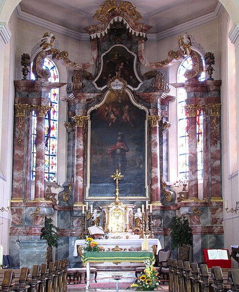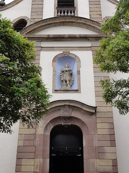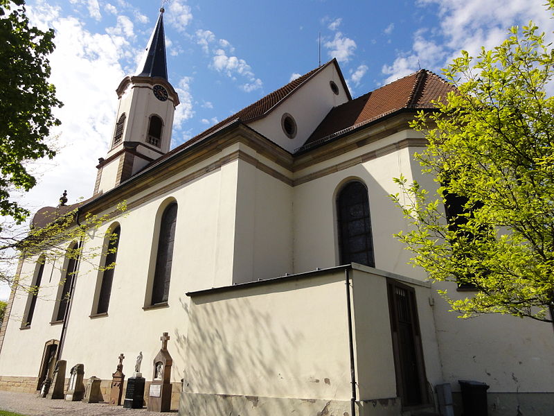 L'église catholique Saint-Maurice est située place de l'Église à Fegersheim, en périphérie de Strasbourg, dans le Bas-Rhin. Sa reconstruction a été ordonnée par l'évêque de Strasbourg en 1763 ; Jean Michel Ruescher a dressé un devis et des plans, puis Christiani a établi un nouveau devis en 1767 ; l'édifice porte la date 1768 et a été achevé en 1770. L'édifice fait l'objet d'une inscription au titre des monuments historiques depuis 1994. De style baroque, la façade symétrique présente un clocher central et, au-dessus du portail, une niche accueillant une statue en grès représentant saint Maurice en officier romain. Des marques de tâcherons sont visibles sur l'édifice et les vitraux réalisés par Ott datent des XIXe et XXe siècles. À l'intérieur, un groupe statuaire en bois polychrome du XVIe siècle représente le Christ et saint Jean ; bien que rattaché à un thème iconographique apparu au début du XVe siècle, sa composition est d'inspiration plus tardive et montre saint Jean endormi aux pieds d'un Christ en majesté, image allégorique de l'âme reposant entre les mains divines. Le retable de la Sainte-Croix, daté de la fin du XVIIe siècle et probablement d'origine suisse, présente dans sa niche centrale saint François d'Assise soutenant le Christ et jouit également du statut de monument historique. Le maître-autel, en bois doré de style rococo tardif portant la date de 1780, est classé. L'orgue de tribune de style Empire a été réalisé par le facteur Georges Wegman de Strasbourg en 1856 ; son buffet, décoré de sculptures baroques, évoque le Cantique des trois enfants.