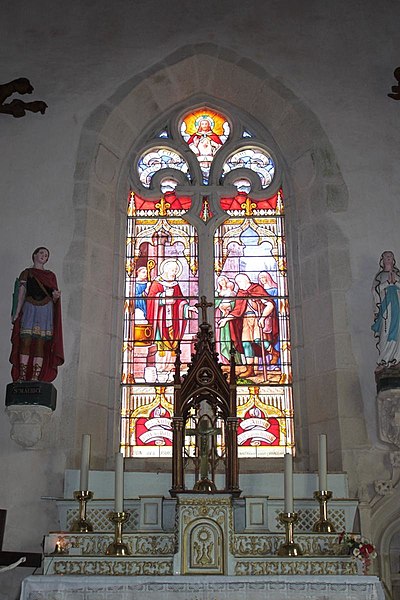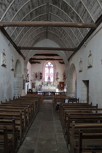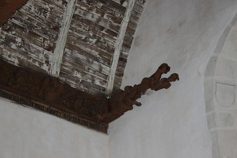 Le chœur est particulièrement remarquable pour ses sablières finement sculptées : au nord figurent des personnages variés — anges, coqs, masques et animaux fantastiques — tandis qu’au sud se lisent des groupes de personnages illustrant notamment des scènes de la Passion et le fabliau du Renard prêchant aux poules. Les tirants sont également richement travaillés ; dans plusieurs endroits, les motifs se détachent en relief prononcé. La charpente, travaillée « comme des dentelles », est considérée comme rare ; elle est attribuée aux frères Nivet et présente des poutres et sablières ornées de scènes champêtres et de la Passion. Les extrémités des éléments sculptés prennent la forme de gargouilles en enchaînement de dragons imbriqués, figurations que le texte explicatif aux visiteurs présente comme une allégorie du pouvoir politique et économique.