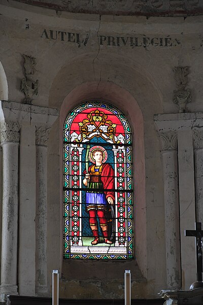 À l'extérieur, les bras du transept sont à pans et limités par des contreforts‑colonnes, tandis qu'à l'intérieur ils se présentent en hémicycle. Le clocher, transformé en tour de défense au XVIe siècle, est aveugle, massif et de plan carré, évoquant davantage un donjon qu'un clocher traditionnel.