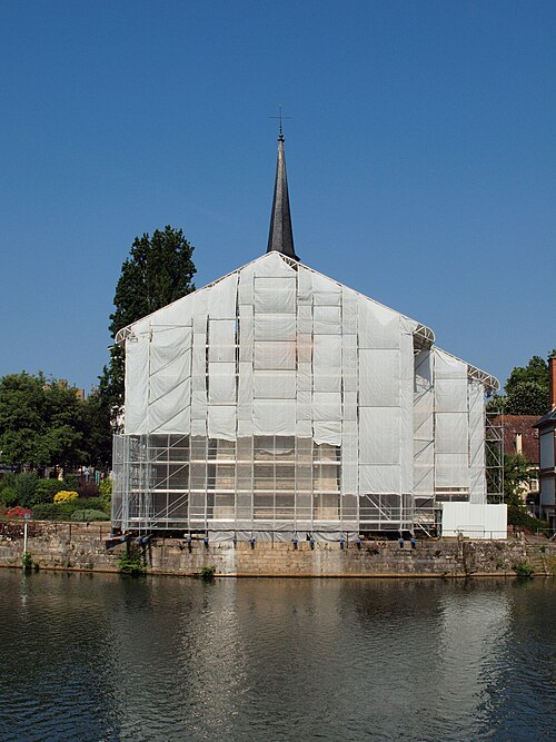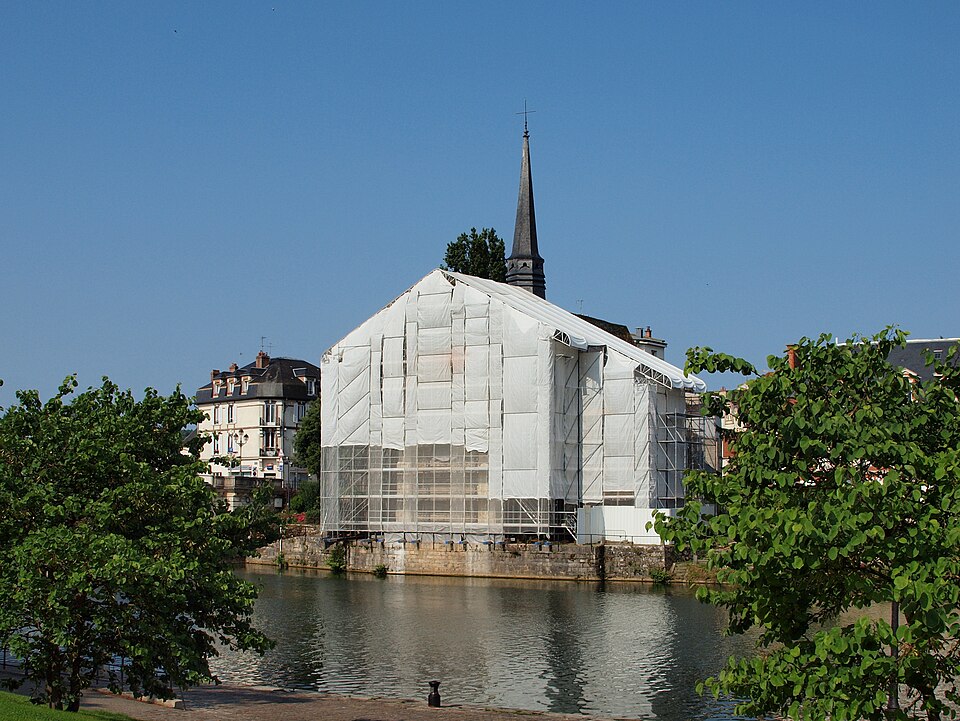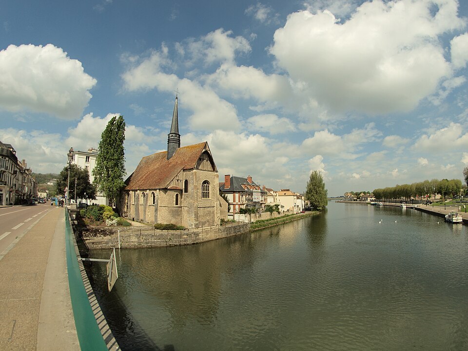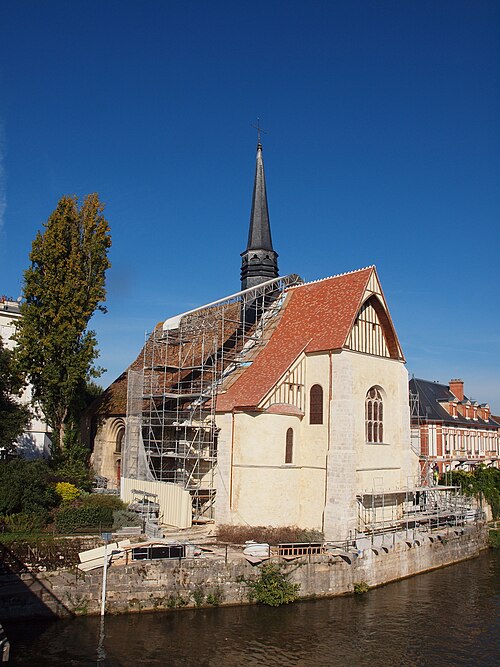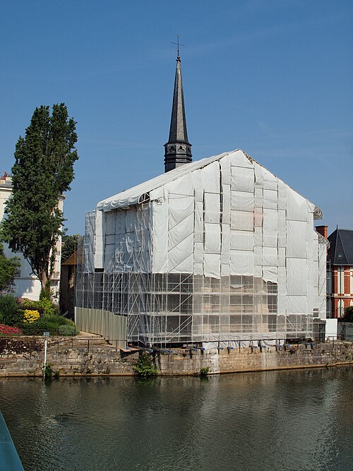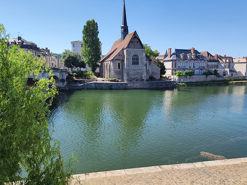 L'église Saint-Maurice est une église catholique située à Sens, dans l'Yonne, rue de l'Île d'Yonne, dépendant de l'archidiocèse de Sens-Auxerre. Elle se trouve au bord de l'Yonne, de l'autre côté du pont de l'Yonne. L'édifice date de la seconde moitié du XIIe siècle et a été remanié au XVIe siècle, notamment pour la façade occidentale et l'abside. Elle était autrefois la paroisse des pêcheurs et des mariniers, d'où partaient les coches d'eau ainsi que des convois de bois et de tonneaux de vin vers Paris ou Auxerre. Classée au titre des monuments historiques en 1915, l'église a vu ses vitraux détruits par les bombardements du 15 juin 1940 puis remplacés dans les années 1950 par des verrières figuratives sur fond bleu azur. Le maître-autel, provenant d'une chapelle de la cathédrale de Sens, est d'époque Renaissance et présente un haut retable de pierre rythmé de pilastres et de niches, avec des décors de villes bibliques et un bas-relief sur le devant de l'autel. Une statue équestre Renaissance polychrome orne le haut du retable : saint Maurice en armure, à droite, armé d'une lance et monté sur un cheval blanc caparaçonné, et, de l'autre côté, saint André avec sa croix. La nef principale est flanquée de bas-côtés; la nef de gauche se termine par une absidiole abritant la chapelle du Saint-Sacrement, éclairée par une baie dont les vitraux modernes représentent saint Fort, dont une relique est vénérée dans l'église. La nef de droite se termine par une absidiole consacrée à la Vierge, avec un vitrail au-dessus de l'autel et une Vierge à l'Enfant en pierre grise, dans le style champenois du XVIIe siècle. La sacristie, située à gauche, conserve des reliques et des statues de bois du XVIe siècle représentant saint Vincent, saint Roch et saint Fiacre. L'église ne possède pas de transept. Le chevet plat présente des éléments de colombage donnant sur la rivière et est surmonté d'une petite flèche d'ardoises. Le portail est décoré d'un tétragramme et une statue équestre de saint Maurice se remarque également sur la façade. On accède à l'édifice par trois issues : le grand portail occidental, généralement fermé, duquel des marches descendent dans la nef, un petit portail au sud faisant face à l'escalier menant au pont, et une petite porte au nord. L'église n'était ouverte que quelques jours par an, mais des messes y sont désormais célébrées chaque samedi à 18h30.