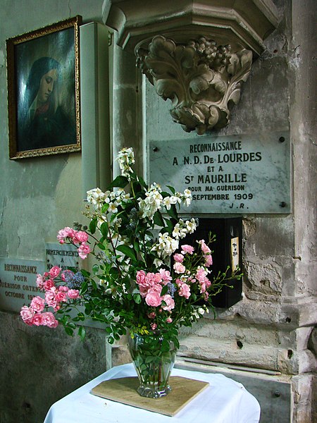 L'église Saint-Maurille est une église catholique située à Vouziers, dans le département des Ardennes. Sa structure principale est gothique et date des XIVe et XVe siècles. Le portail Renaissance, construit entre 1517 et 1548 par l'architecte champenois Jehan Laurens, forme une façade composée de trois porches dont le tympan central illustre l'Annonciation, celui de droite la Résurrection et celui de gauche le mal. Les tympans et claveaux sont sculptés et comportent sept pierres en pendant contenant des statuettes des apôtres, ainsi que des frises de style Seconde Renaissance et des gargouilles, dont une représentant un lion tenant les armoiries des seigneurs de Vouziers. L'achèvement de cette façade est probablement situé vers 1565, comme l'indique l'emblème du premier Gonzague, duc de Rethel, figurant un soleil rayonnant sous une voussure. À l'origine isolé, le portail a été rattaché ultérieurement à l'église ogivale : une porte latérale, d'abord utilisée comme entrée du cimetière, a été intégrée entre 1764 et 1768, puis le portail a été relié par des murs latéraux, un plafond et une couverture d'ardoises, au-dessus desquels s'élève une tour carrée à toit arrondi. À l'intérieur, on trouve une fontaine liturgique, une dalle funéraire remarquable de Baudoin de Vandy datée de 1275 et provenant de l'abbaye de Landèves, une statue en bois de saint Maurille, un chœur soigné et des chapiteaux ornés d'animaux, de feuillages et d'évocations des corporations locales. Des vitraux contemporains signés Charles Marq ont été réalisés en 1970 par les ateliers Simon-Marq de Reims. Les anciennes portes d'entrée gothiques sont conservées dans les chapelles latérales. Les terres du bourg de Vouziers appartenaient à l'abbaye de Saint-Thierry près de Reims, et la paroisse est mentionnée lors de la conférence ecclésiastique de Reims de 1148, présidée par le pape Eugène III. Sous l'Ancien Régime, les décimateurs de l'église étaient pour trois quarts les religieux de Saint-Thierry et pour un quart les messieurs du Chapitre et la Charité de Reims. L'édifice a été endommagé au cours des deux guerres mondiales et a fait l'objet de réparations ; le clocher et le portail ont été restaurés en 1987-1988 et le parvis en 1989. L'église Saint-Maurille est classée au titre des monuments historiques en 1913. Elle se situe à l'extrémité de la rue Chanzy et de la rue de l'Aisne, à proximité du pont traversant l'Aisne.