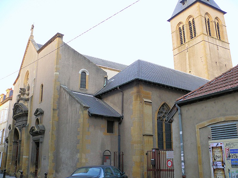 L'église abrite les seuls vitraux connus dessinés par Jean Cocteau, avec ceux de la chapelle Notre‑Dame de Jérusalem à Fréjus et de la chapelle Saint‑Blaise‑des‑Simples à Milly‑la‑Forêt ; les cartons datent de 1962 et les vitraux ont été posés à la fin des années 1960. L'œuvre de Metz, largement réalisée après la mort de Cocteau le 11 octobre 1963, a été menée à son terme par Édouard Dermit et Jean Dedieu, en collaboration avec Raymond Moretti. Les vitraux ont été exécutés par l'atelier Émile et Michel Brière de Levallois‑Perret, que Cocteau demanda de cosigner. La création comprend quatorze baies totalisant vingt‑quatre fenêtres et se développe autour de trois axes principaux.