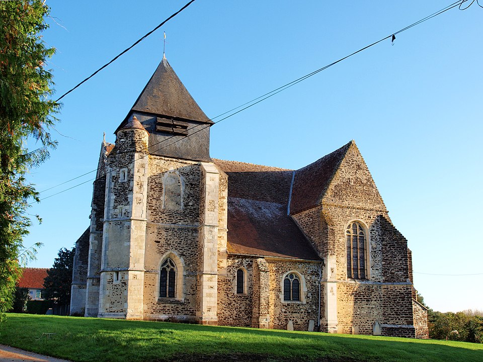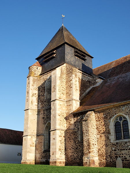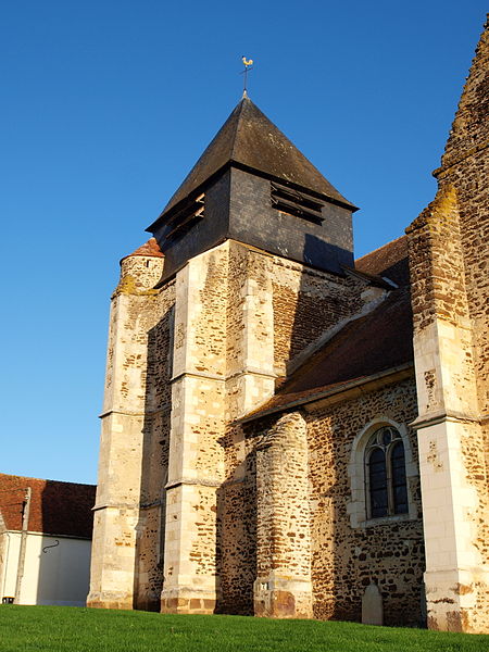 L'église Saint‑Médard de Charbuy (Yonne) est un édifice d'allure massive, composé d'une nef à quatre travées dont la dernière forme la croisée du transept et se termine par un chevet plat, caractéristique de la région. La nef est doublée d'un unique bas‑côté au sud, dont la travée occidentale porte le clocher, tandis qu'au nord se loge une petite chapelle étroite entre deux contreforts. Le chœur, la croisée et le transept sont datés du XVe siècle ; la nef et la façade occidentale appartiennent au XVIe siècle ; une chapelle et la sacristie ont été aménagées au XVIIe siècle. Malgré cette succession de campagnes de construction et la diversité des styles, l'ensemble conserve une relative homogénéité à l'extérieur comme à l'intérieur. La façade ouest s'orne de deux portails sculptés, pourvus de gables et de pinacles aux décors de choux frisés et d'éléments végétaux. L'édifice bénéficie d'une protection au titre des monuments historiques en 1923 et 1932.