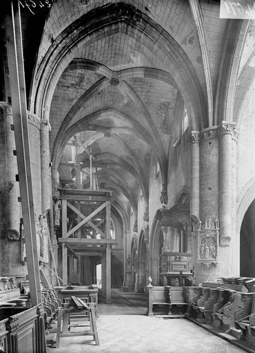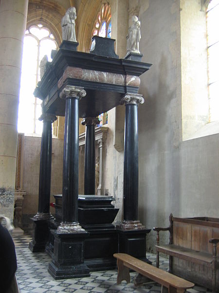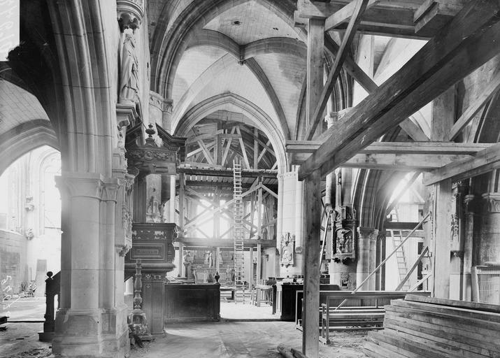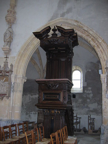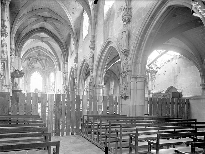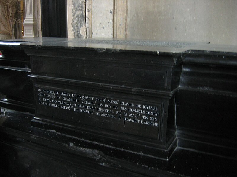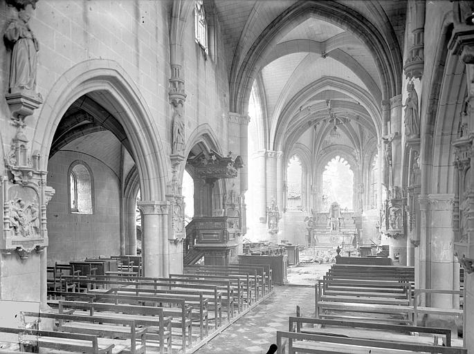 L'intérieur offre une nef de cinq travées longue de 22 mètres, séparée des bas-côtés par de gros piliers ronds dont les chapiteaux sont sculptés de feuillage. Les nervures des voûtes retombent sur des dais ajourés qui abritent des statues posées sur des consoles ; le transept mesure vingt mètres de largeur et le chœur, à trois pans, s'éclaire de trois grandes fenêtres. Les stalles, datées du XVIIe siècle, proviennent de l'abbaye de Belval, et le tambour de la porte principale a également été apporté de cette abbaye à la suite des démantèlements de la Révolution. L'un des éléments intérieurs les plus remarquables est le mausolée en marbre noir de Claude de Joyeuse et de son épouse : Claude de Joyeuse, décédé en 1629, fut capitaine au sein des Ordonnances du Roi, conseiller des rois Henri IV et Louis XIII, gouverneur de Mouzon et de Beaumont-en-Argonne et avait abjuré sa religion protestante. Le tombeau repose sous un dais soutenu par quatre colonnes ioniques ; des statues, mutilées pendant la Révolution, occupent les angles de l'entablement et représentent la fidélité, la foi, la tempérance et le courage. Les statues de marbre blanc figurant Claude de Joyeuse et son épouse furent brisées lors des événements révolutionnaires. Une inscription figure sur le mausolée : "Tout ce que la terre nourrit - Finalement elle le pourrit."