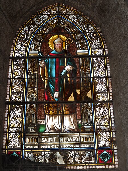 L'église Saint‑Médard est une église catholique située à Saint‑Médard‑la‑Rochette, dans le département de la Creuse. Son patronage appartenait à l'évêque de Limoges. L'édifice, inscrit au titre des monuments historiques en 1969, comprend une nef de deux travées terminée par une abside semi‑circulaire couverte d'une voûte en cul‑de‑four (XIe‑XIIe siècle). Une chapelle nord a été ajoutée au XVIe siècle, sur la deuxième travée, et des chapiteaux sculptés ornent l'intérieur. L'église a été fortifiée aux XIVe‑XVe siècles ; l'élément principal de cette défense est une tour montée sur l'abside qui conserve une meurtrière cruciforme. Le portail nord, en tracé brisé, présente des boudins, des colonnettes et des chapiteaux formant une frise ; chaque jambage est décoré d'un visage humain. Une sculpture archaïsante représentant un homme barbu a été remployée à gauche de l'archivolte du portail.