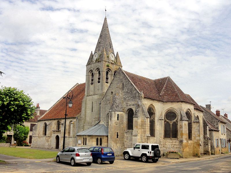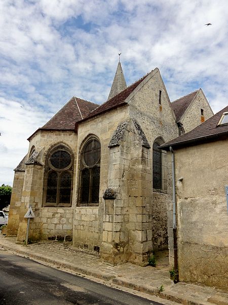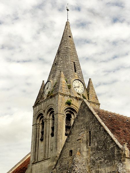 Située au centre du village, l'église occupe un emplacement marqué par la rue de la Croix Dupille au chevet, la place de la Mairie au sud et un petit parvis occidental bordé par le presbytère et la bibliothèque municipale ; un passage étroit, dit « du Choléra », longe l'élévation septentrionale. Le clocher, en pierre de taille, présente deux niveaux soutenus par de faibles contreforts et des baies abat-son en double archivolte ; la pyramide et ses décorations en écaille sont, selon Dominique Vermand, contemporaines de l'étage de beffroi. Les parties orientales forment un ensemble homogène évoquant un chœur-halle, mais l'irrégularité du plan est perceptible : la base du clocher, engagée entre le bas-côté sud et la première travée du chœur, raccourcit la chapelle méridionale au profit de la chapelle nord plus vaste. Les matériaux diffèrent selon les secteurs : pierre de taille pour le chœur et le clocher, moellons irréguliers pour la nef et les bas-côtés, avec des pierres de taille employées autour des ouvertures et aux contreforts.
