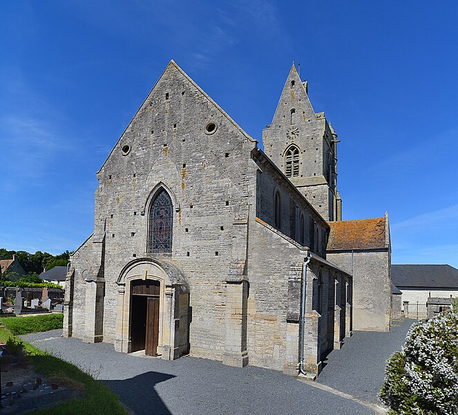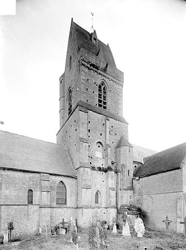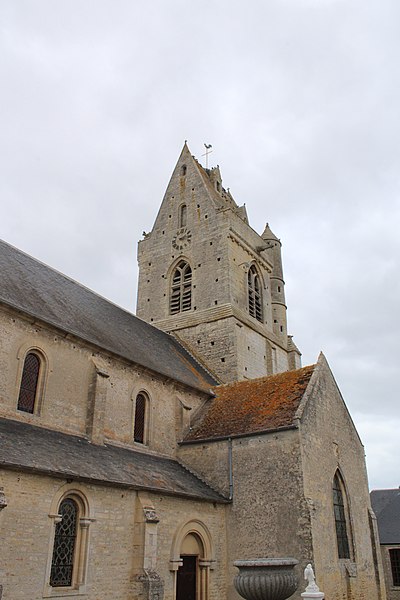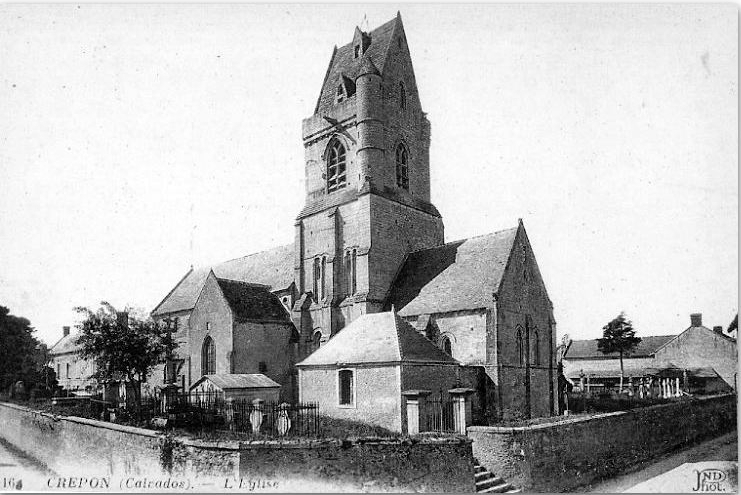 L'église paroissiale Saint-Médard-et-Saint-Gildard de Crépon (Calvados) est un édifice inscrit partiellement au titre des monuments historiques en 1927. Elle a été édifiée au quatrième quart du XIIe siècle ; la façade ouest et les chapelles latérales datent du XIIIe siècle. Le chœur conserve des éléments des XIIe et XIVe siècles, tandis que la tour-clocher témoigne d'interventions aux XIIe, XIVe et XVe siècles. À la fin du XIVe ou au début du XVe siècle, la tour-clocher a été transformée en une sorte de donjon : l'élévation ancienne a été renforcée, une grande salle dallée aménagée au deuxième niveau et un étage ajouté. Une tourelle d'escalier en vis, coiffée en poivrière et adossée à l'angle sud-est, relie le troisième et le quatrième niveaux et dessert l'une des coursières de guet qui longent extérieurement les faces nord et sud du dernier niveau. Ces coursières permettaient, pendant la guerre de Cent Ans, de surveiller aussi bien le littoral que la plaine de Caen. À la même période ou peu après, la fenêtre de la façade ouest a été réduite en raison de l'établissement d'un plafond dans la nef, et les deuxième et troisième travées du chœur ont été remaniées : reconstruction des voûtes et du pignon oriental, transformation des contreforts et des baies latérales. Ces travaux ont probablement été financés par l'abbaye de Cormeilles, patronne de la paroisse, comme l'atteste la crosse et la mitre d'abbé sculptées sur une clé de voûte du chœur. Au XVIIIe siècle, la sacristie, ses annexes et le porche de la façade ont été ajoutés ; la clôture et la croix de cimetière ont également été reconstruites. Un devis de 1829 prévoit la restauration de la nef et l'exhaussement de la nef centrale pour établir un éclairage direct ; les travaux ont été exécutés par l'entrepreneur Philippe Hélie après adjudication en 1830, probablement accompagnés du retaillage des piles des grandes arcades et de l'élévation des chapelles. En 1867, l'architecte Alphonse Delauney a fait reconstruire les quatre piles ouest, et à cette époque une voûte en berceau brisé a été mise en place sur la nef. Un projet de restauration établi en 1897 par l'architecte Tranchefort a été adjugé en 1898 à l'entrepreneur Octave Le Mullois ; la réception des travaux en 1900 a marqué la réfection totale des baies et des contreforts de la nef et des bas-côtés ainsi que le voûtement d'ogives de ces parties et des chapelles. En 1921, le monument aux morts, composé à partir d'une colonne récupérée, a été aménagé par le sculpteur Béchet, domicilié à Caen. L'église conserve un décor exceptionnel dont plusieurs éléments sont classés monuments historiques : dans la chapelle nord, un retable de pierre du XVIIe siècle ; dans l'avant-chœur et le chœur, un lambris de chêne sculpté, des stalles, un autel double et un lutrin du XVIIIe siècle attribués à l'architecte Jacques Moussard et au sculpteur Jean-Louis Mangin. Une toile monumentale, L'Élévation de la Croix, copie anonyme du XVIIIe siècle d'un tableau de Charles Le Brun, couvre une grande partie du chevet. La sépulture des parents et de la sœur de l'archéologue Arcisse de Caumont est signalée par un panneau fixé sur le muret du cimetière côté sud. Parmi les éléments remarquables se trouvent les stalles, le maître-autel, le clocher et un cadran solaire.
