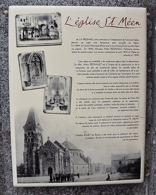 L'église Saint-Méen-et-Sainte-Croix se trouve à La Fresnais, en Ille-et-Vilaine, en Bretagne. Le projet de remplacement de l'ancienne église, jugée en mauvais état et dangereuse pour les paroissiens, est envisagé dès 1886 et la décision est prise par le conseil municipal en 1889. Les premiers plans du nouvel édifice sont établis la même année par l'architecte Arthur Regnault; la construction débute en 1893 au centre du bourg, à proximité de l'ancien bâtiment conservé pendant les travaux puis démoli. Le nouveau sanctuaire est béni le 14 décembre 1899 et les travaux s'achèvent en 1901. L'église est inscrite au titre des monuments historiques depuis le 14 septembre 2015. L'édifice comprend un monument aux morts et, à l'intérieur, un plafond en pitchpin, un orgue et une chaire.