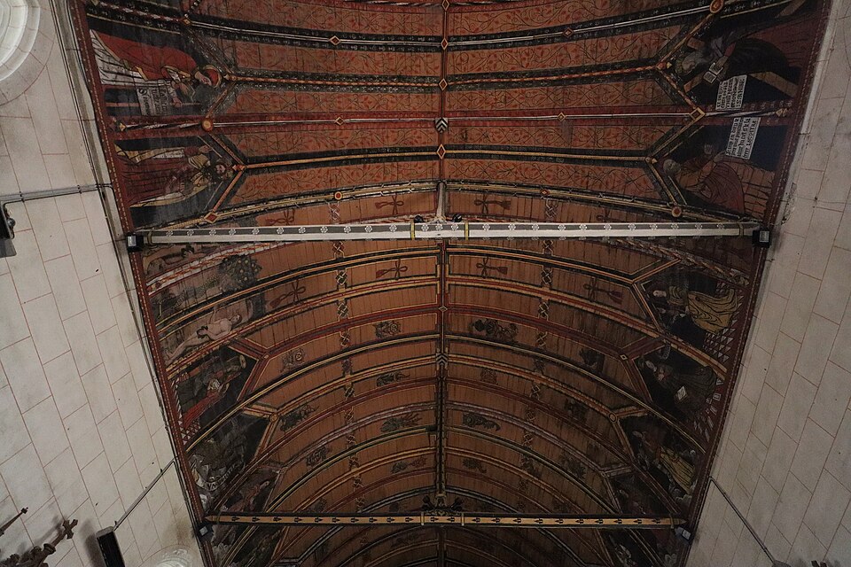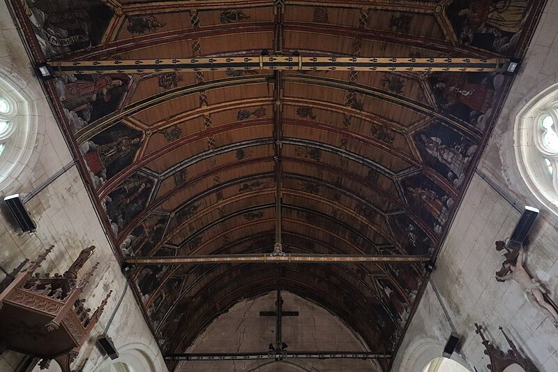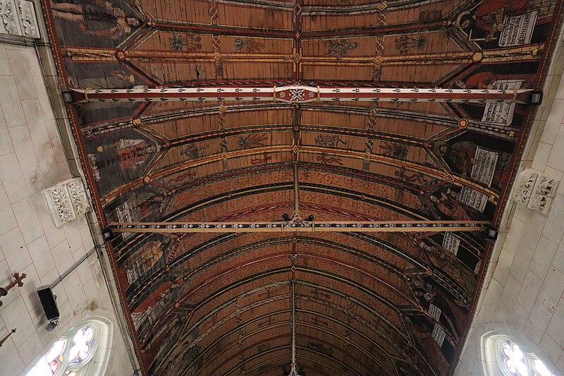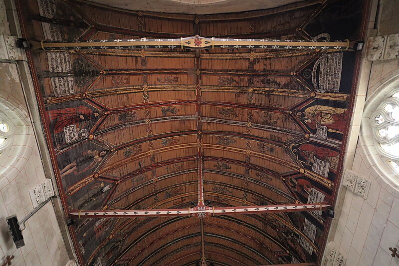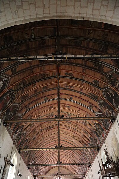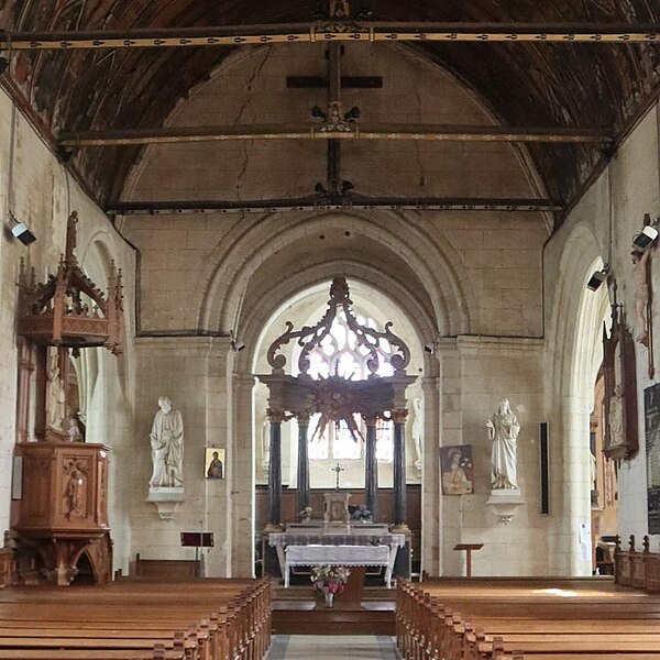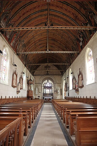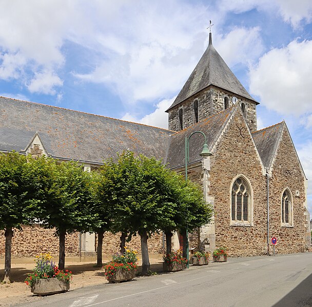 L'église Saint‑Mélaine, située à Miré dans le Maine‑et‑Loire, a été restaurée au XIXe siècle sous la direction de l'architecte René‑Eugène Dusouchay d'Angers. L'édifice est inscrit au titre des monuments historiques depuis 1984. Il se distingue par une spectaculaire voûte en carène de bateau renversée, élément architectural majeur mis en valeur par les travaux de restauration.