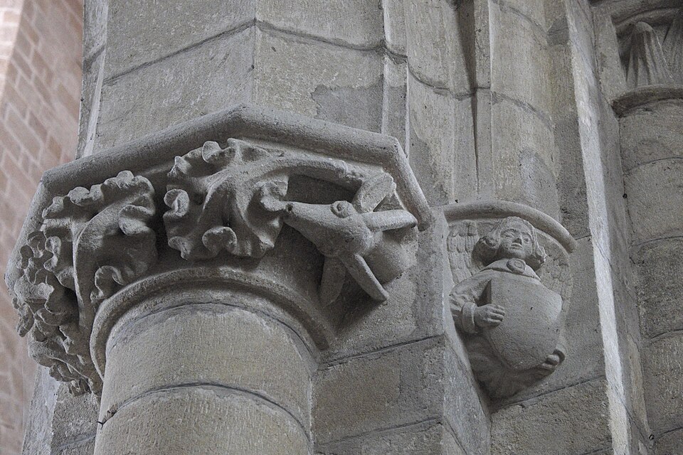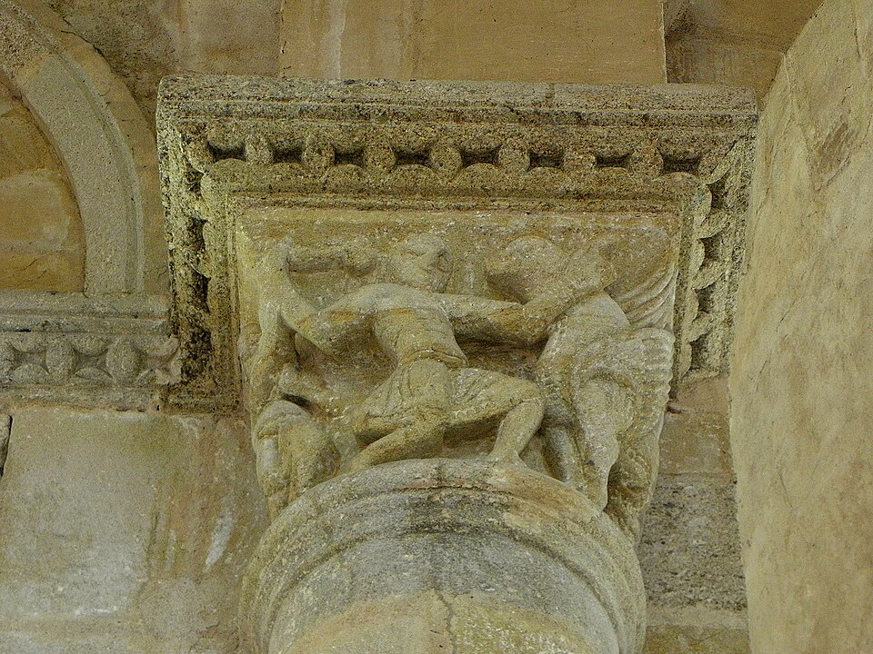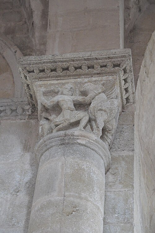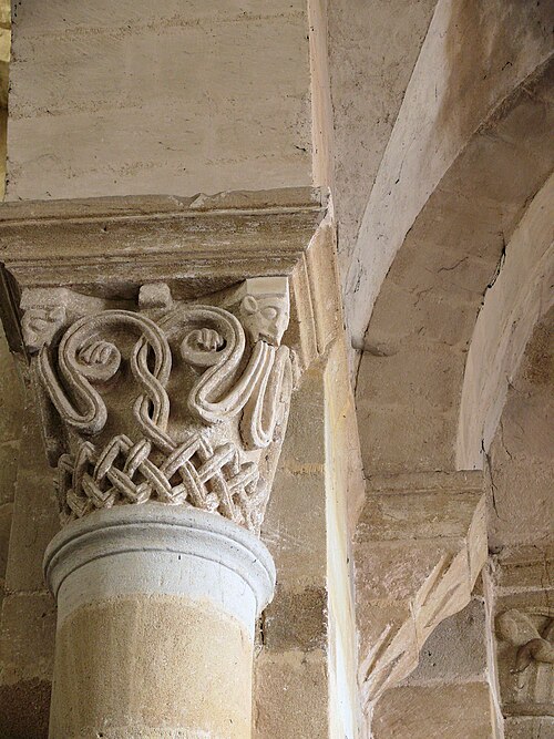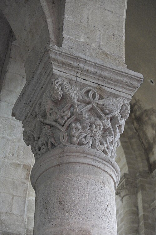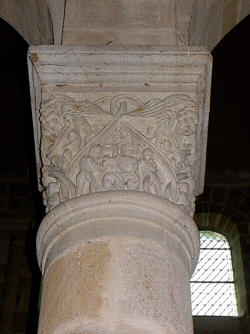 L’église Saint‑Menoux, située dans la commune éponyme de l’Allier en Auvergne‑Rhône‑Alpes, est une église romane du Bourbonnais classée au titre des monuments historiques sur la liste de 1840. Elle dépendait d’une abbaye bénédictine connue par une charte de l’an 1000 et dédiée aux saints locaux Menou et Blaise, rattachée à l’ancien diocèse de Bourges. Le narthex, la partie la plus ancienne, remonte aux Xe‑XIe siècles; les chapiteaux sculptés présentent des figures monstrueuses sur toutes les faces. Les parties orientales furent remaniées au deuxième quart du XIIe siècle dans un programme décoratif raffiné, probablement en relation avec les ateliers qui intervenaient à Souvigny. Le XIIIe siècle marque la construction du clocher, la reprise du transept (oculus et baies), la réalisation des portails nord, sud et ouest de la nef et le percement de diverses fenêtres. Des éléments de la nef et du clocher sont datés du XIVe siècle; le clocher était autrefois surmonté d’une flèche qui disparut par la suite. À la fin du XVe siècle, l’abbesse Madeleine d’Amboise fit moderniser le bas‑côté sud, la fenêtre de la chapelle d’axe, les piles et le voûtement de la nef, et perça des fenêtres gothiques dans les collatéraux. Dans le quatrième quart du XVIIe siècle, l’abbesse Marie‑Gabrielle du Boulay‑Favier transforma profondément les intérieurs en modifiant le chœur, en installant une sacristie dans le déambulatoire et l’absidiole sud, en ouvrant une nouvelle porte nord en 1683 et en badigeonnant l’église en blanc. À la fin du XVIIIe siècle l’édifice était fortement dégradé, les voûtes fragilisées, et la Révolution porta atteinte à son état ; le maire profana alors les tombeaux des abbesses et l’église, avant d’être emprisonné quelques mois plus tard. Après la Révolution, l’église devint paroissiale; en 1806 la flèche de pierre octogonale du clocher s’effondra. De nombreuses restaurations du milieu du XIXe siècle déplacèrent ou détruisirent l’ancien mobilier pour tenter de rendre un état d’origine illusoire, mais elles sauvèrent les voûtes et les murs de l’effondrement. Le narthex fut transformé en musée lapidaire; la crypte, qui servait de cimetière aux religieuses, a été comblée de débris et sa voûte percée. L’église s’inscrit parmi les nombreuses églises romanes du pays de Souvigny et constitue un témoignage notable de l’art roman régional. Dans le chœur se trouve la débredinoire, sarcophage renfermant les reliques du saint et doté d’un trou destiné, selon la tradition, à faire passer la tête pour que l’on ne soit plus « bredin » (simple d’esprit en parler bourbonnais). Sous le porche et dans l’église sont visibles des plaques funéraires, notamment la stèle de la prieure Henriette de Lévy‑Charlus (morte en 1713 à Bourbon) et celle de Marie‑Gabrielle du Boulay‑Favier (morte en 1695), ainsi que des sarcophages mérovingiens avec fenestella.
