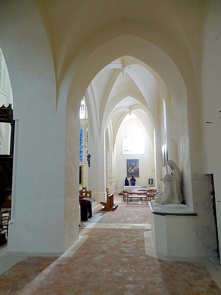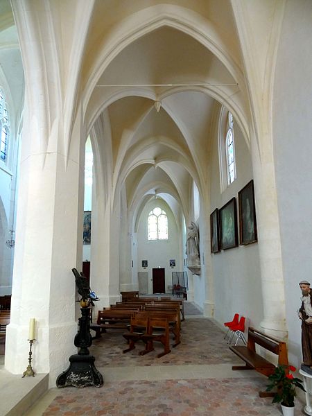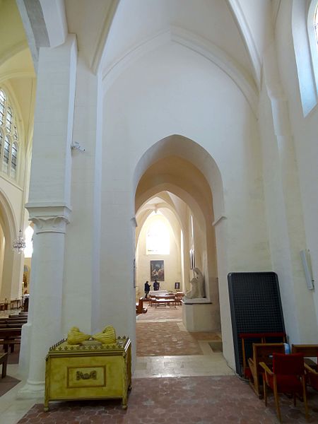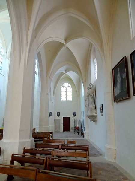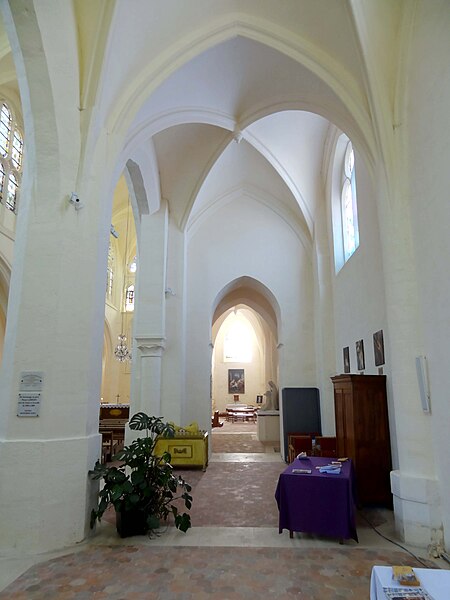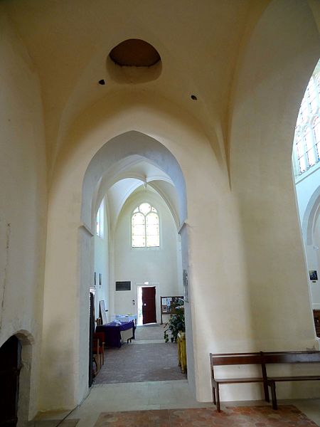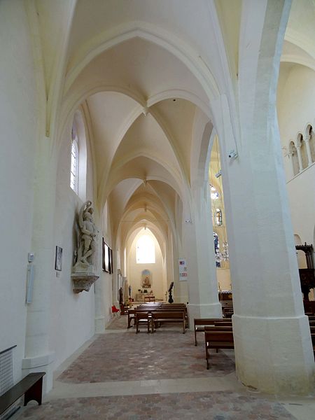 L'église Saint-Merry de Linas, dans l'Essonne, est attestée dès 884 par la translation des reliques de saint Merry depuis Paris et succède à une église dédiée à saint Vincent. Une présence ecclésiastique est signalée dès le Xe siècle et, de l'édifice roman du XIIe siècle, seule subsiste aujourd'hui la base du clocher. En 1207, l'évêque de Paris, Eudes de Sully, institue un collège de chanoines, et le chapitre devient seigneur d'une partie nord de la paroisse. À la fin du XIIIe siècle, le bâtiment, menacé de ruine, est largement remanié : le chœur gothique à chevet plat, la flèche de pierre du clocher et la partie inférieure des murs des bas-côtés datent de cette campagne. Au XVIe siècle, le chœur subit un effondrement partiel puis d'importantes transformations, avec le percement de grandes verrières latérales et du chevet, la modification des baies des bas‑côtés et la construction des piliers, voûtes et contreforts du chœur et des bas‑côtés. Au XIXe siècle l'édifice se dégrade à nouveau ; à partir de 1876 l'architecte diocésain F. Blondel démolit trois travées de la nef romane et les remplace par deux parties conçues « en harmonie » avec le chœur, travaux menés à moindre coût et jamais entièrement achevés. Le XXe siècle voit de nombreux travaux de restauration, mais l'église, fermée en 1997 pour restauration, reste actuellement close en prévision de nouveaux travaux. L'abbaye Saint-Merry, fondée selon les sources en 936 par Louis IV d'Outremer, a laissé la base du clocher et une partie du chœur, éléments protégés au titre des monuments historiques ; l'ensemble de l'église est classé depuis 1928. Le chapitre, qui a acquis la seigneurie par achats, a longtemps géré des revenus complexes et parfois contestés ; des procédures et arbitrages ont suivi les conflits autour des cens et des dîmes, et une autorisation papale a permis au chapitre de racheter des dîmes à des laïcs sous conditions. Située dans le centre de Linas, à l'angle des rues Saint-Merry et Paul‑Bert sur la rive gauche de la Salmouille, l'église conserve des vitraux du chevet du XIXe siècle représentant, de bas en haut, saint Merry avec saint Pierre et saint Vincent, au registre médian saint Paul entouré des évangélistes et de saint Thomas, et au sommet la crucifixion du Christ accompagnée de saint Pierre et saint Paul.