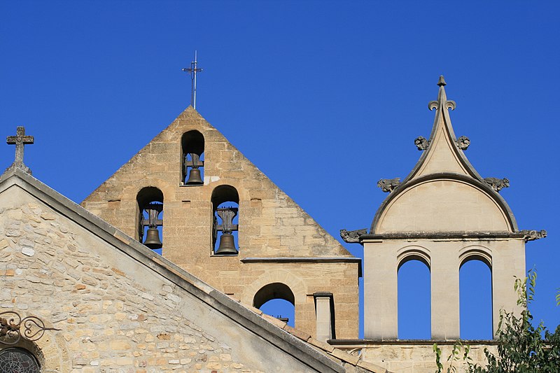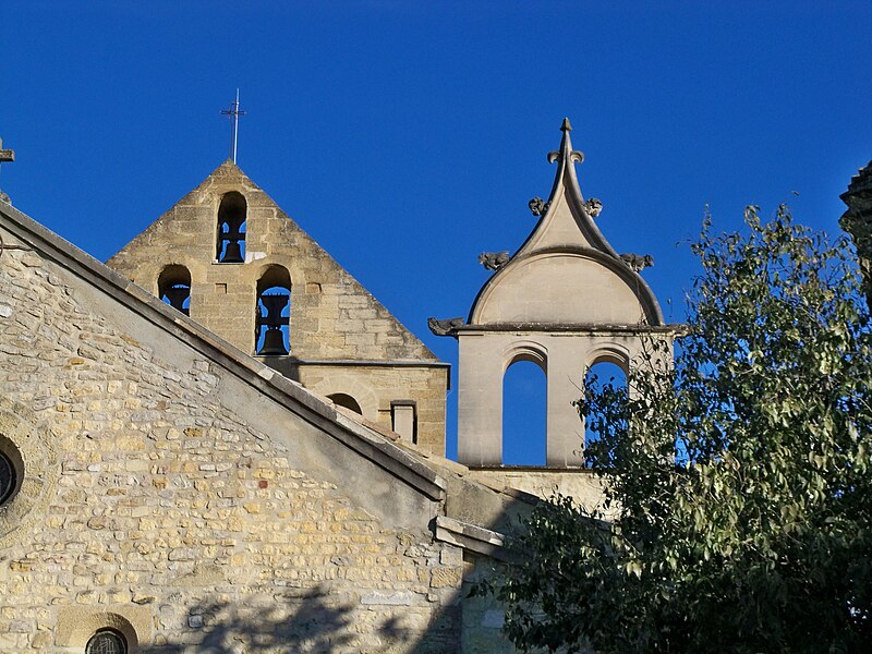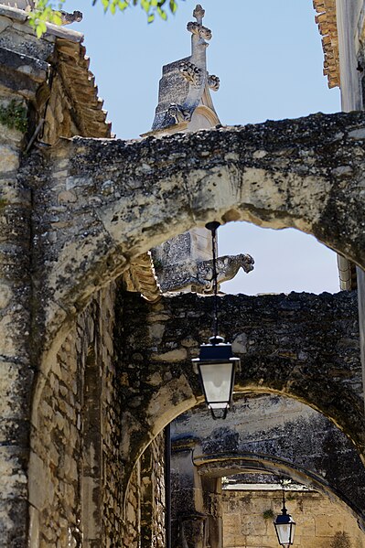 L'église Saint-Michel de Caderousse (Vaucluse) présente un ensemble romano-gothique, conservant un chœur primitif datable du XIIe siècle ou de la fin du XIe. La nouvelle église a été édifiée au XVe siècle : le clocher date du début du XVe siècle et la nef a été construite entre 1438 et 1446. Avant 1470, Antoine d'Ancezune fit édifier une chapelle seigneuriale composée de deux travées voûtées d'ogives à nervures multiples dessinant une grande étoile. Son fils Guillaume IV la fit démolir en 1517 pour en bâtir une plus vaste, achevée en 1527, qui conserve des voûtes en étoile et des motifs de la Renaissance. L'édifice comprend une nef de quatre travées et une abside semi‑circulaire romane formée de cinq arcatures en plein cintre retombant sur des colonnettes. Extérieurement, l'abside constitue un des rares témoins du gothique flamboyant provençal. Le clocher à arcades, reconstruit entre 1509 et 1511 au‑dessus de l'arc du chœur, s'élève sur trois étages et comporte six baies ; il est classé au titre des monuments historiques depuis 1945. L'église elle‑même est classée depuis 1946, et la chapelle d'Ancezune depuis 1905. À l'intérieur, la chapelle latérale placée sous le vocable de saint Claude, dite aussi chapelle de Moussu ou chapelle de Monsieur, remonte au XVe siècle et se distingue par sa richesse architecturale et ornementale. Le chœur de la chapelle d'Ancezune est éclairé par quatre fenêtres ornées de blasons et couvert de voûtes en étoile composées de liernes et de tiercerons ; la tribune et la balustrade, réservées aux seigneurs, témoignent de son caractère privé. Un petit oratoire à voûte étoilée conserve quatre clefs pendantes portant les écus d'Ancezune ; des armoiries y furent replacées en 1945. Plusieurs chapelles latérales furent ajoutées aux XVe et XVIe siècles — celles de Chassenatico et Maréchal, la chapelle du curé André Fayssat, celles du prieur et des syndics, puis une seconde chapelle des syndics — portant l'ensemble à six chapelles latérales vers 1527. Ces adjonctions ont entraîné l'ouverture de murs latéraux et la construction d'arcs et d'arc‑boutants, certains s'appuyant sur des propriétés voisines comme le château d'Ancezune. La toiture de la chapelle d'Ancezune est dallée et bordée d'une balustrade flamboyante ; un petit clocheton sans cloches la couronne et des gargouilles sculptées assurent l'évacuation des eaux. L'église a subi de nombreuses modifications intérieures au fil des siècles, dont le déplacement de la tribune et la reconstruction du clocher. Une rénovation importante conduite sous la mandature de Pierre Cuer a eu lieu en 1985 et l'édifice a été béni par l'archevêque d'Avignon le 15 décembre 1985 ; lors de ces travaux des ossements ont été mis au jour et regroupés dans le cimetière communal. Des transferts d'ossements et de plaques mortuaires avaient déjà été opérés entre 1862 et 1863 vers le second cimetière, et d'autres restes furent retrouvés lors des rénovations de 1984‑1985. Le mobilier liturgique ancien, dont plusieurs retables mentionnés dans les archives, a en grande partie disparu. L'église porte encore des traces de son histoire : marques de tâcherons, relevés des hauteurs d'inondations sur les piliers et éléments sculptés partiellement détruits lors d'événements passés. De nombreuses sépultures familiales y furent installées, notamment celles des d'Ancezune, des Pontavès et des Gramont‑Caderousse. La sacristie actuelle, décidée en 1825 et construite à partir de 1826, se situe derrière les arcatures, et la chapelle de la Vierge, édifiée ensuite, possède une croisée d'ogives et avait un autel en marbre. Par ses éléments romans et gothiques et par la succession de chapelles seigneuriales, Saint‑Michel offre un témoignage riche et complexe de l'architecture religieuse locale.