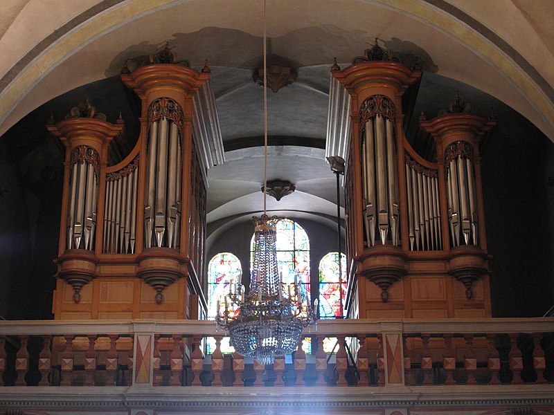 Un nouvel orgue réalisé par le facteur grenoblois Michel Giroud fut inauguré par la musicienne Marie-Claire Alain le 12 juillet 1992 ; son buffet a été divisé en deux pour laisser visible le grand vitrail : la partie droite abrite les pédales, la partie gauche les sommiers de Grand-Orgue et de Récit. Le clocher abrite quatre cloches : la plus grande, d'un poids de 1 500 kg, a été fondue en 1845 par les frères Paccard et sonne un Ré, étant la refonte d'une cloche de 1761 déjà refondue en 1815. Les trois autres cloches, fondues en 1822 par Vallier & Gautier de Briançon, pèsent respectivement 1 050, 700 et 600 kg et sonnent Fa, Sol et La bémol.