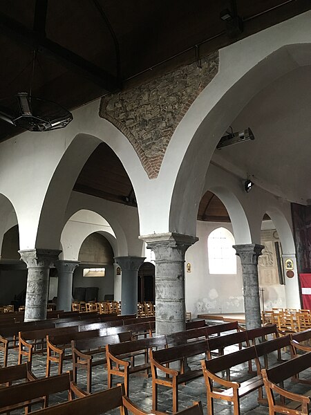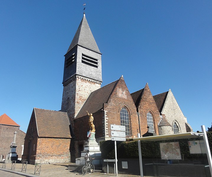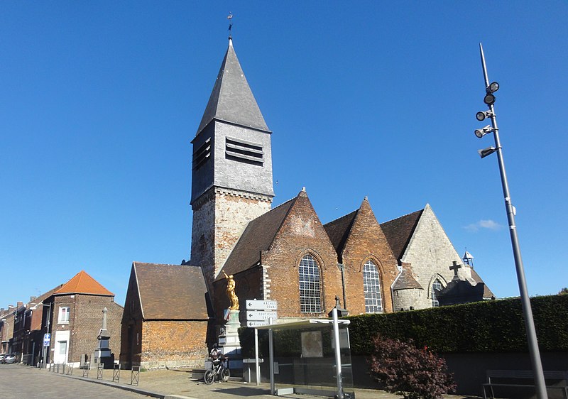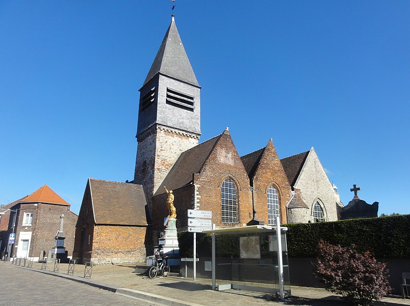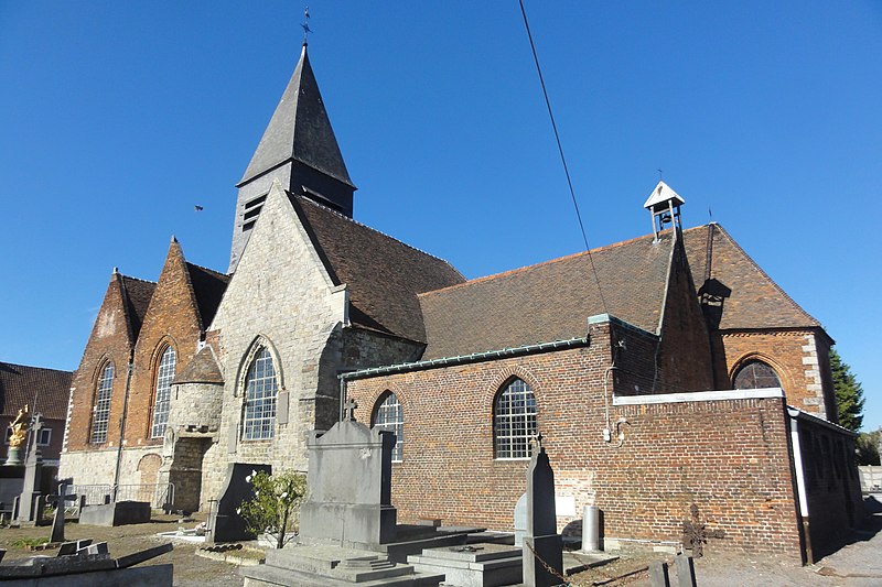 L'église Saint-Michel est l'église paroissiale de Flines-lez-Raches, dans le département du Nord, située dans la vallée de la Scarpe, à une dizaine de kilomètres de Douai. Les plans et coupes dressés avant les travaux d'agrandissement en 1850, ainsi que les sondages archéologiques menés en 1970 et 1975, ont permis de restituer l'édifice primitif daté des Xe–XIe siècles. Cet édifice initial avait un plan de type basilical composé d'une nef et d'étroits bas-côtés, répartis en cinq travées, avec une largeur totale légèrement supérieure à dix mètres et des bas-côtés de 2,30 à 2,40 mètres. Les matériaux employés dès l'origine comprennent briques, tuiles et grès, et l'élévation se présentait sur deux niveaux : grandes arcades et fenêtres hautes. Un clocher-porche fut apposé sur la façade occidentale peu après la construction primitive ; il sera ensuite englobé lors des agrandissements successifs. Les travaux liés à la construction et à l'essor de l'abbaye voisine ont donné lieu à plusieurs campagnes d'agrandissement. À la fin du XIIIe ou au XIVe siècle, un croisillon et un porche sont ajoutés au sud ; les fondations du porche ont été identifiées en 1975. Le croisillon, en grès, présente une ouverture brisée aiguë, quatre contreforts et une échauguette munie de petites archères légèrement ébrasées, dont la fonction reste discutée (clocheton décoratif, accès aux combles ou lieu d'archives). Aux XVe–XVIe siècles sont construits un large chœur et les chapelles au nord, entraînant des modifications du système de voûtement ; des datations archéomagnétiques sur briques situent ces travaux entre 1460 et 1530. Un incendie est signalé au début du XVIe siècle, et en 1561 le clocher est partiellement enserré sur ses côtés méridional et oriental ; ce clocher fut détruit puis remplacé par la tour actuelle au XVIIe siècle. Au XVIe siècle, le bas-côté droit est agrandi, absorbant le porche antérieur implanté sur le mur sud du clocher, et un nouveau porche est établi sur le mur ouest du clocher. La dernière campagne majeure date du milieu du XIXe siècle : sous la direction de l'architecte Delval, les bas-côtés du chœur sont élargis, le bas-côté nord-ouest est agrandi pour être symétrique au pendant sud-ouest, la sacristie est déplacée vers l'est et les fenêtres orientales sont murées, transformant l'édifice en église-halle où nef et bas-côtés présentent la même hauteur. Des réparations de toiture sont documentées tout au long du XIXe siècle, notamment par l'architecte douaisien Boulé (1831) et par l'architecte départemental Émile Duforest (1899), ce dernier réalisant également le bureau de poste en 1907. L'intérieur a été homogénéisé par un enduit blanc qui masque les lambris de couvrement en bois. L'édifice a subi des dommages aux couvertures au XXe siècle lors des Première et Seconde Guerres mondiales. Des fouilles de 1975 ont mis au jour un ancien cimetière et corroboré l'hypothèse d'un premier édifice en bois antérieur à l'implantation en pierre. L'étude des états successifs permet de retenir six grandes phases de construction et d'aménagement entre le Xe siècle et les travaux de 1851. L'église, placée sous le patronage de saint Michel, a été classée au titre des monuments historiques en 1921. Sur le plan architectural, on y observe aujourd'hui le chœur, le porche, le clocher et ses matériaux variés, la nef avec ses charpentes apparentes, les bas-côtés et chapelles nord, l'échauguette et des vitraux composant le décor intérieur, ainsi que un baptistère placé dans la première chapelle nord.
